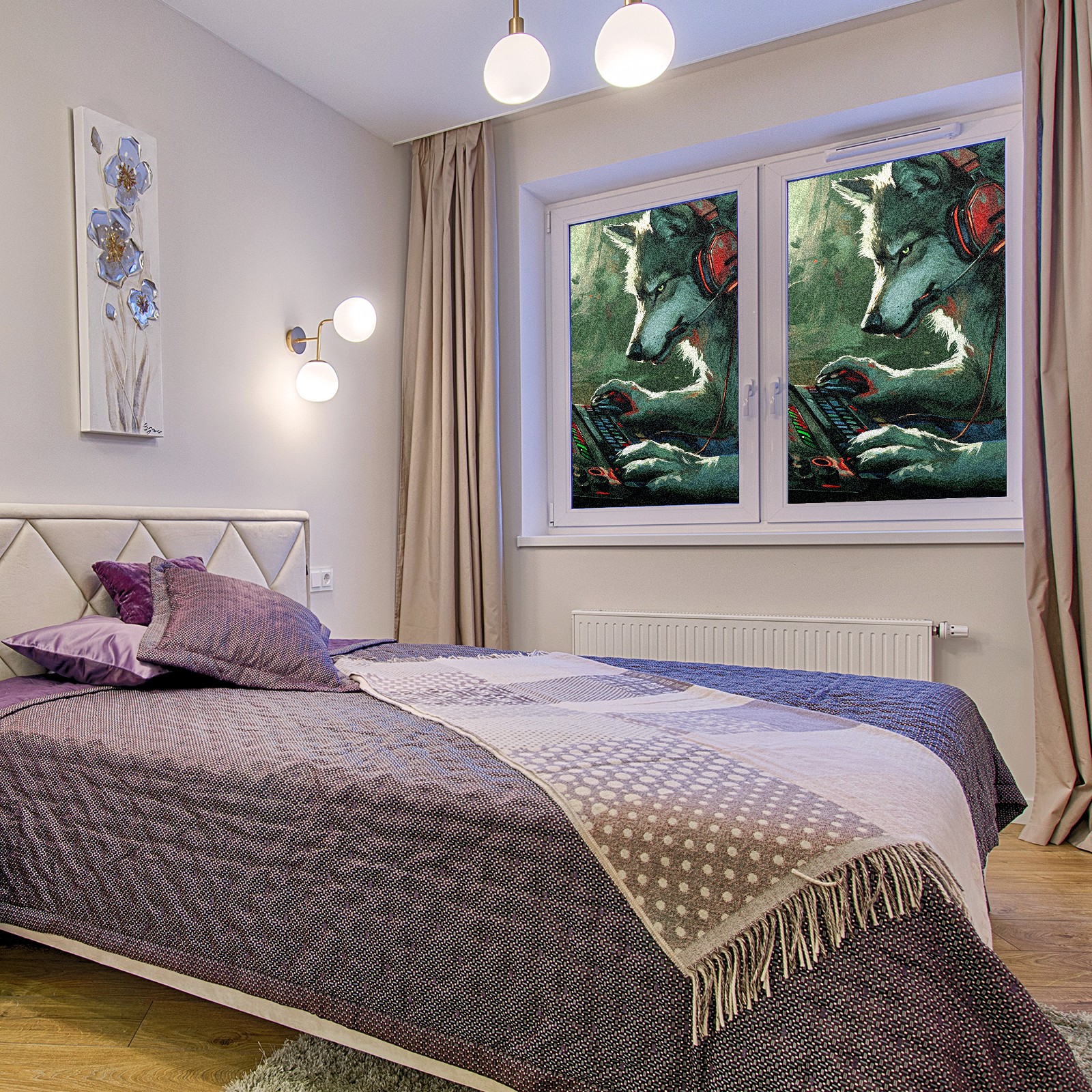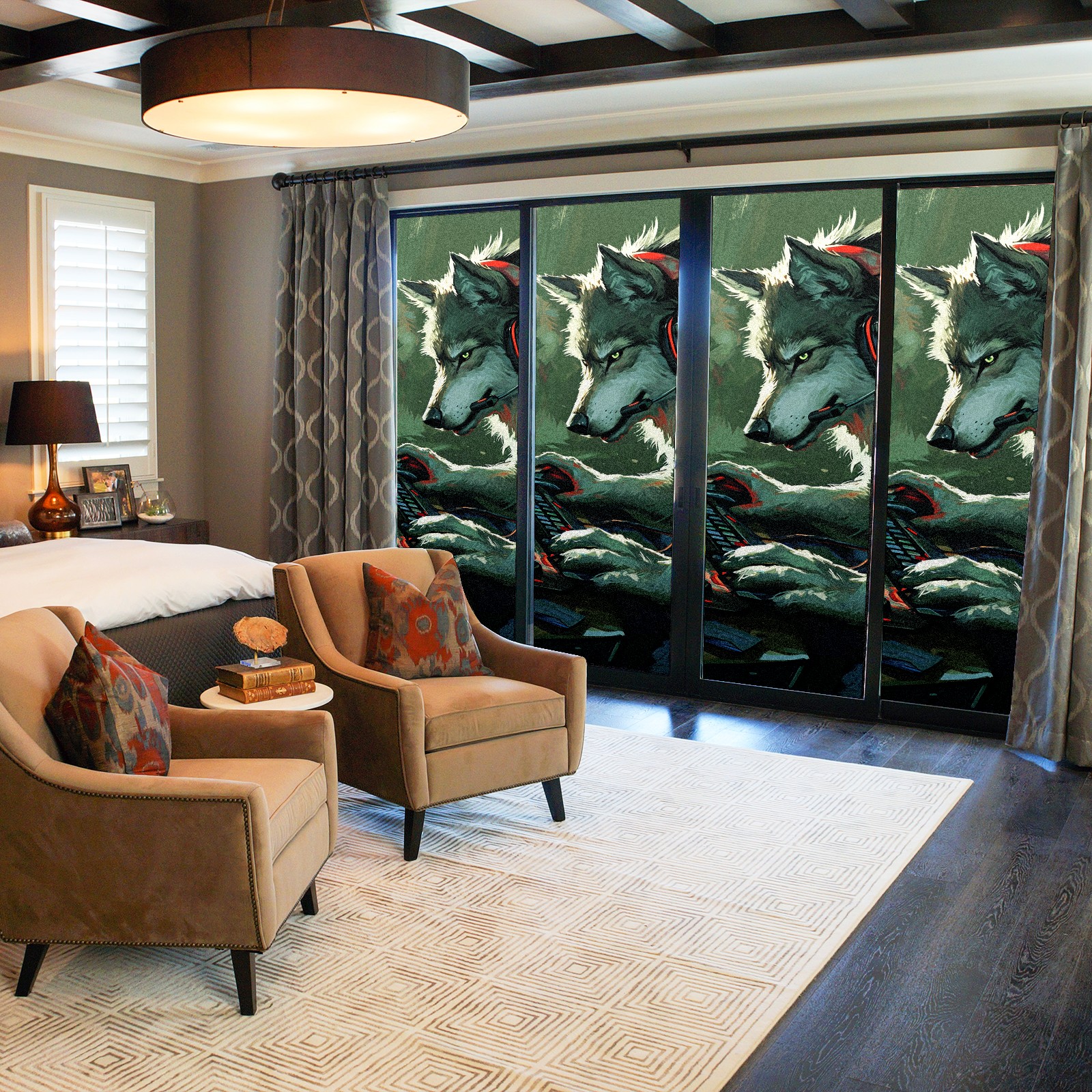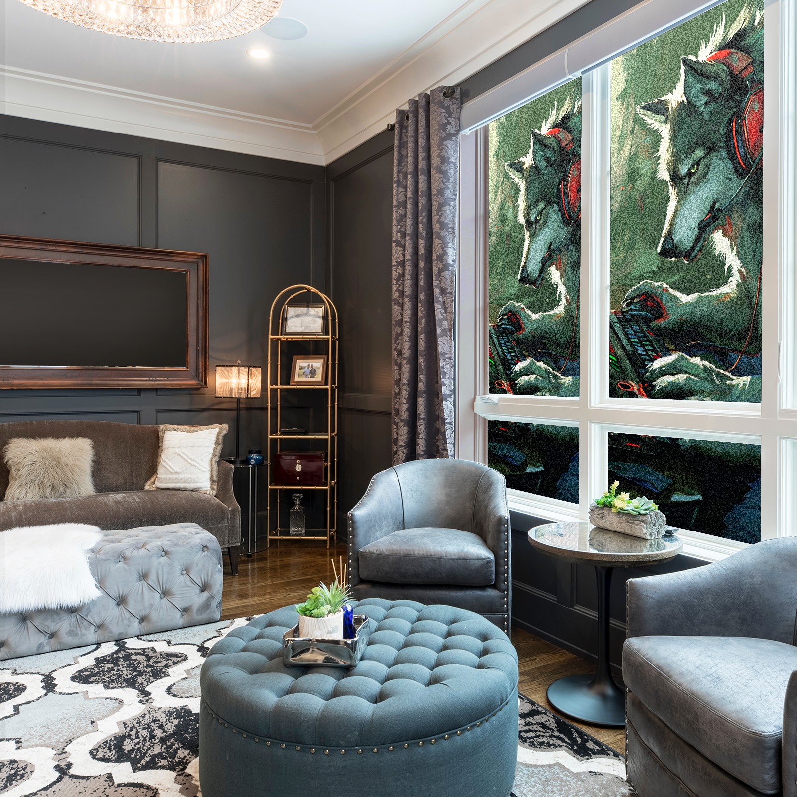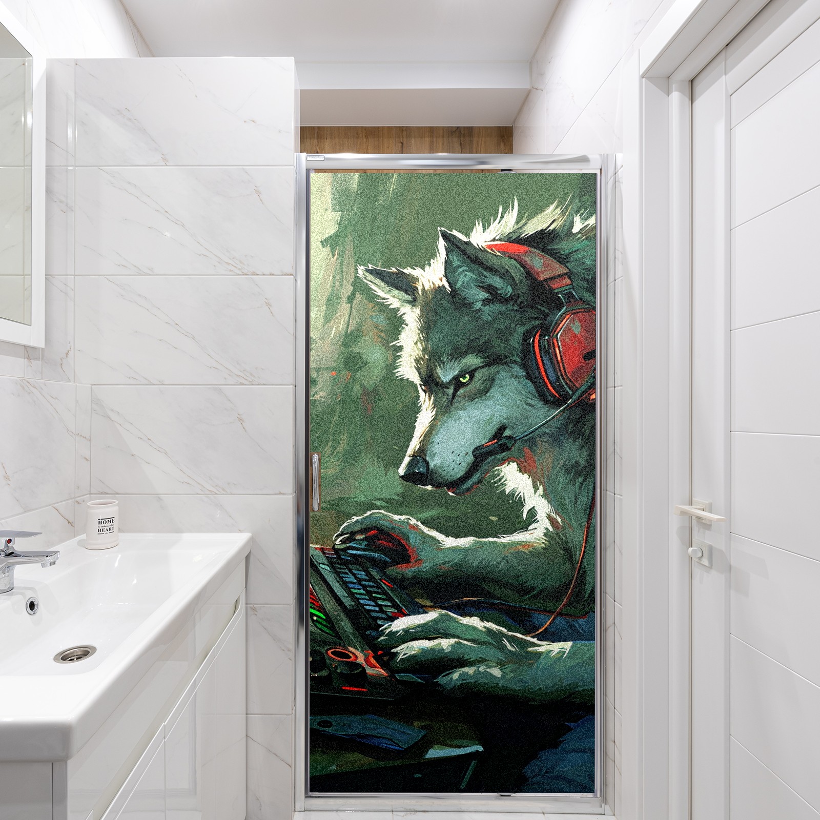 Static Cling Decorative Window Film Frosted Privacy Film Window Clings for Glass Windows No Glue Window Sticker for Bathroom Bedroom Office Wolf