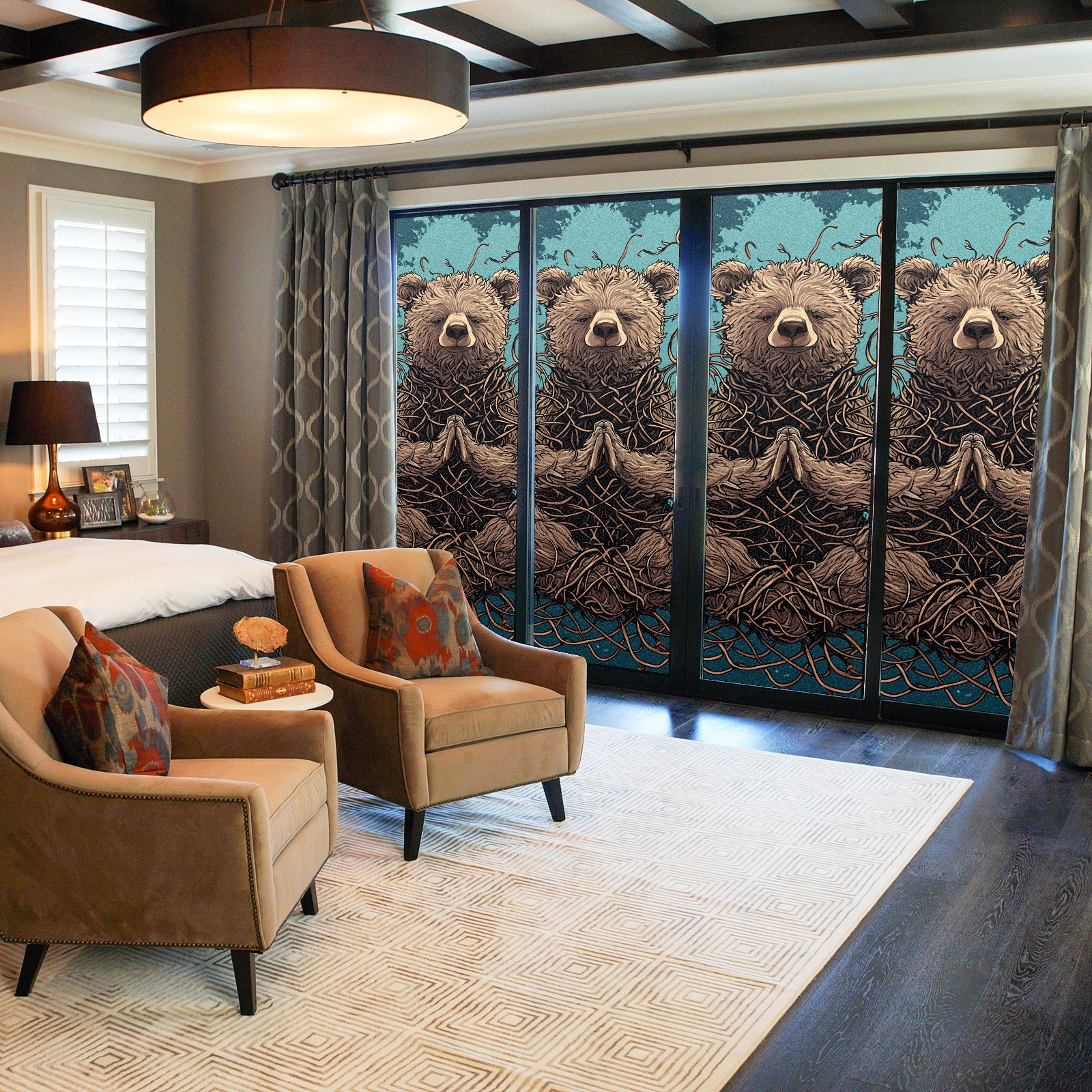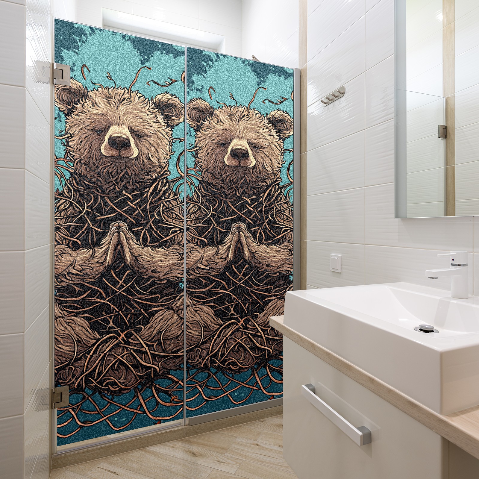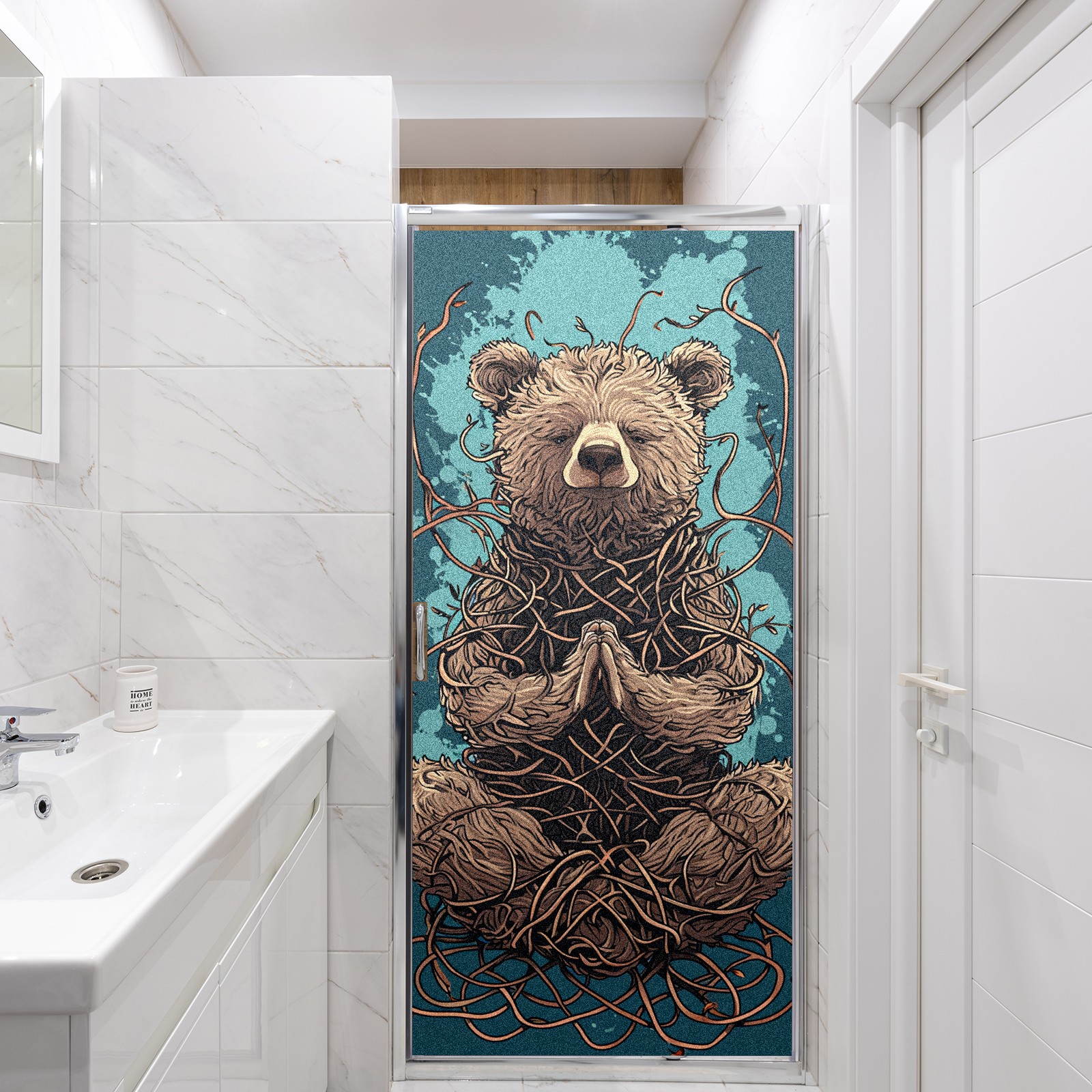 Static Cling Decorative Window Film Frosted Privacy Film Window Clings for Glass Windows No Glue Window Sticker for Bathroom Bedroom Office Bear