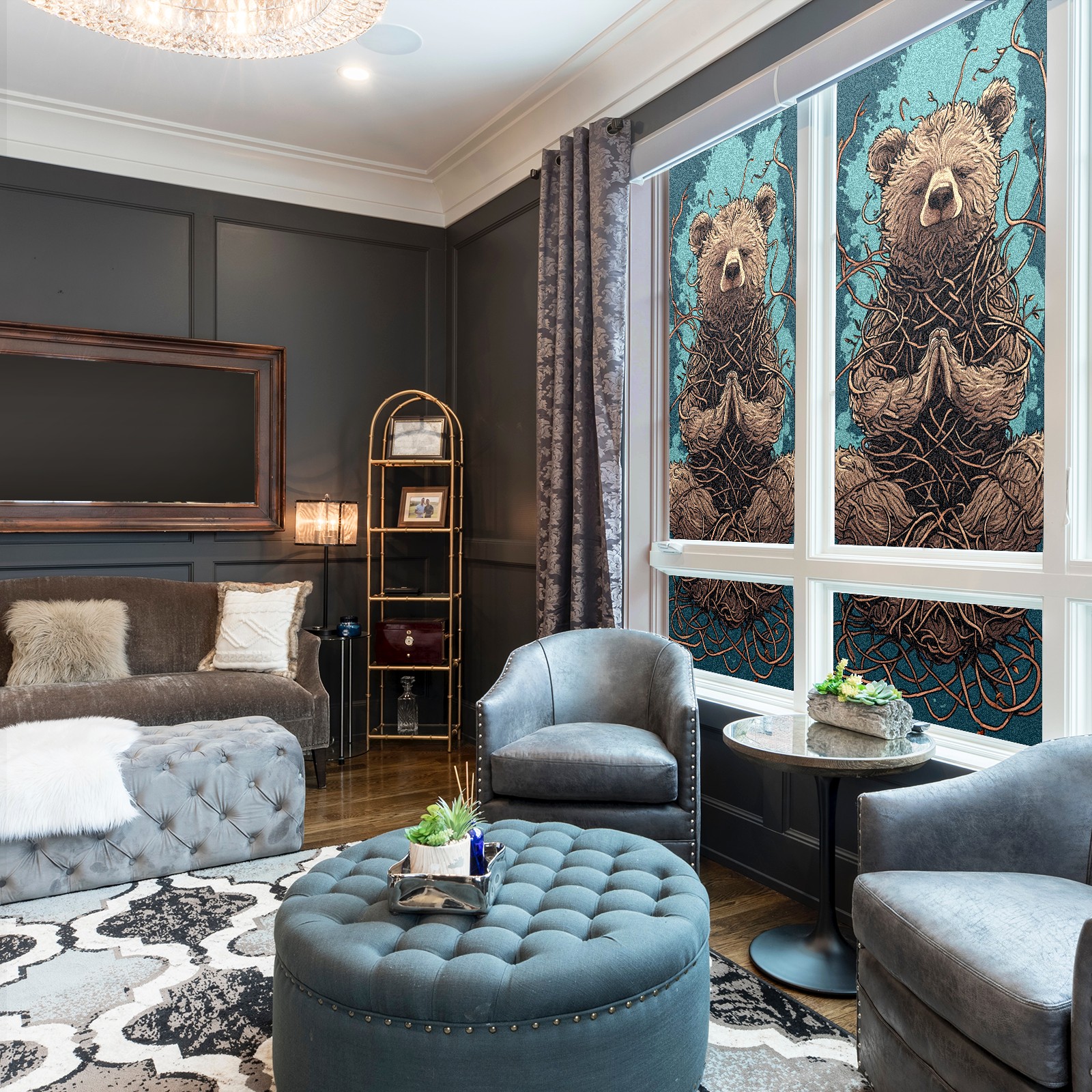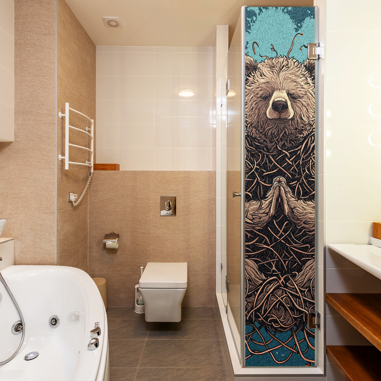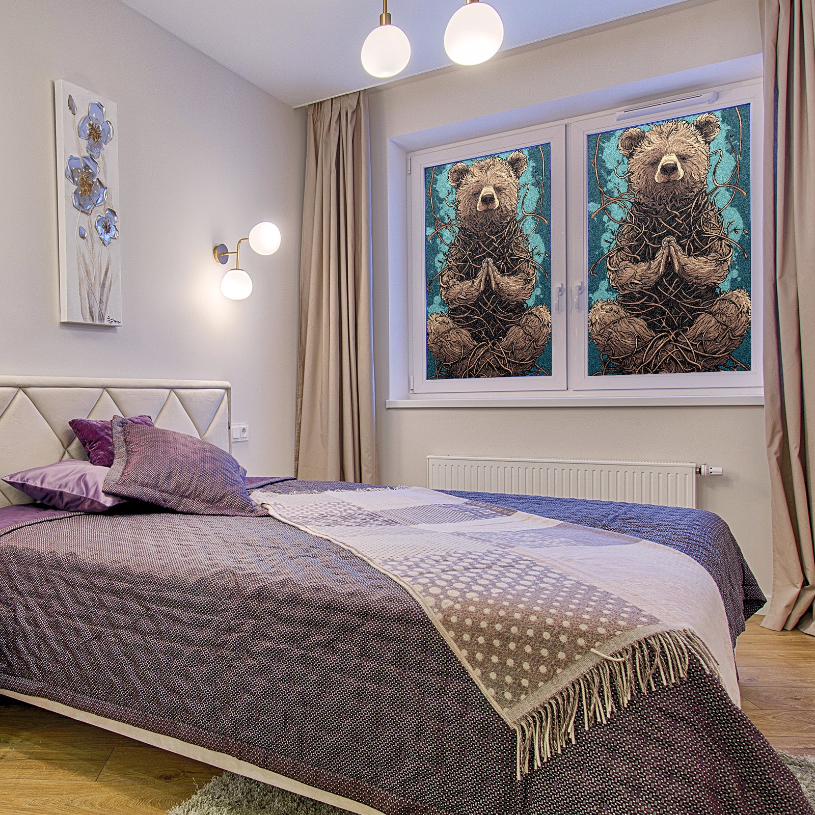 Static Cling Decorative Window Film Frosted Privacy Film Window Clings for Glass Windows No Glue Window Sticker for Bathroom Bedroom Office Bear