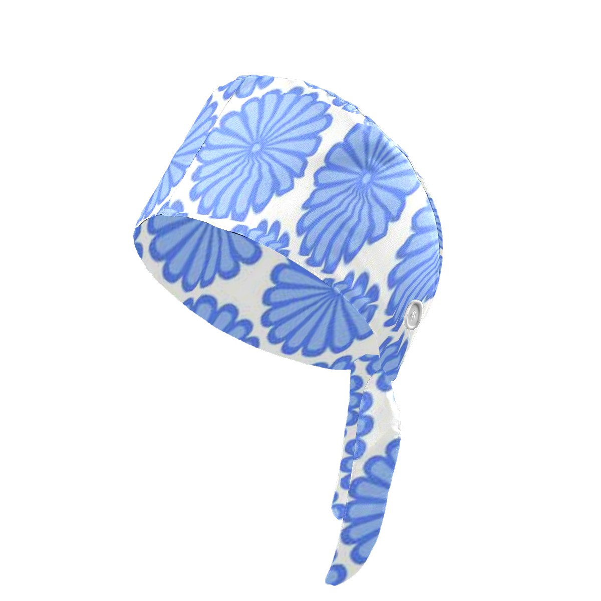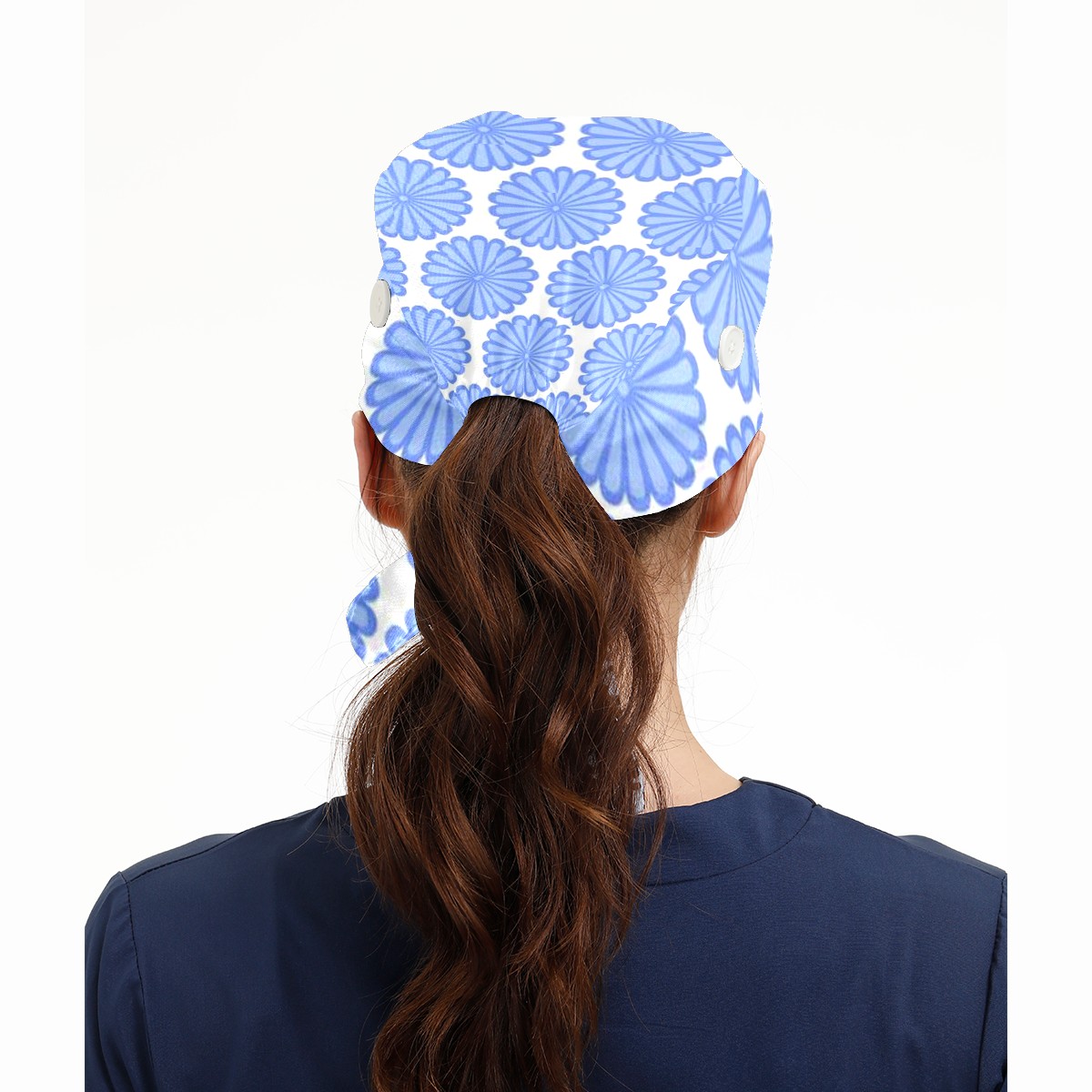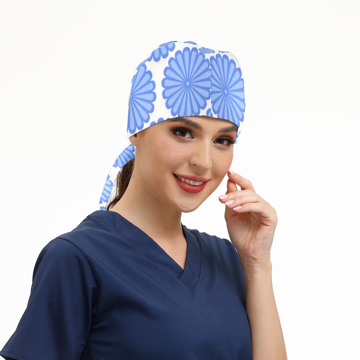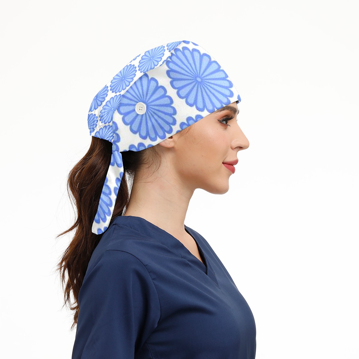 Working Caps with Button & Sweatband Satin Lined Cotton Adjustable Nurse Hats Elastic Band Scrub Cap Surgeon Hat Flower