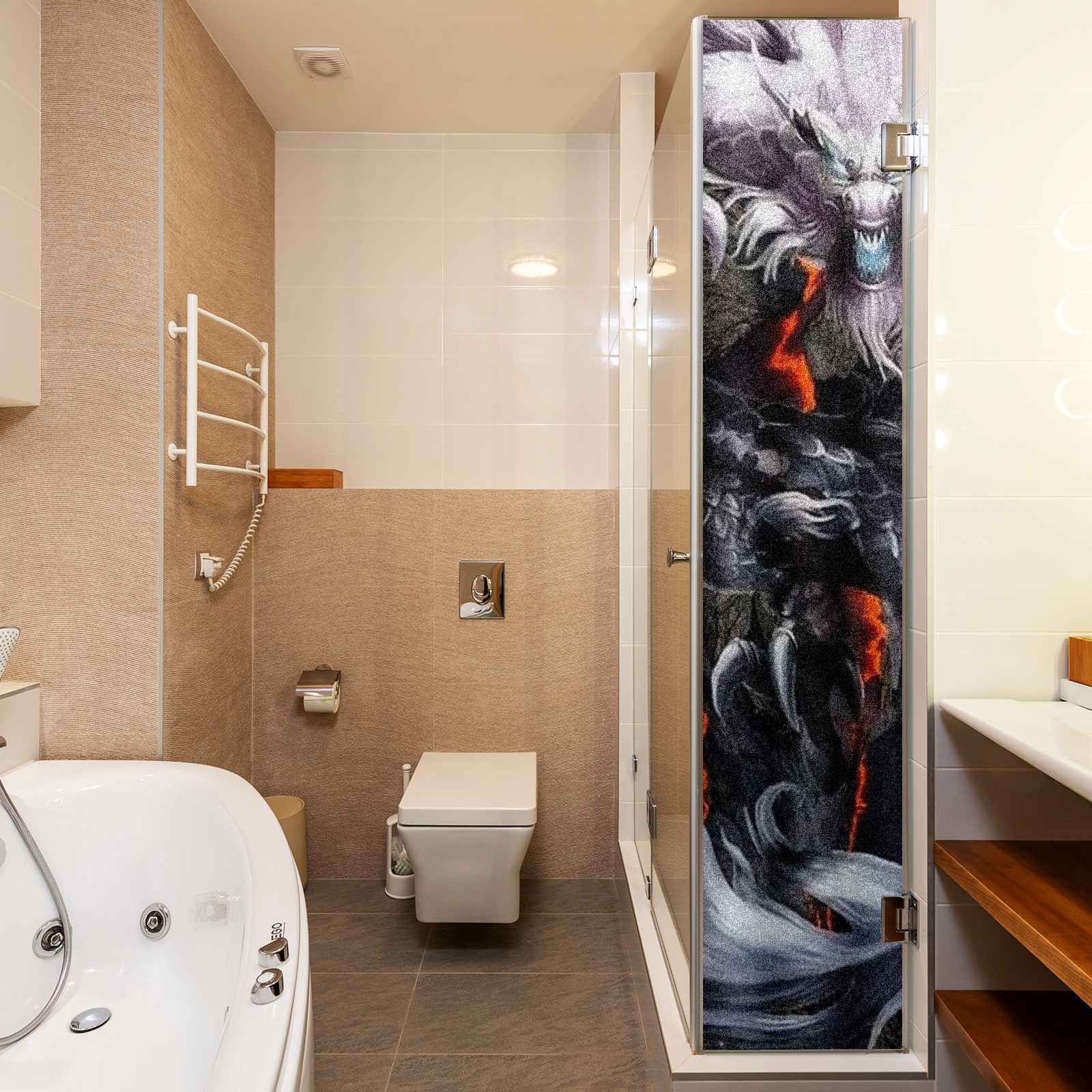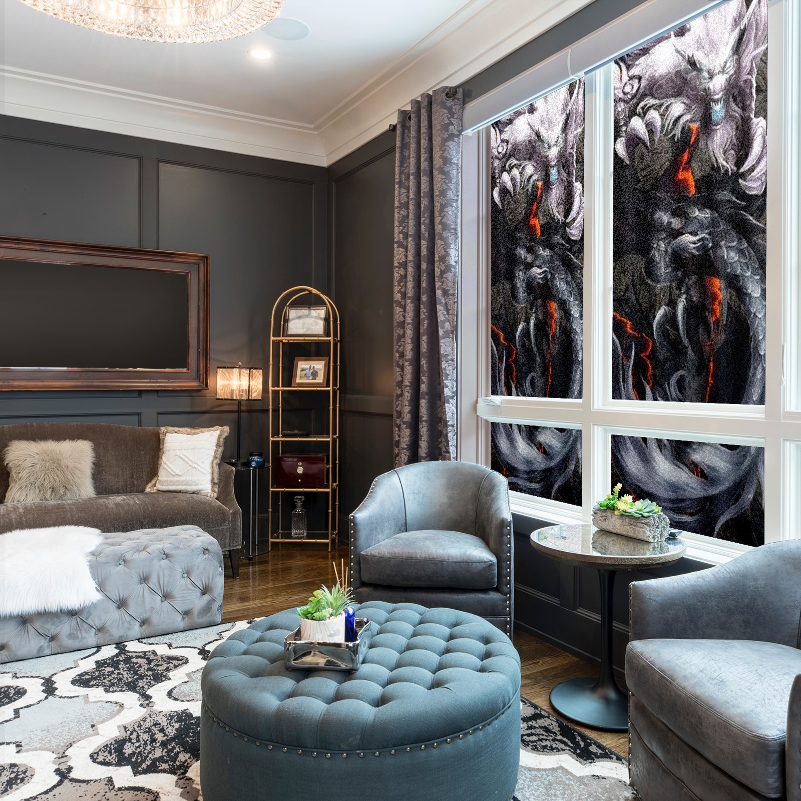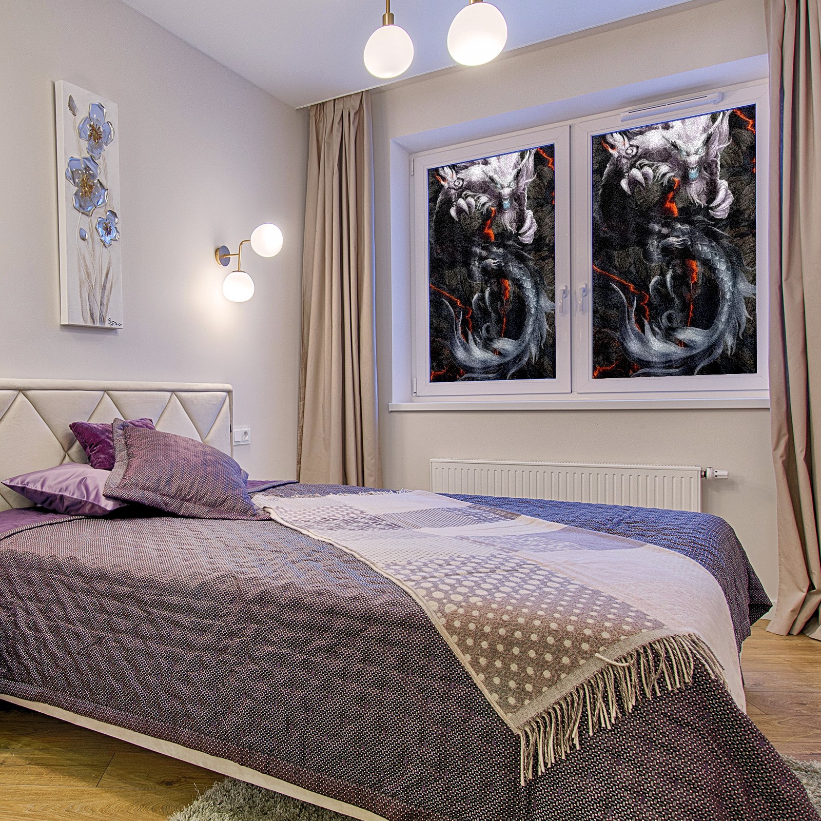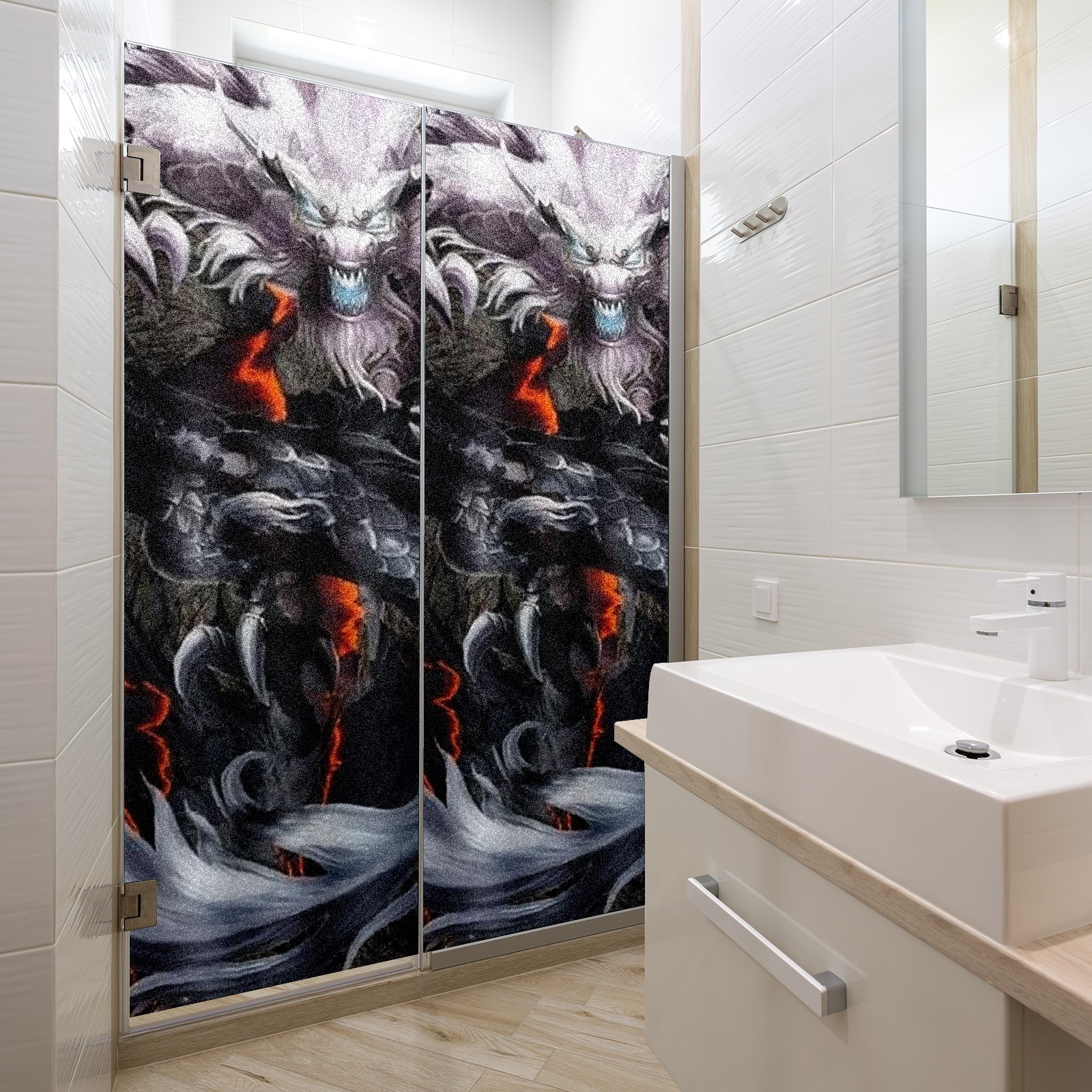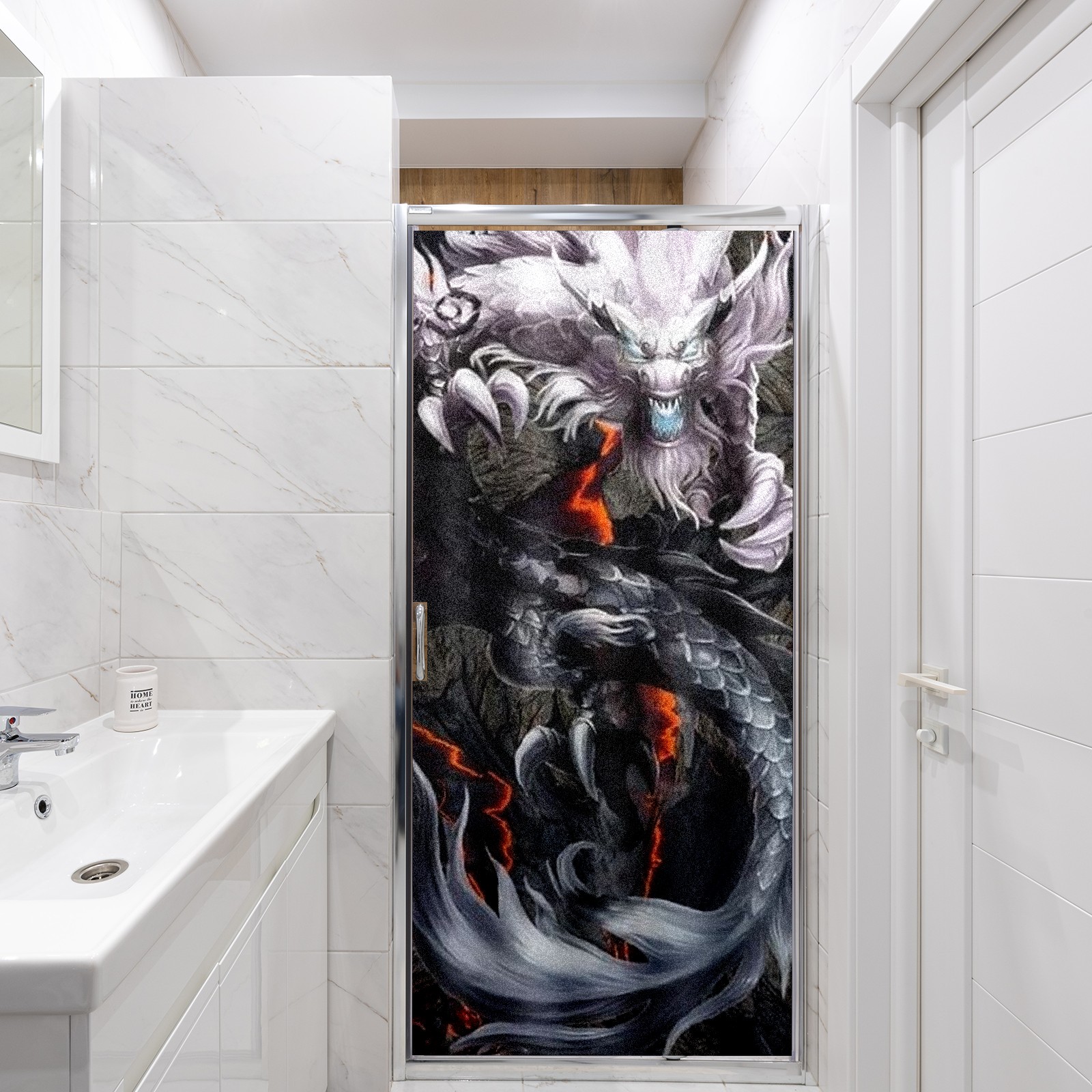 Static Cling Decorative Window Film Frosted Privacy Film Window Clings for Glass Windows No Glue Window Sticker for Bathroom Bedroom Office Chinese Dragon