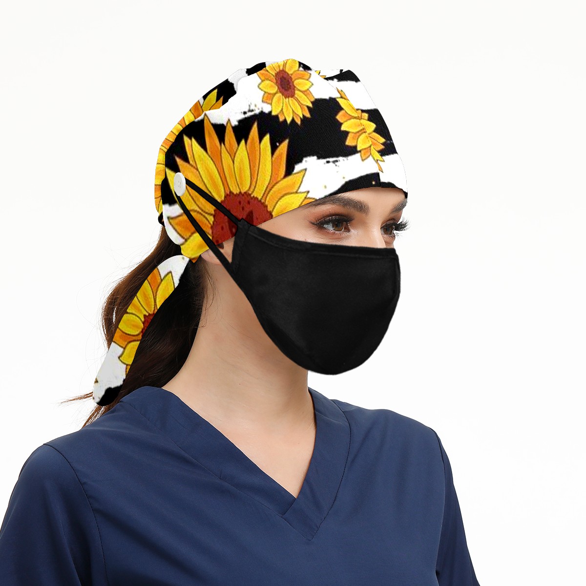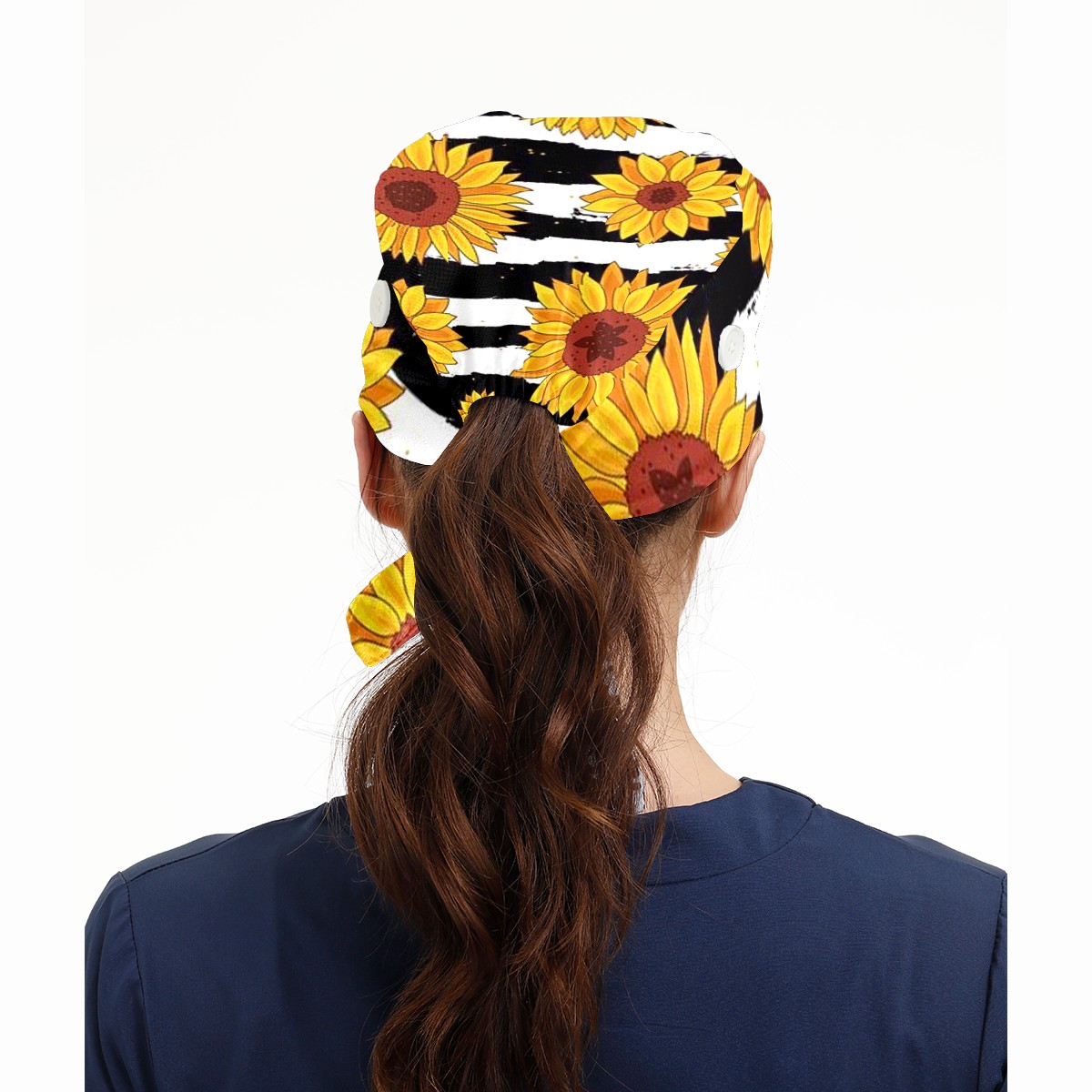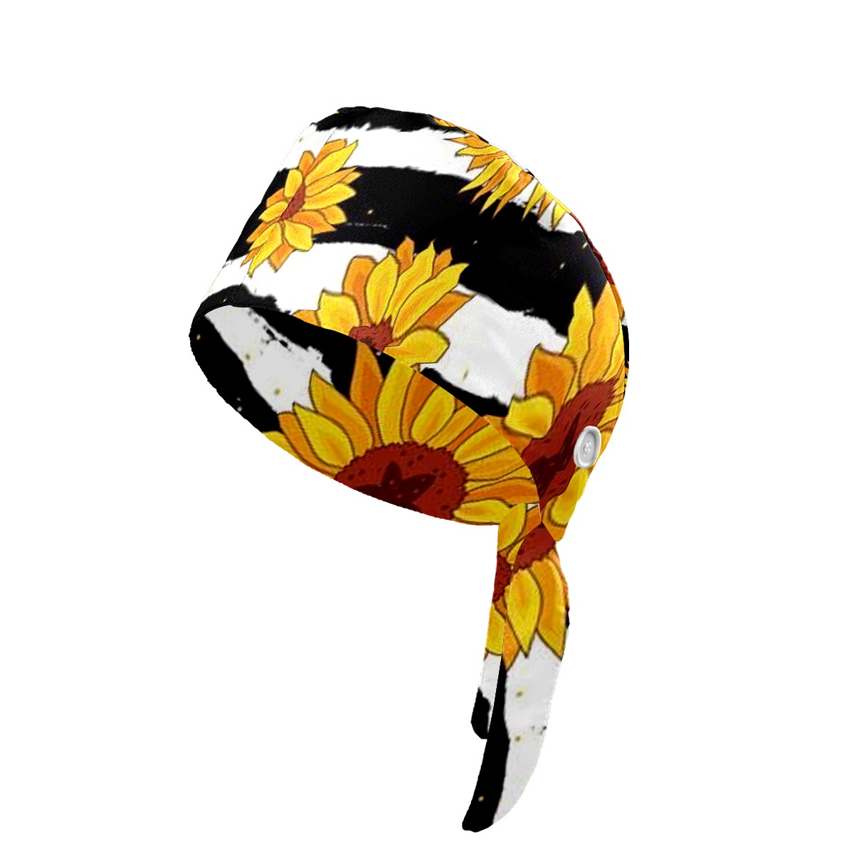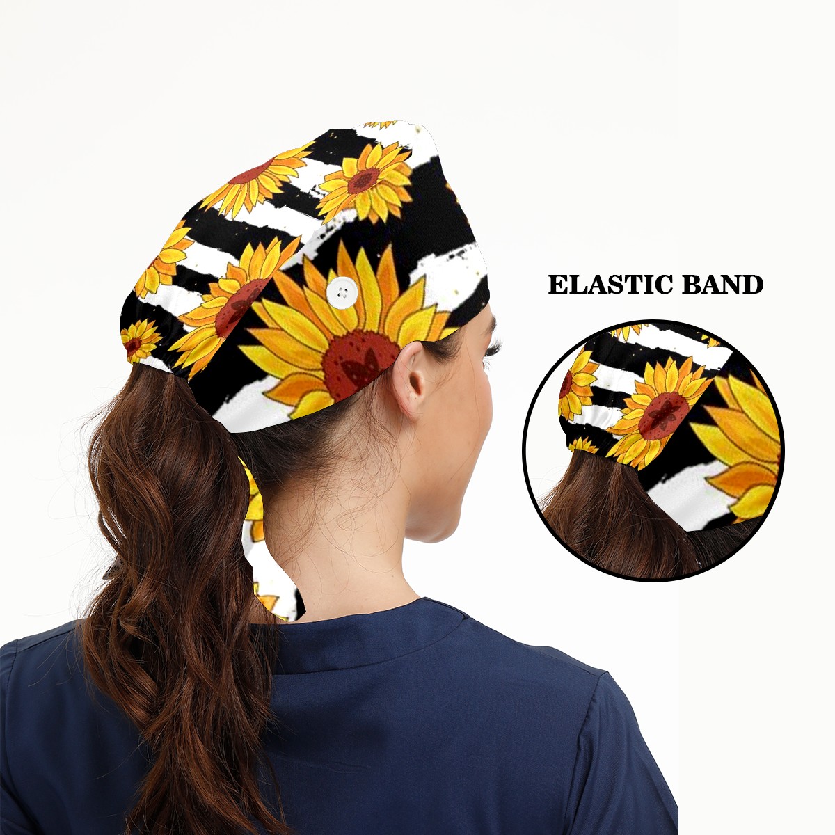 Working Caps with Button & Sweatband Satin Lined Cotton Adjustable Nurse Hats Elastic Band Scrub Cap Surgeon Hat Sunflower