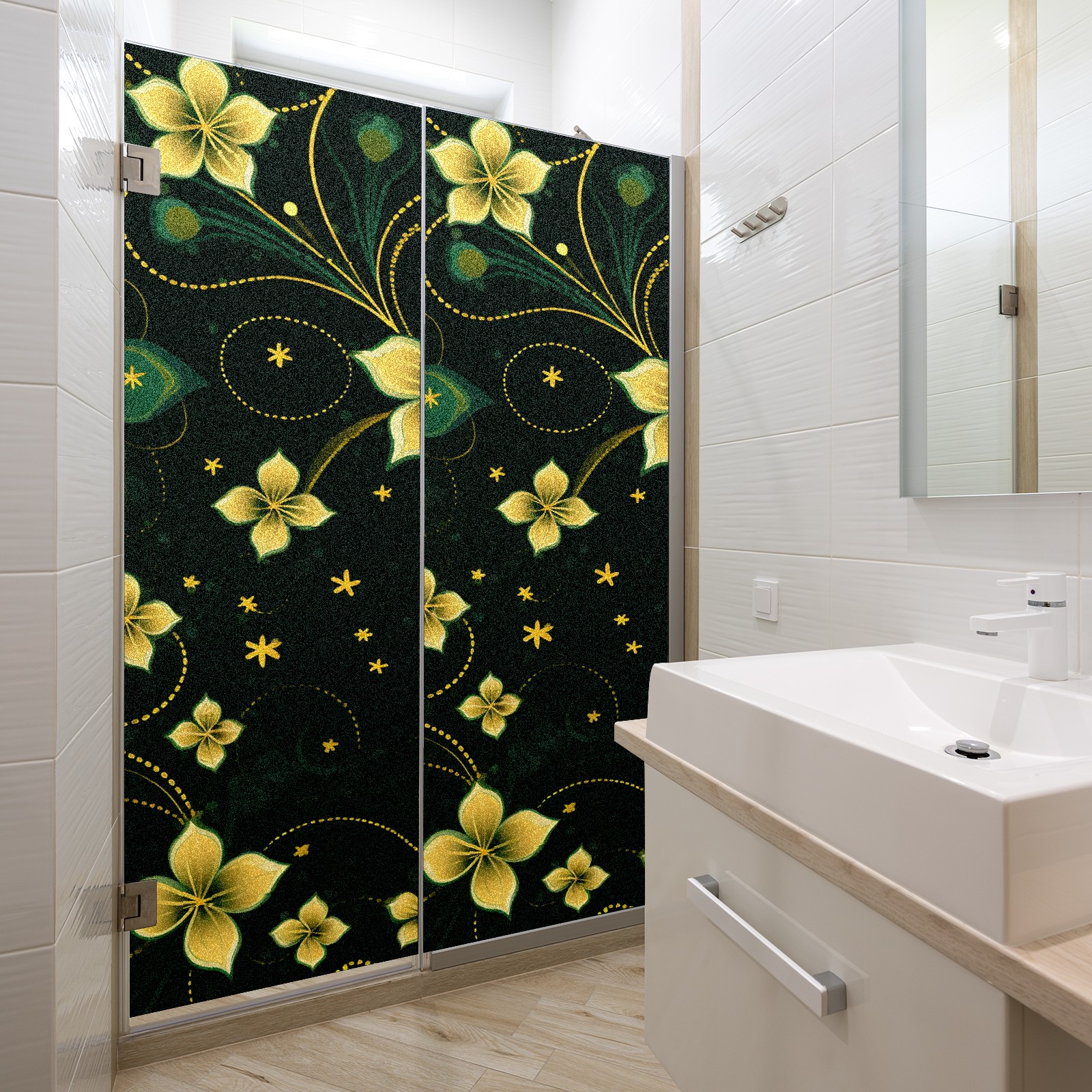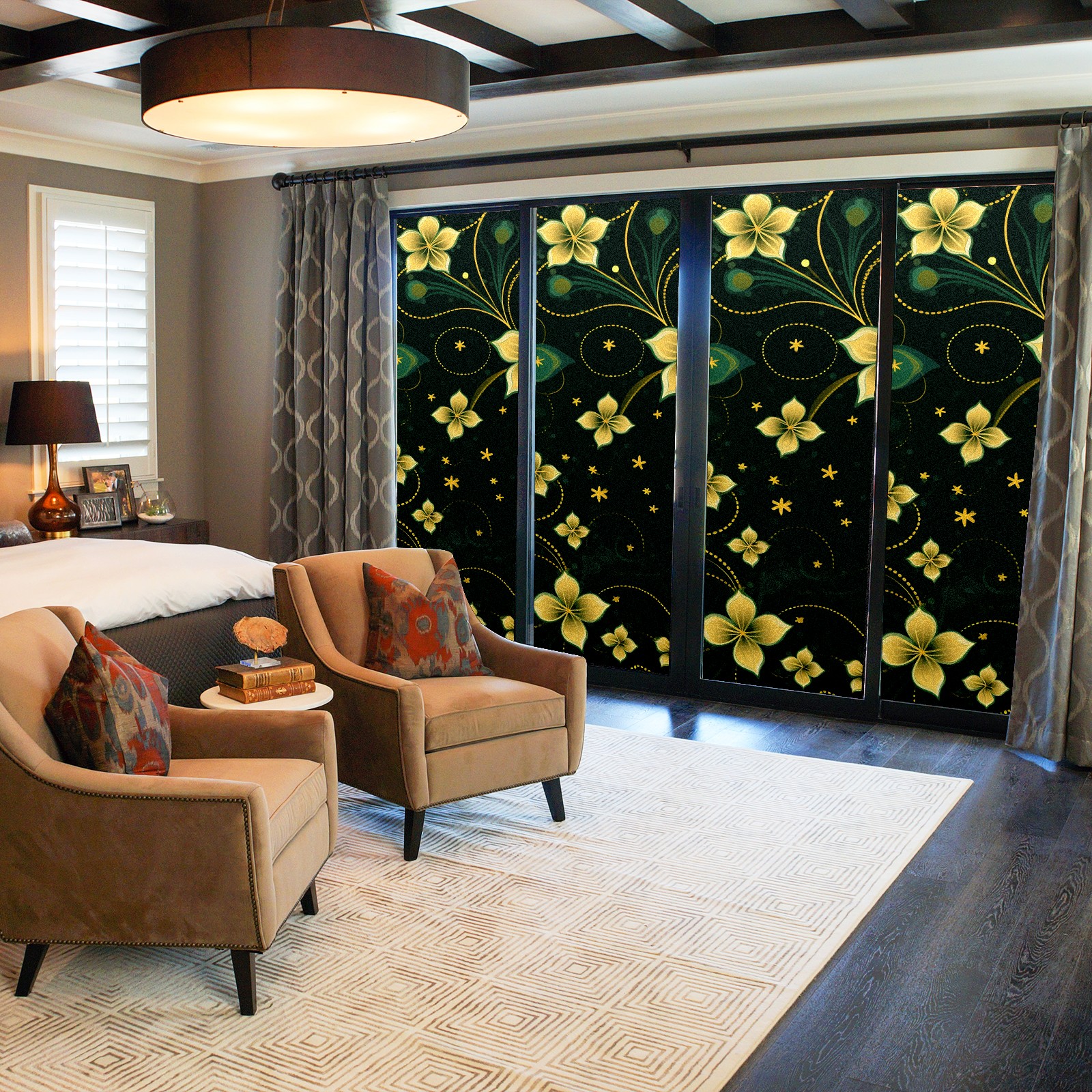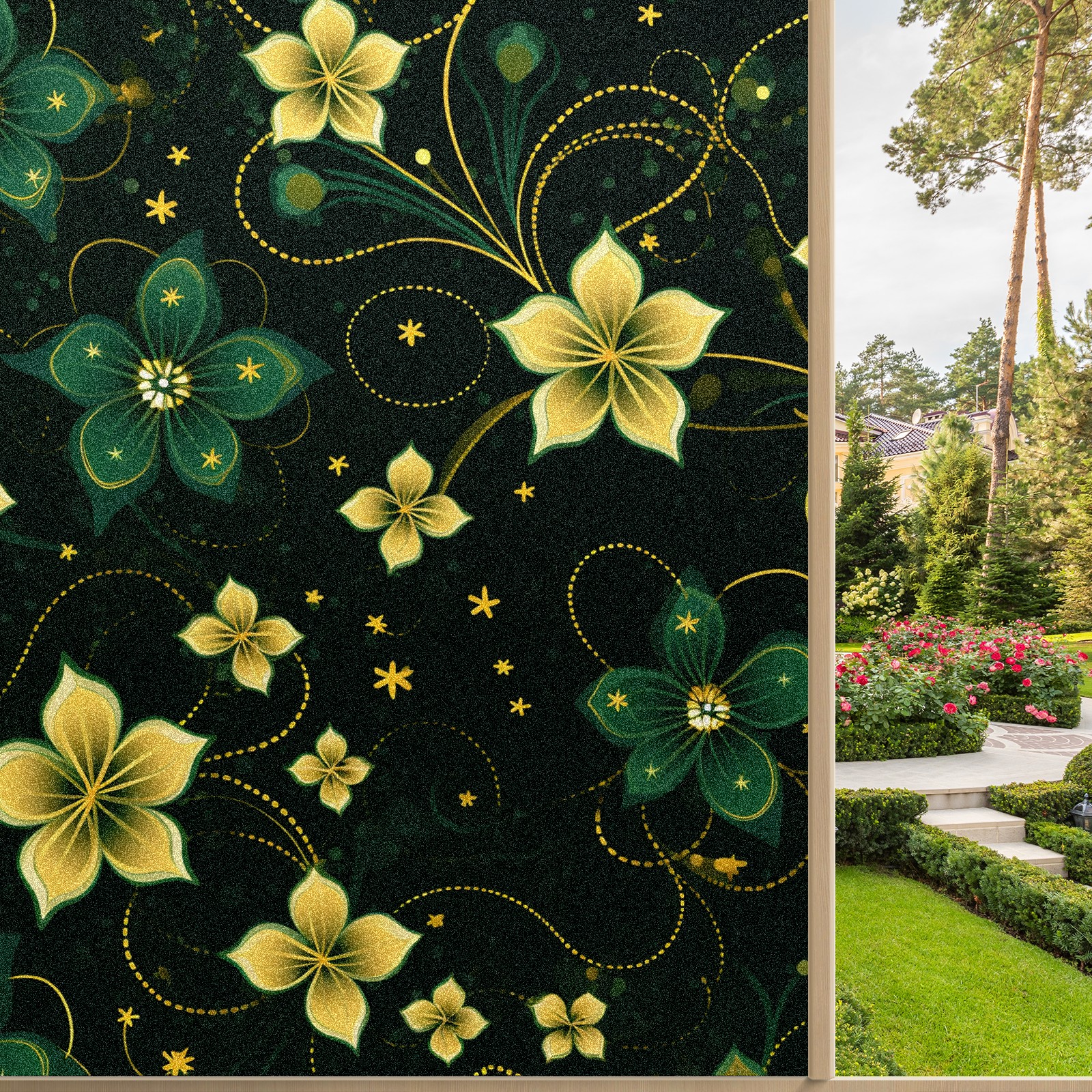 Static Cling Decorative Window Film Frosted Privacy Film Window Clings for Glass Windows No Glue Window Sticker for Bathroom Bedroom Office Gold Flowers (3)
