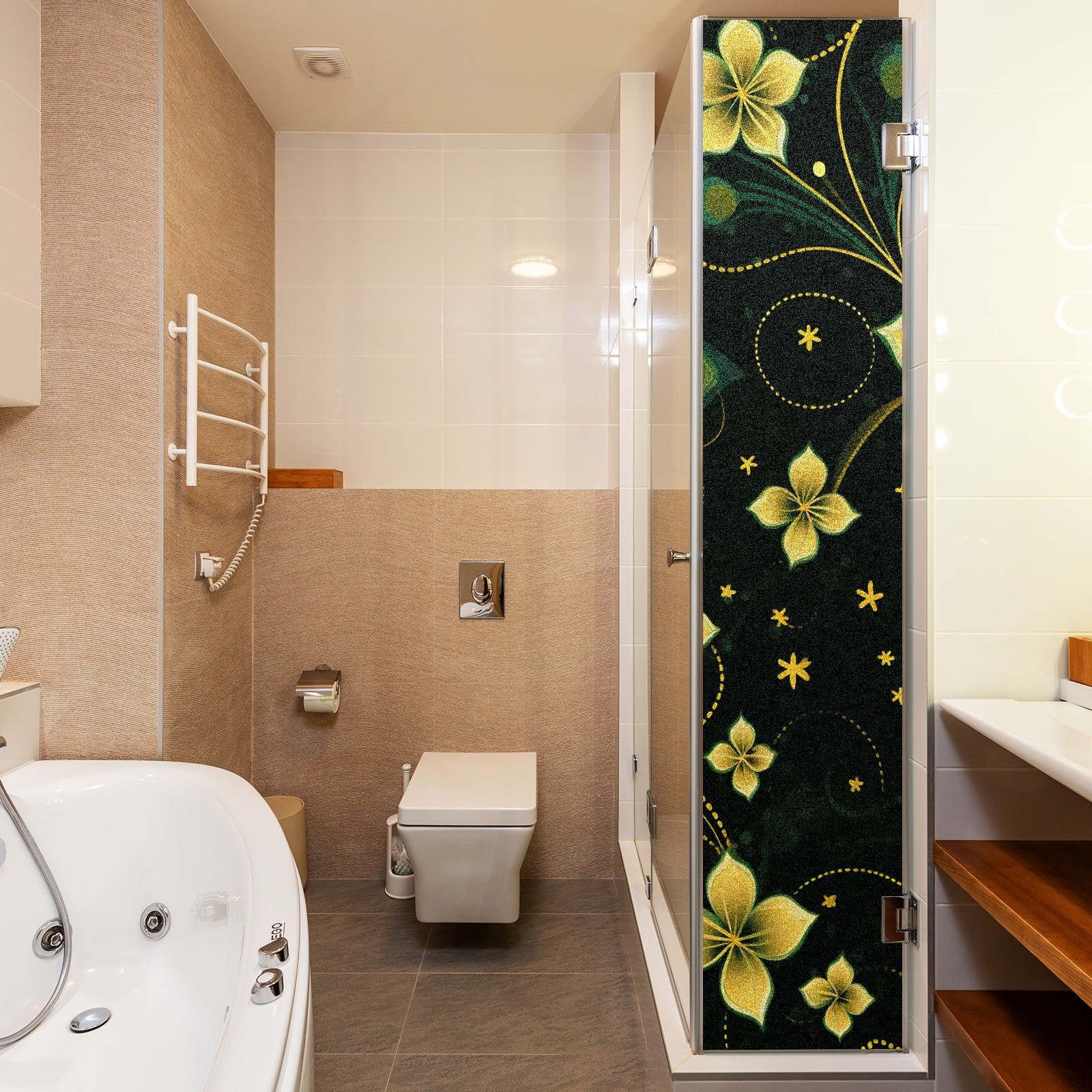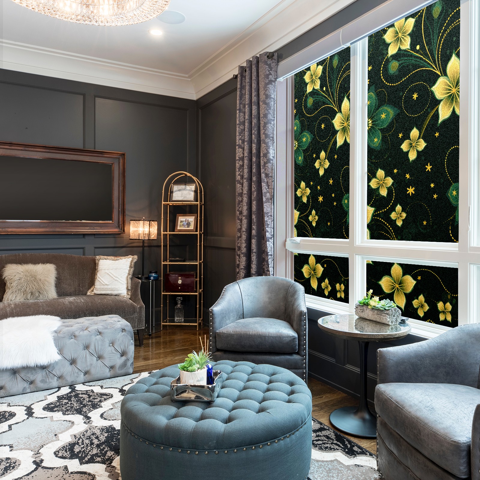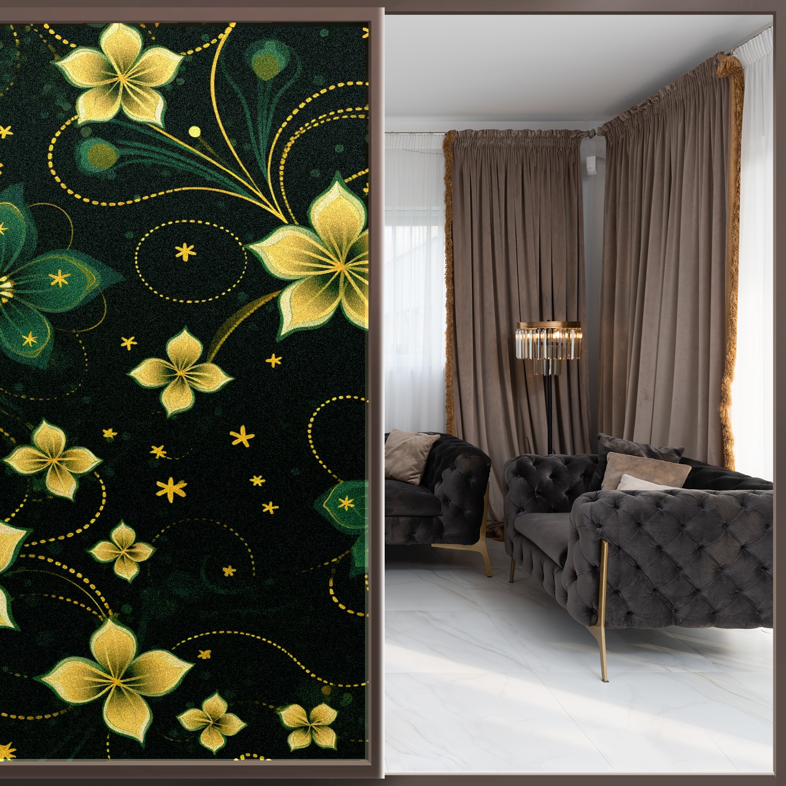 Static Cling Decorative Window Film Frosted Privacy Film Window Clings for Glass Windows No Glue Window Sticker for Bathroom Bedroom Office Gold Flowers (3)