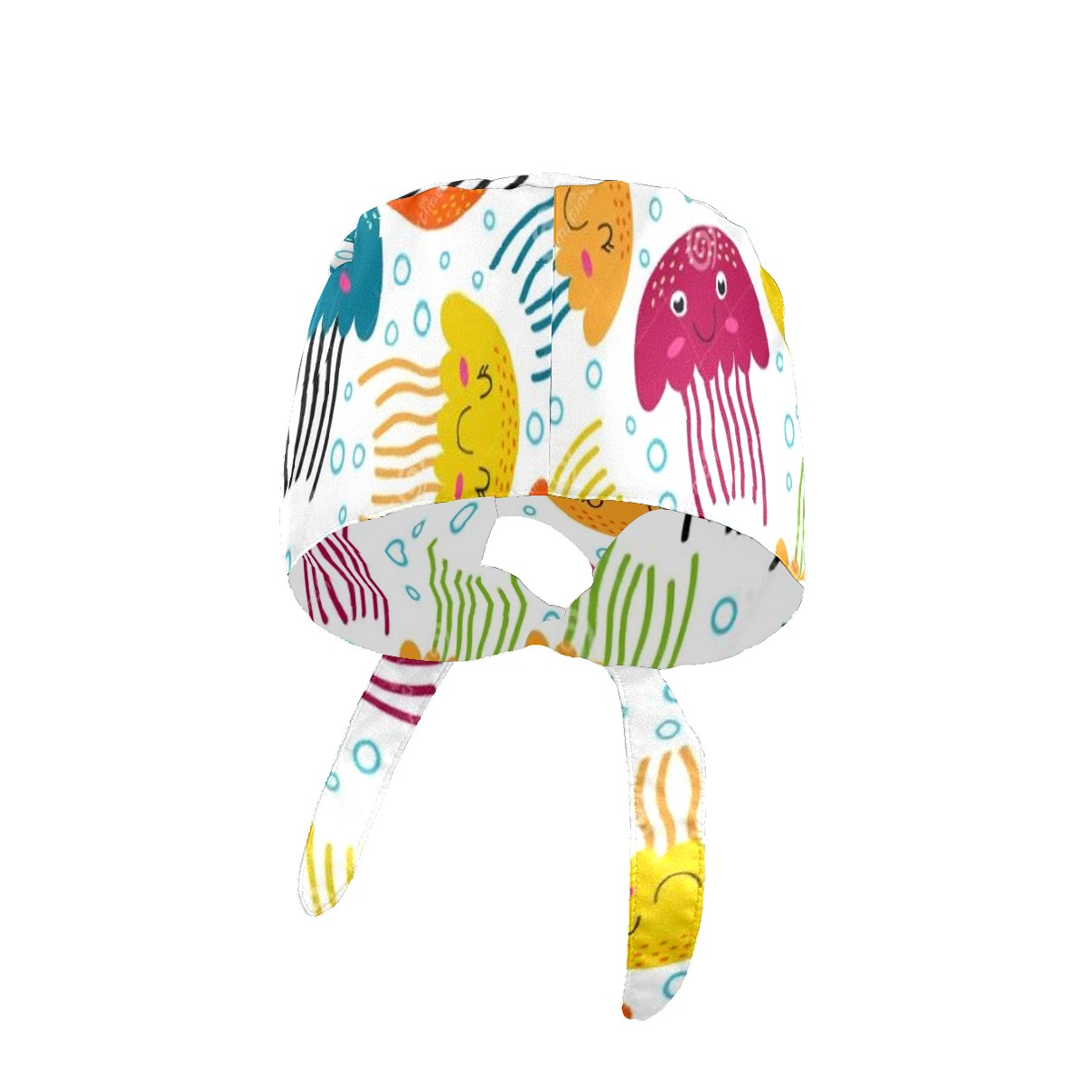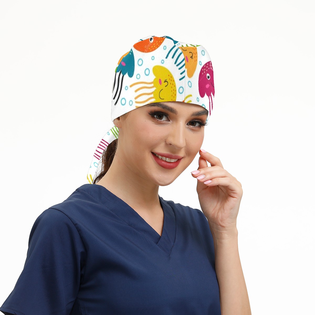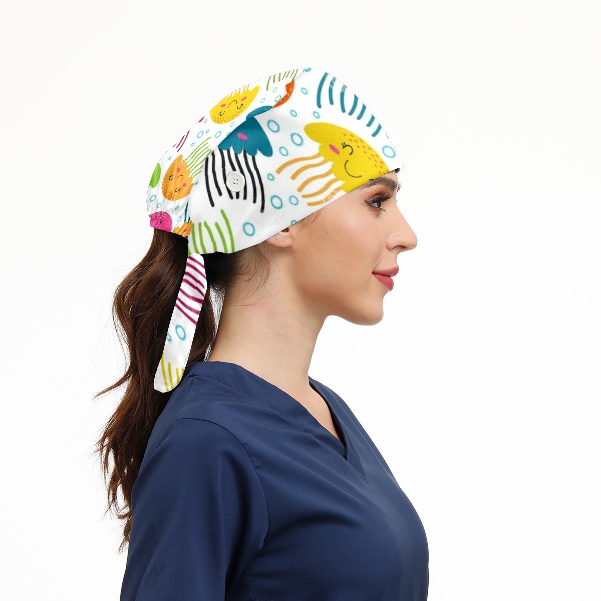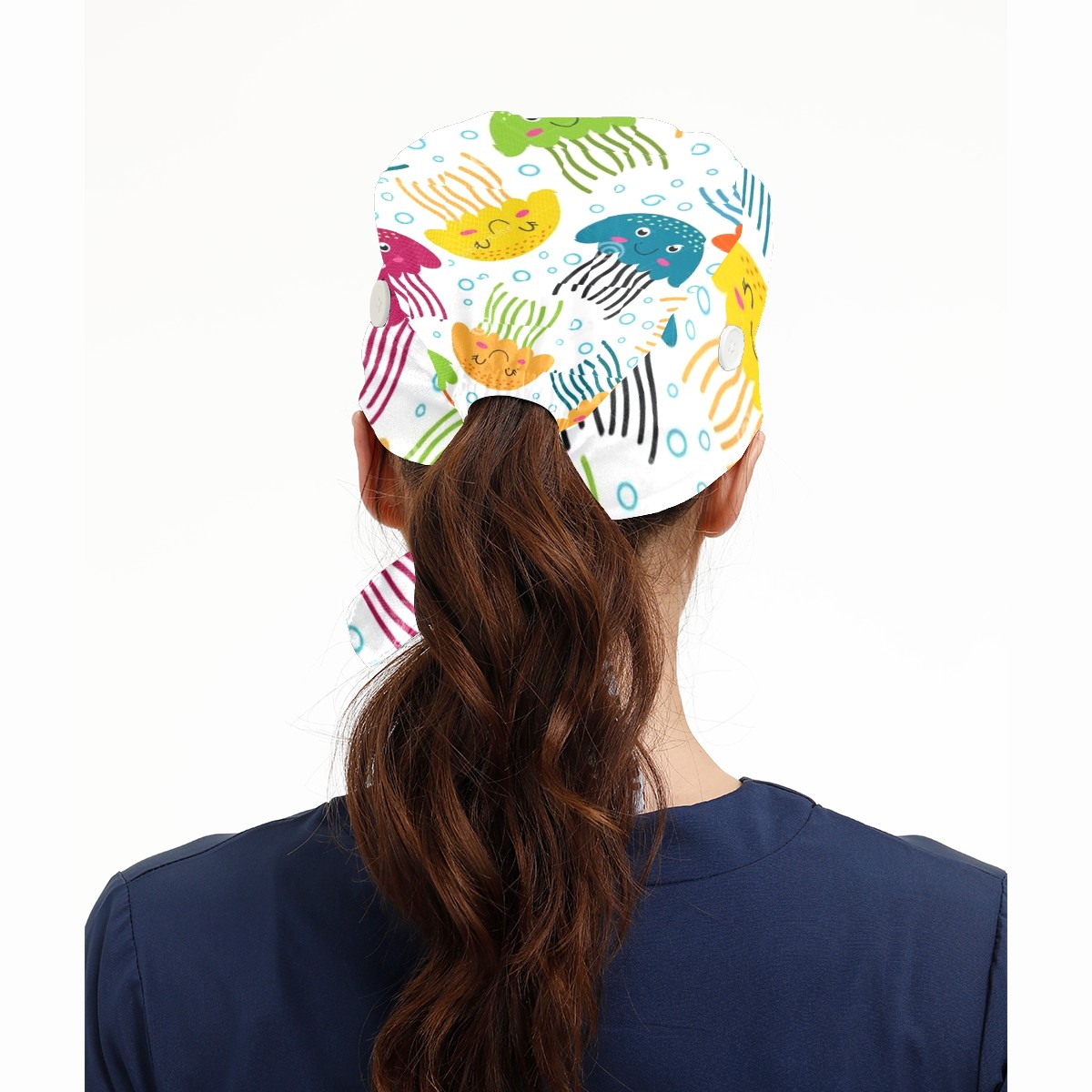 Working Caps with Button & Sweatband Satin Lined Cotton Adjustable Nurse Hats Elastic Band Scrub Cap Surgeon Hat Jellyfish