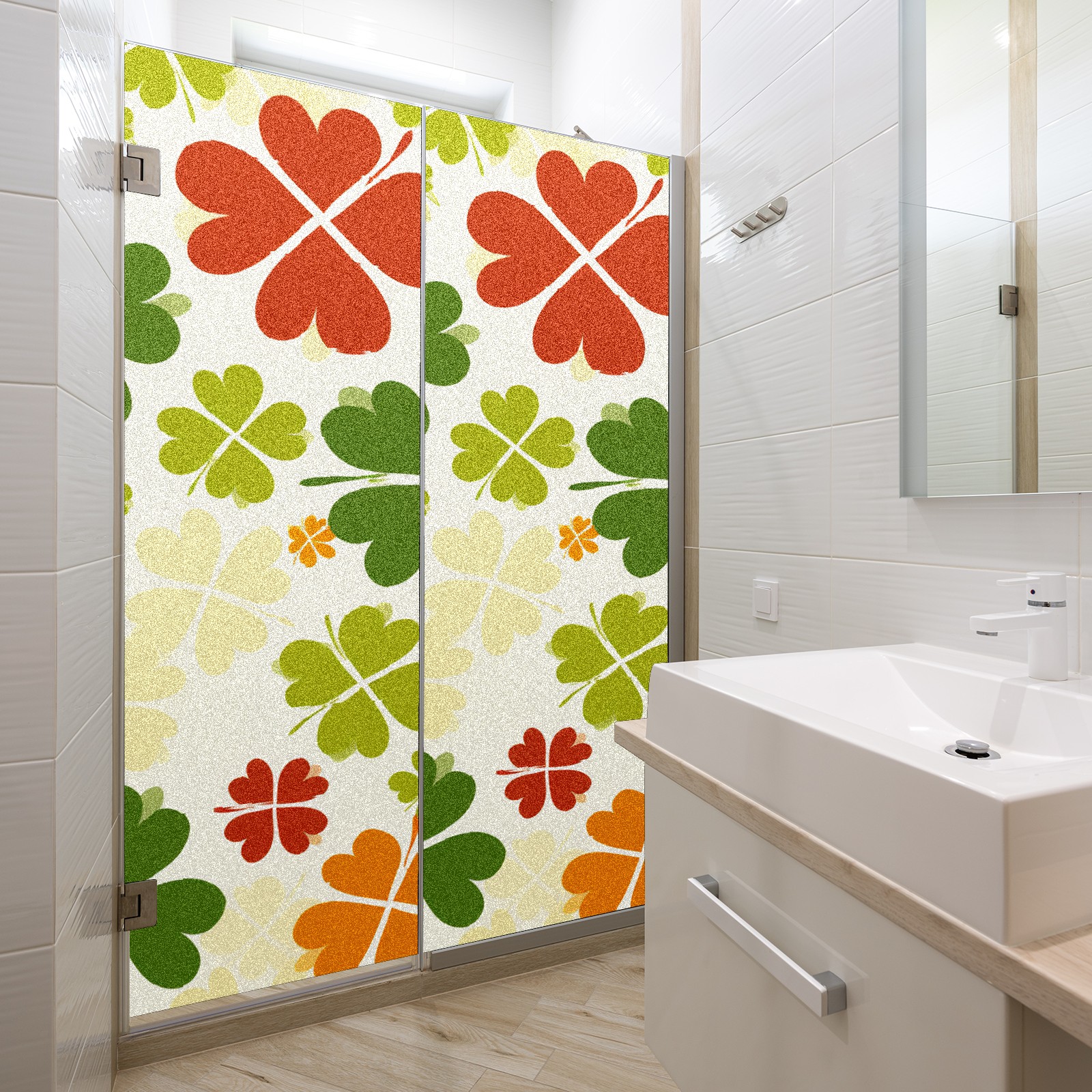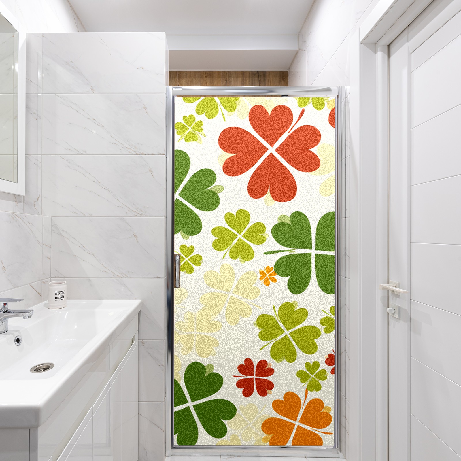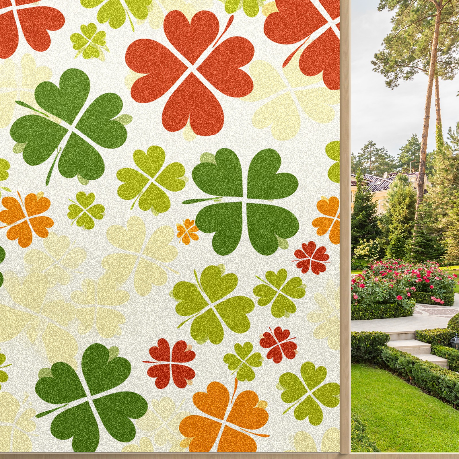 Static Cling Decorative Window Film Frosted Privacy Film Window Clings for Glass Windows No Glue Window Sticker for Bathroom Bedroom Office Four Leaf Clover (5)
