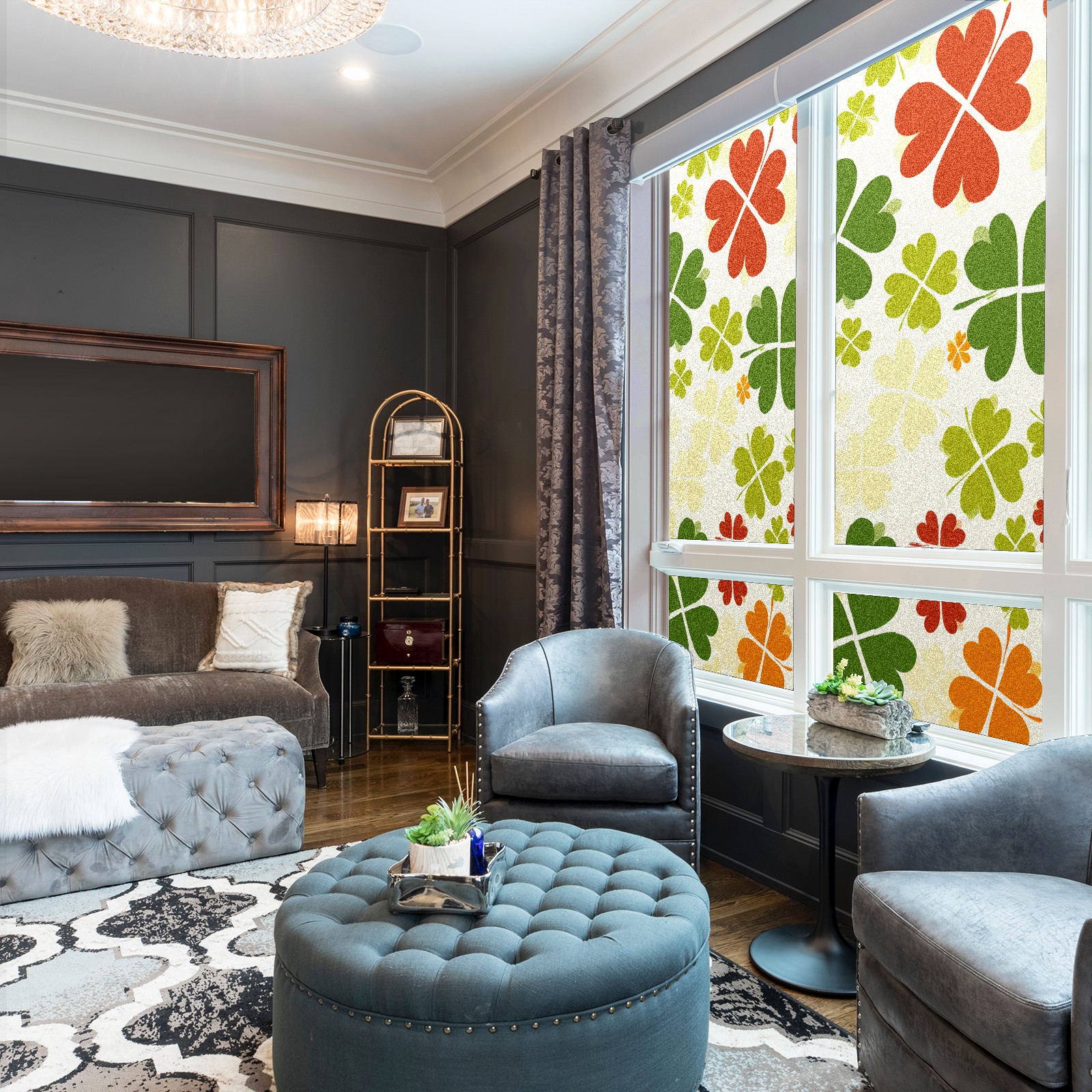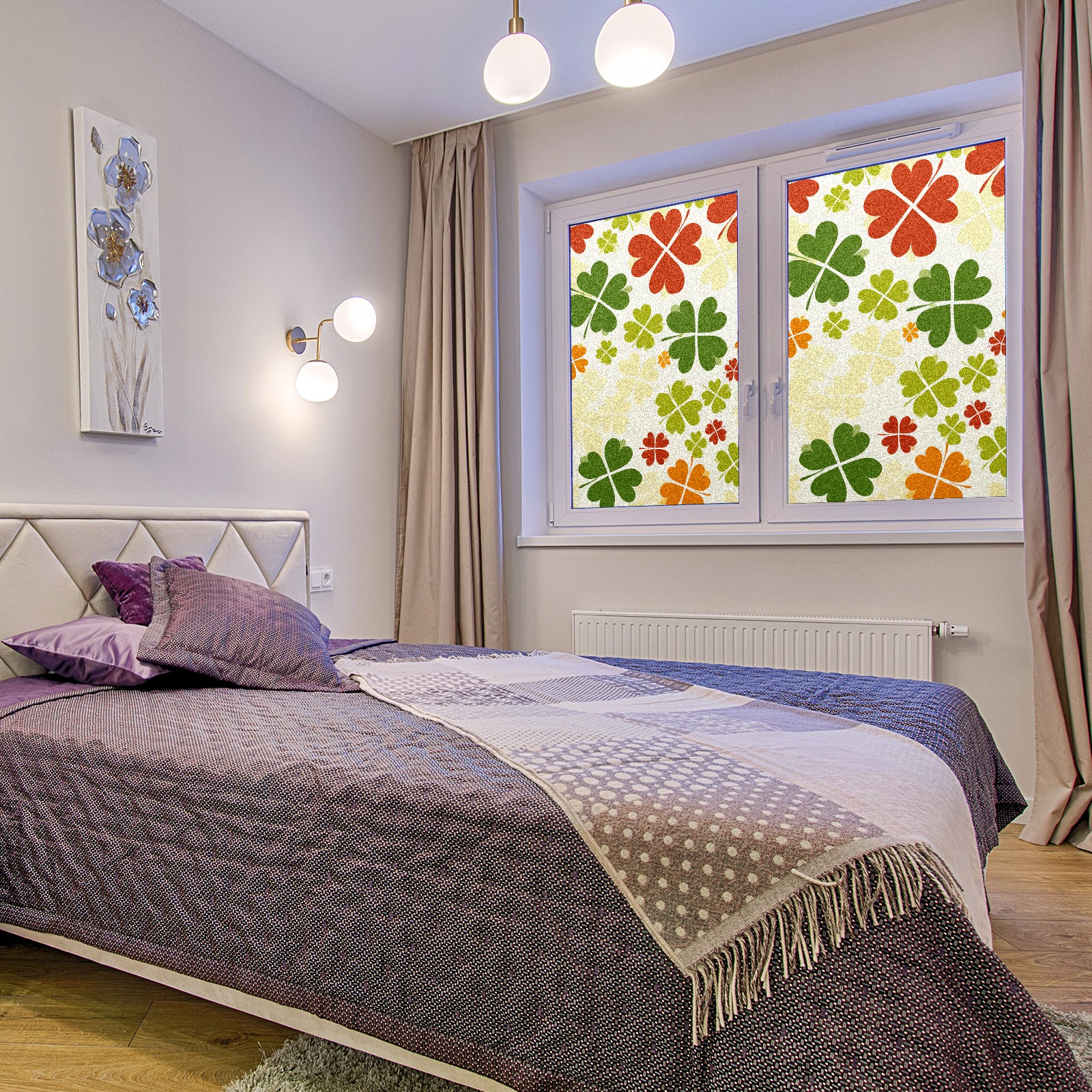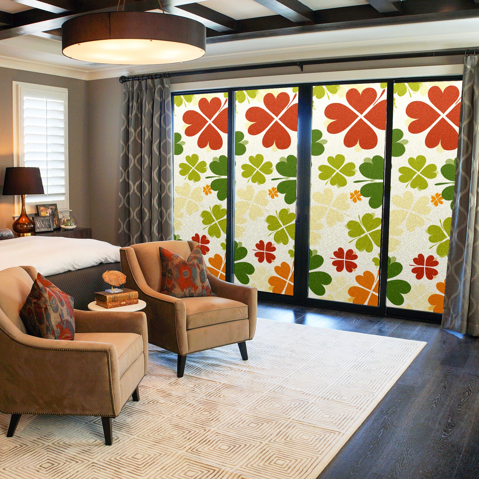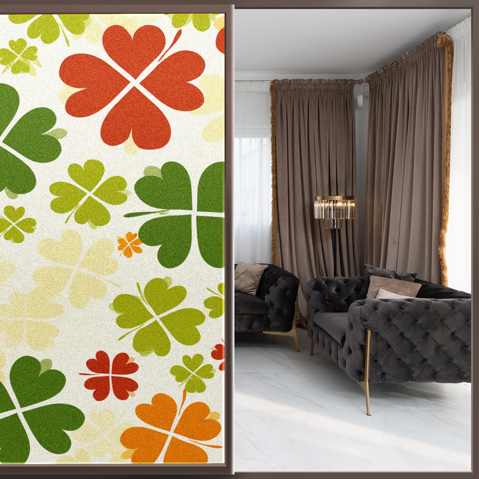Static Cling Decorative Window Film Frosted Privacy Film Window Clings for Glass Windows No Glue Window Sticker for Bathroom Bedroom Office Four Leaf Clover (5)