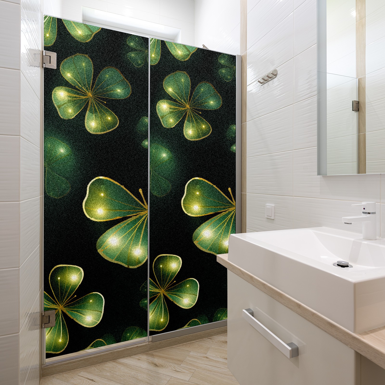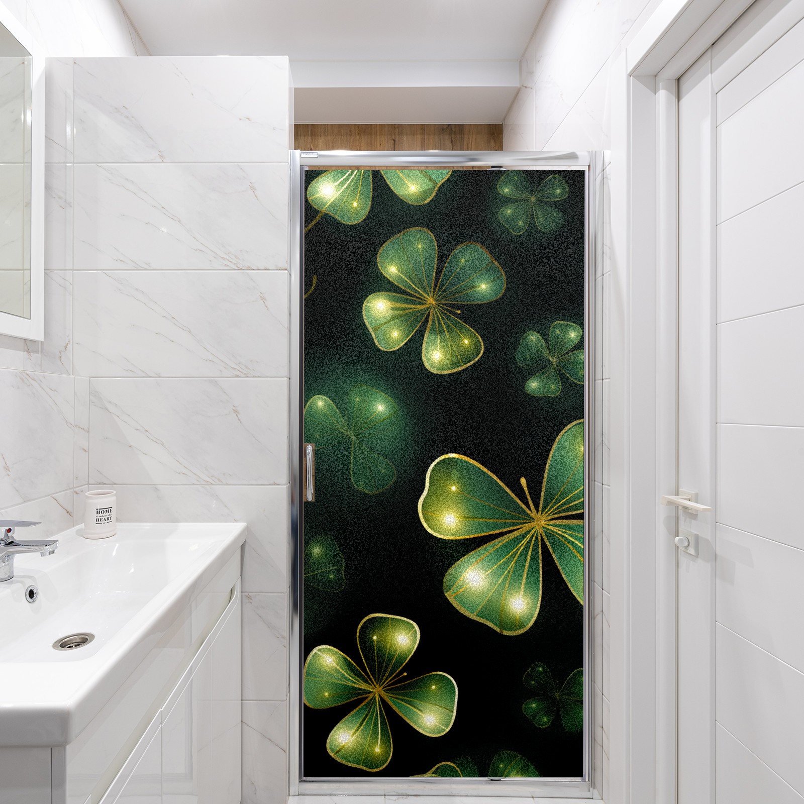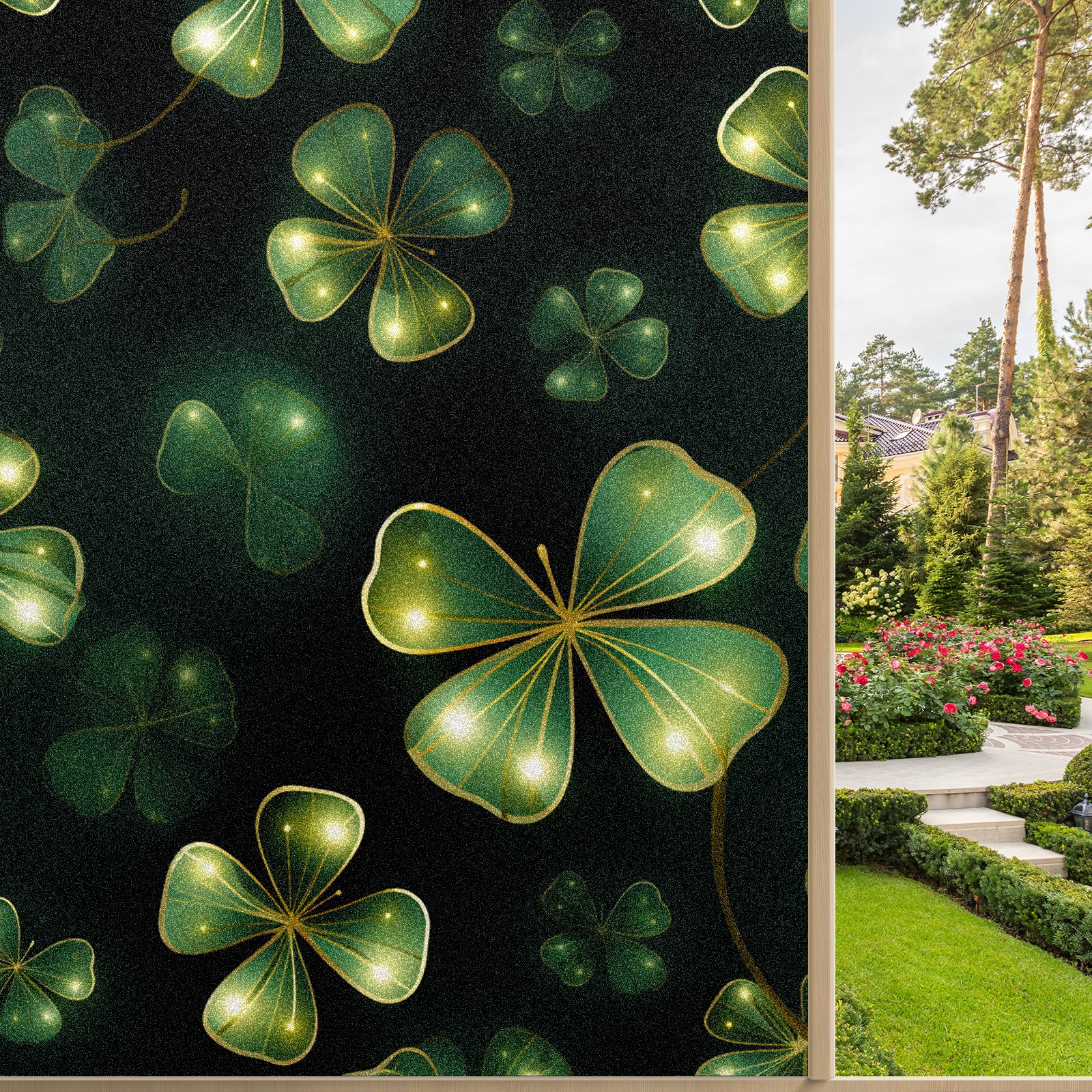 Static Cling Decorative Window Film Frosted Privacy Film Window Clings for Glass Windows No Glue Window Sticker for Bathroom Bedroom Office FourLeafClover (46)