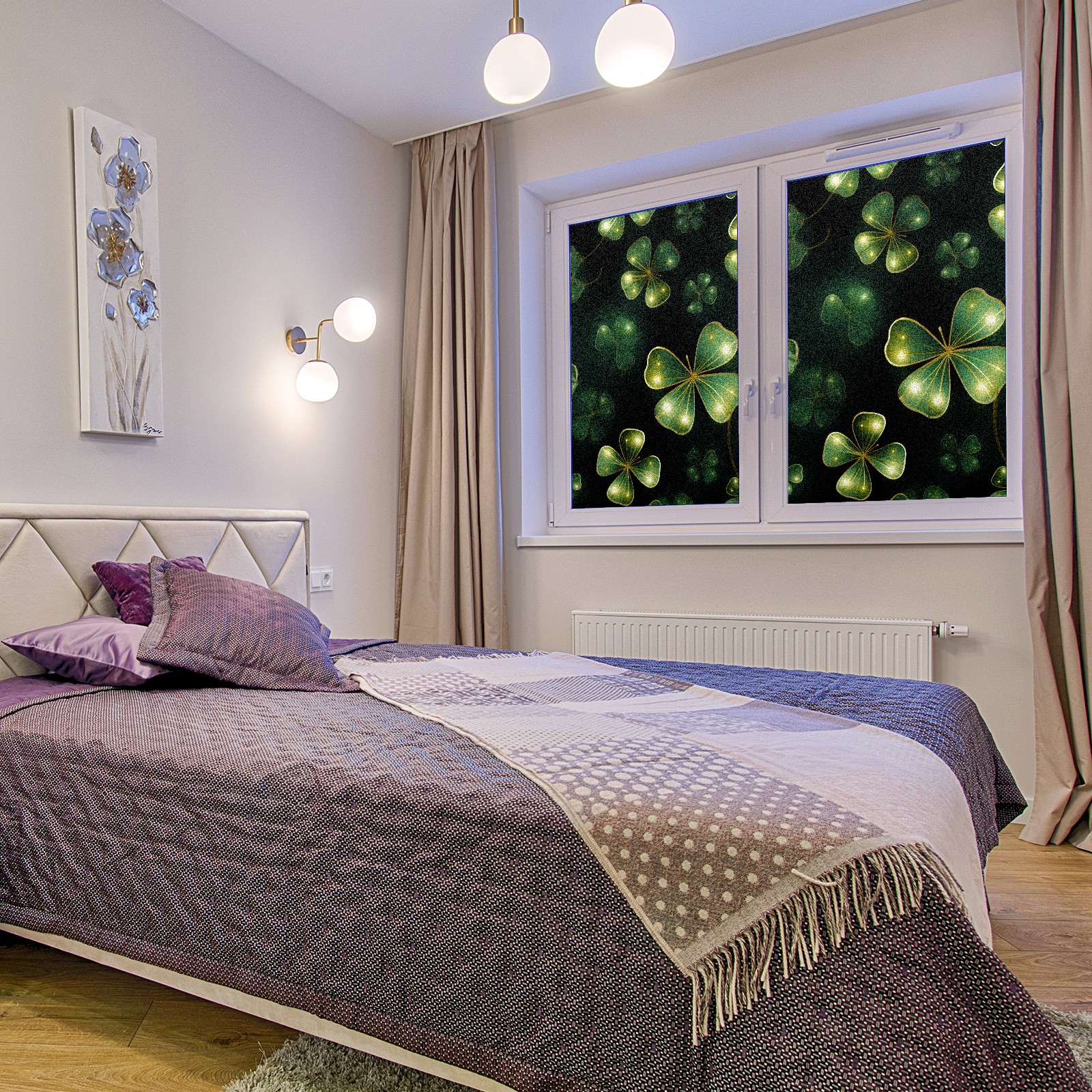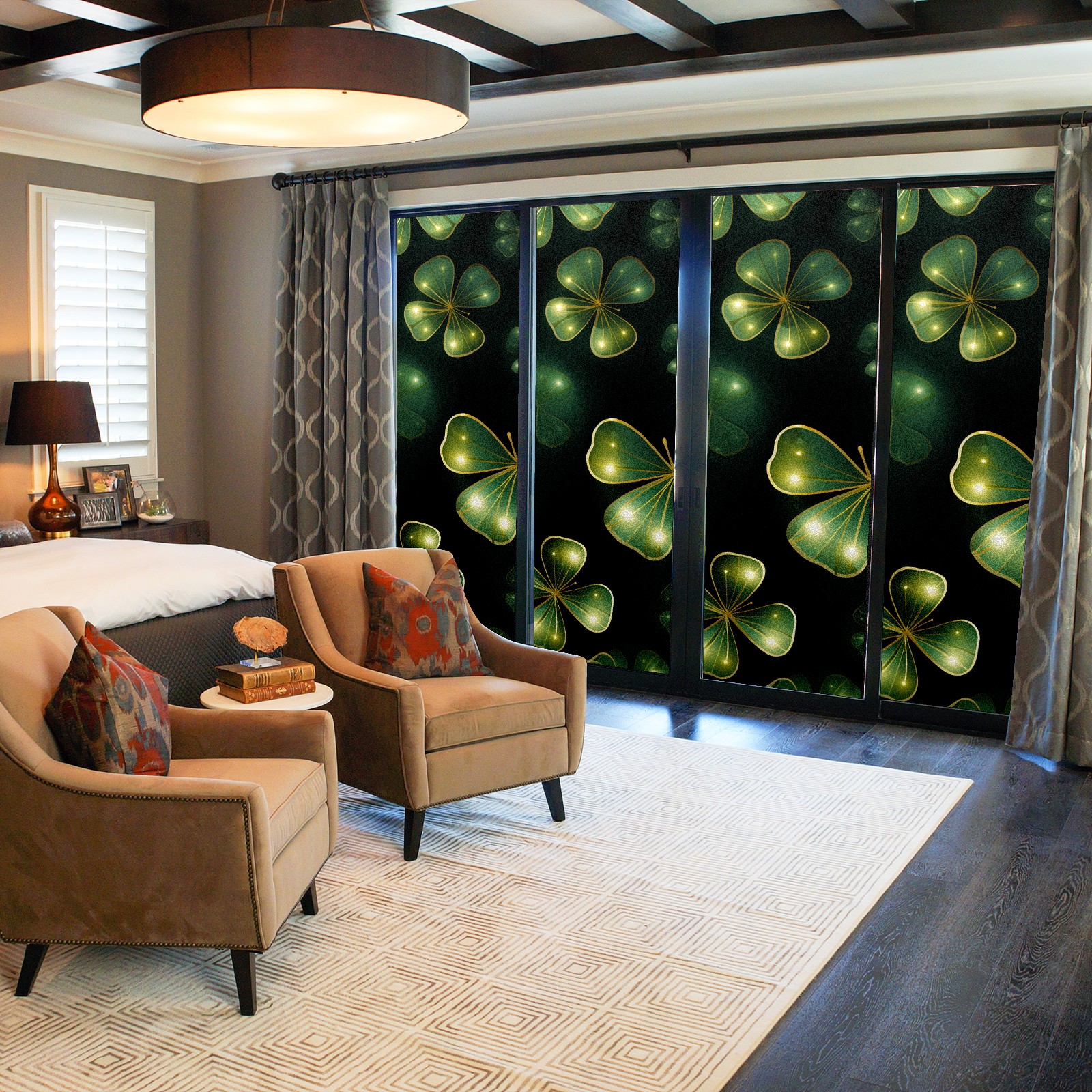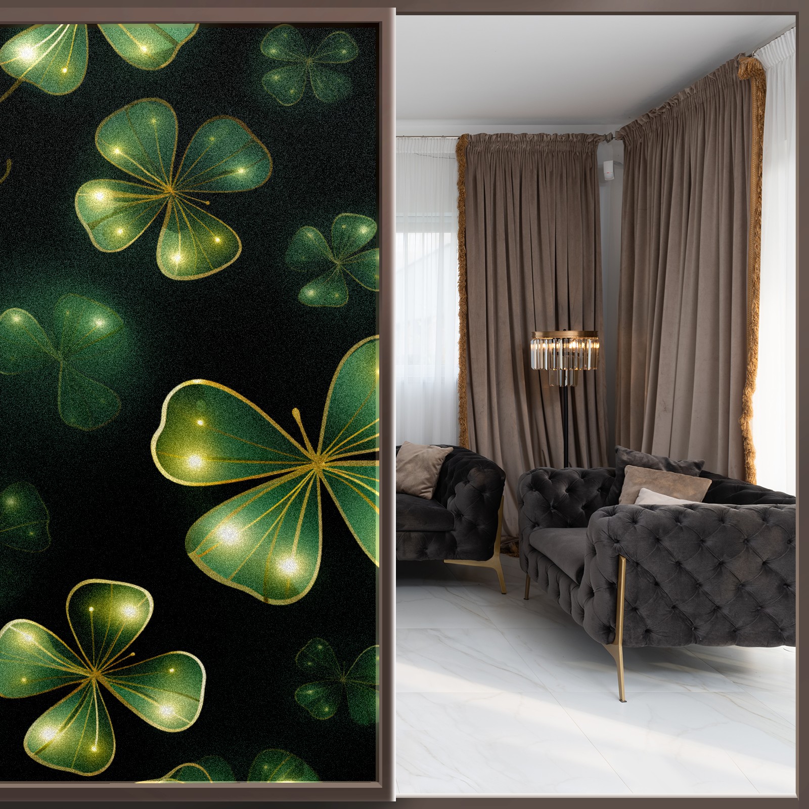 Static Cling Decorative Window Film Frosted Privacy Film Window Clings for Glass Windows No Glue Window Sticker for Bathroom Bedroom Office FourLeafClover (46)