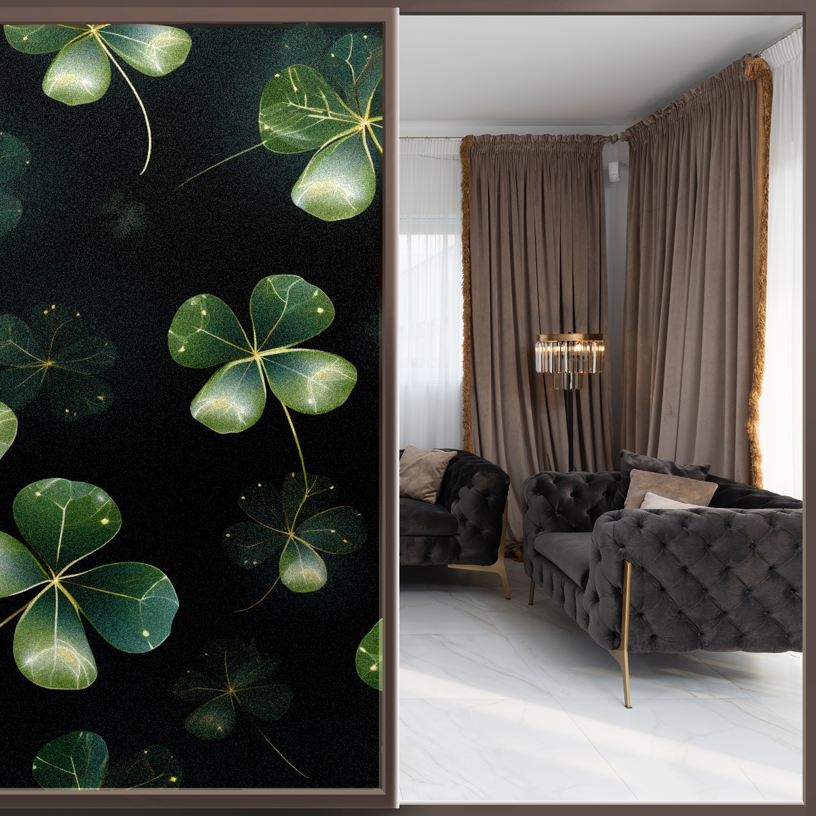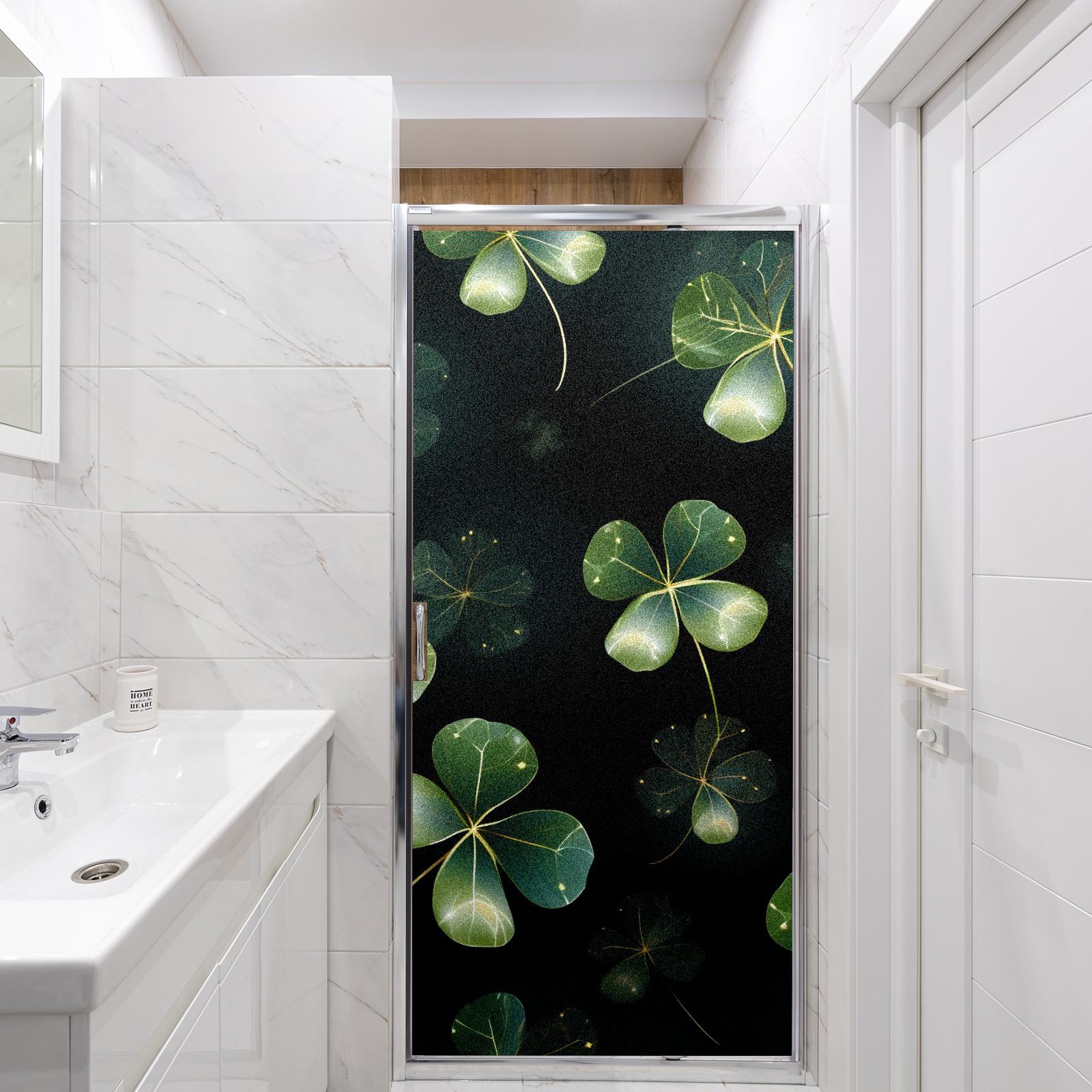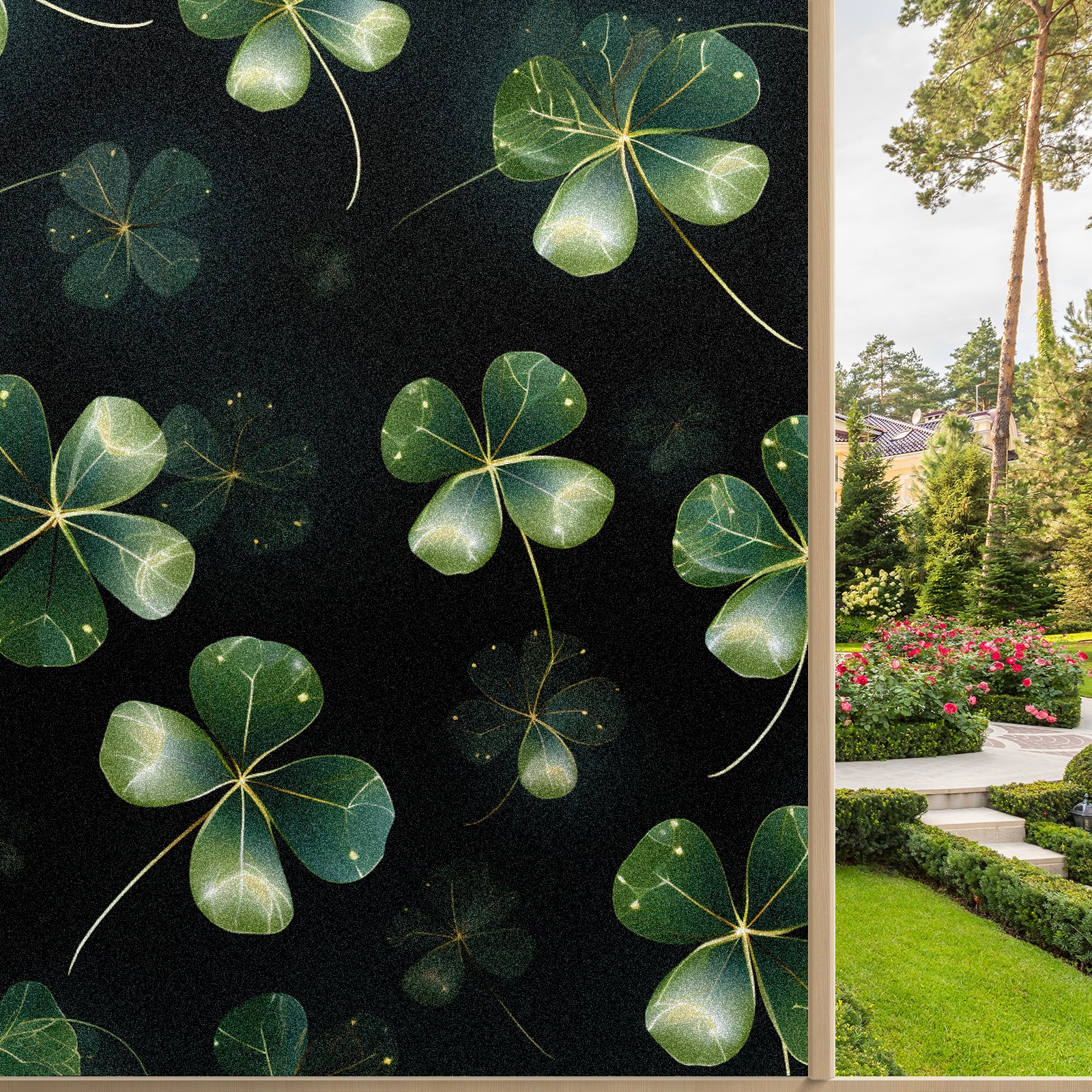 Static Cling Decorative Window Film Frosted Privacy Film Window Clings for Glass Windows No Glue Window Sticker for Bathroom Bedroom Office FourLeafClover (47)