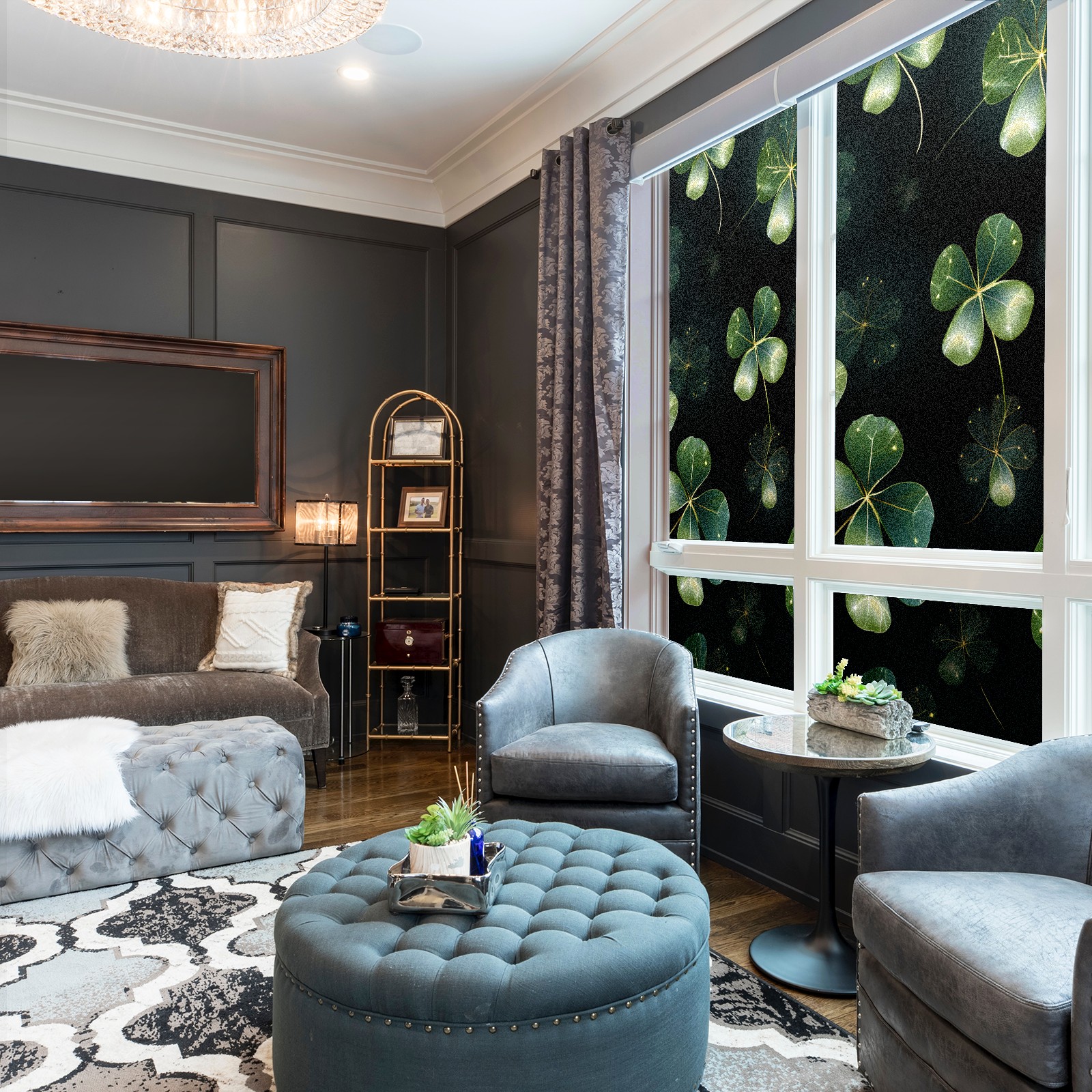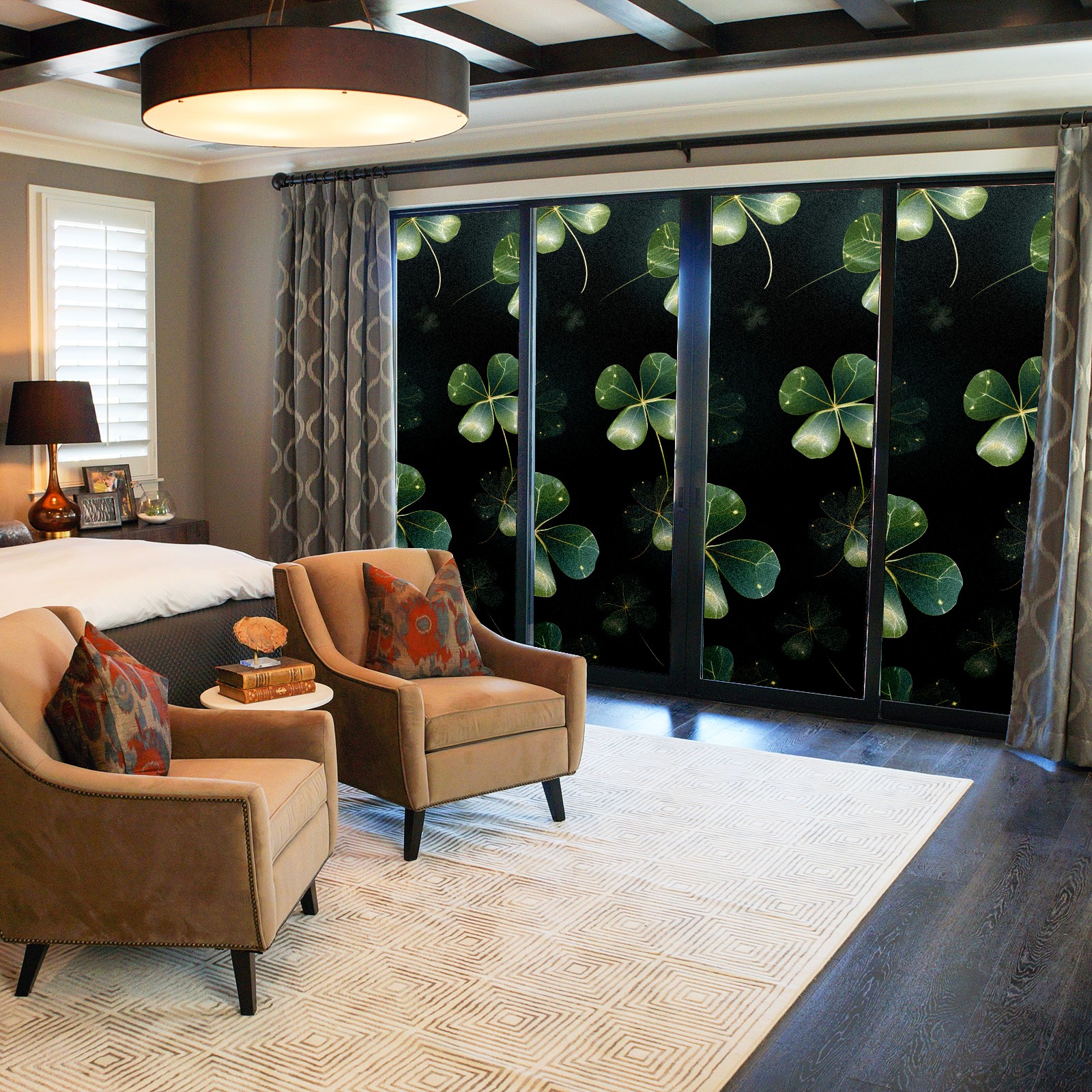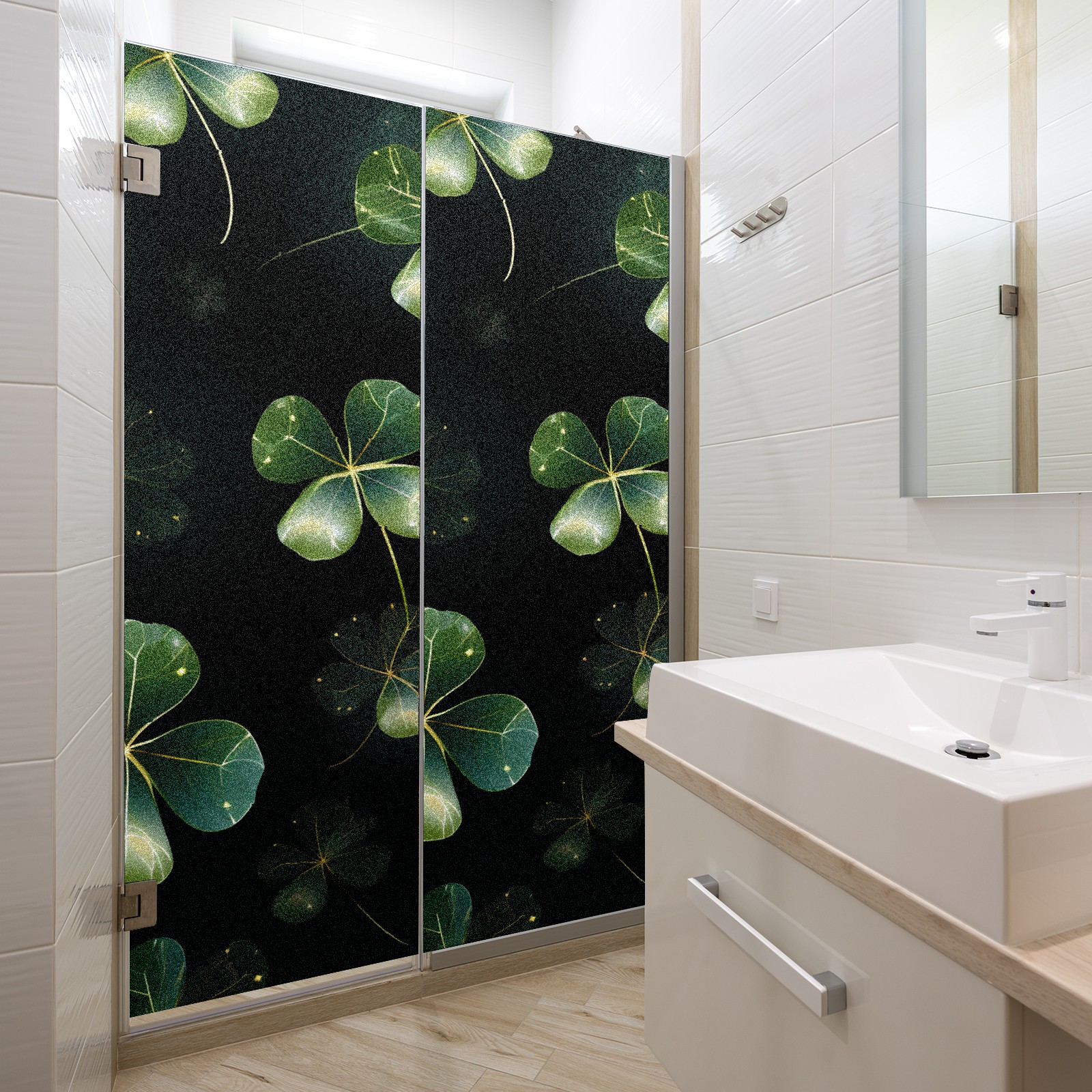 Static Cling Decorative Window Film Frosted Privacy Film Window Clings for Glass Windows No Glue Window Sticker for Bathroom Bedroom Office FourLeafClover (47)