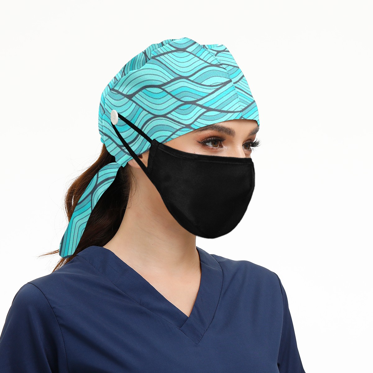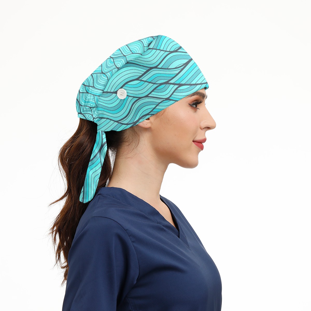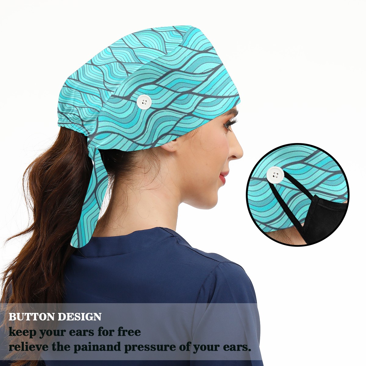 Working Caps with Button & Sweatband Satin Lined Cotton Adjustable Nurse Hats Elastic Band Scrub Cap Surgeon Hat Stripe