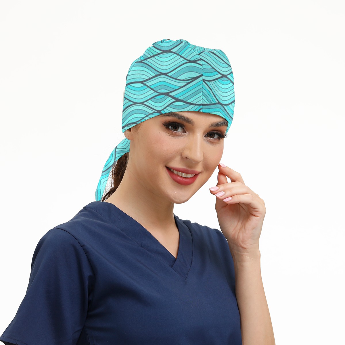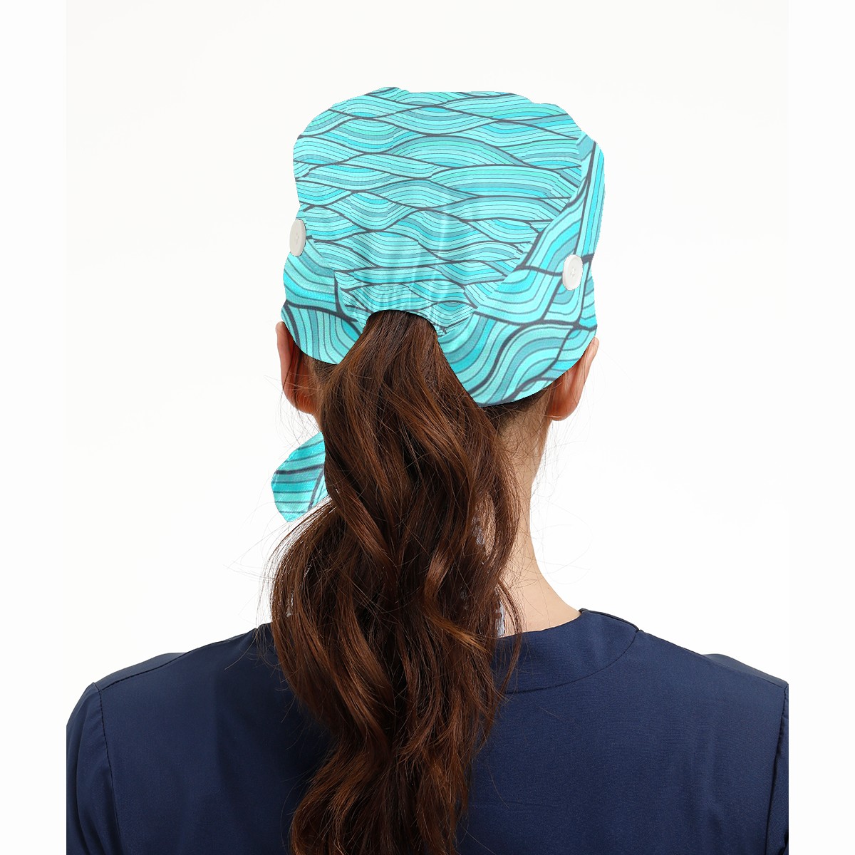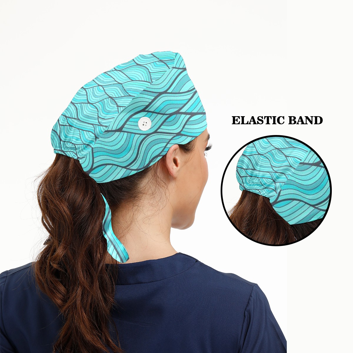 Working Caps with Button & Sweatband Satin Lined Cotton Adjustable Nurse Hats Elastic Band Scrub Cap Surgeon Hat Stripe