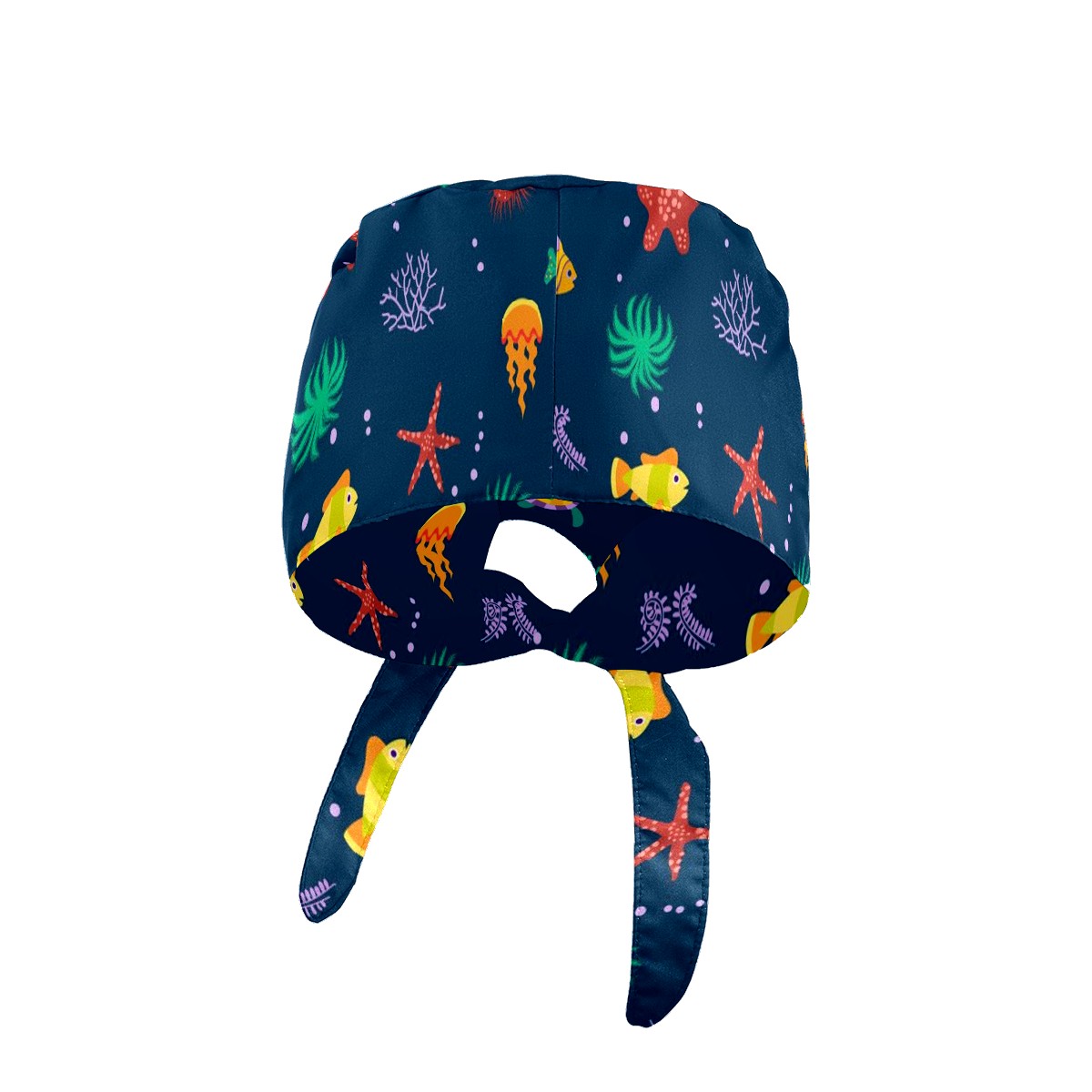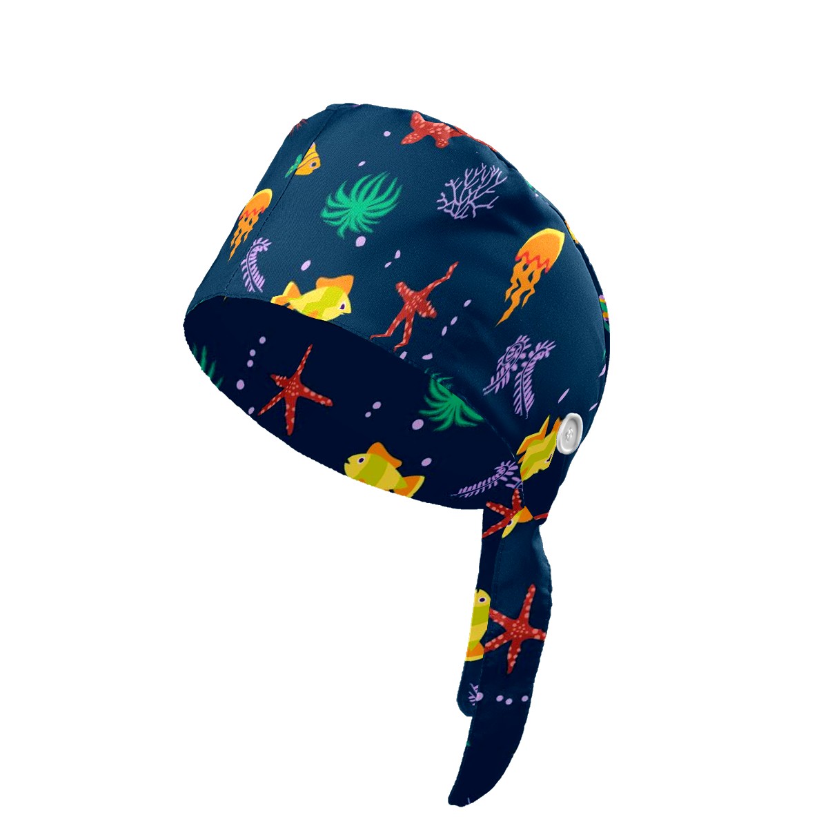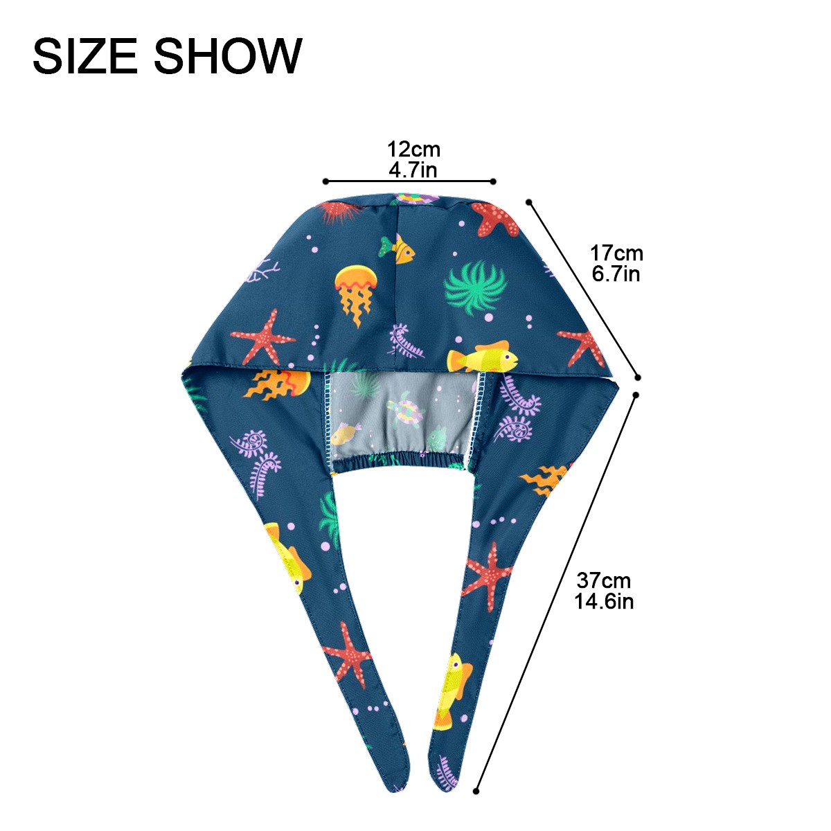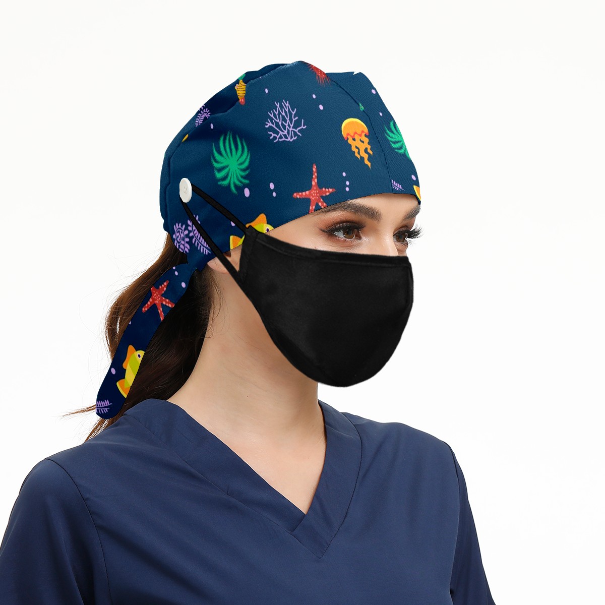 Working Caps with Button & Sweatband Satin Lined Cotton Adjustable Nurse Hats Elastic Band Scrub Cap Surgeon Hat Seabed