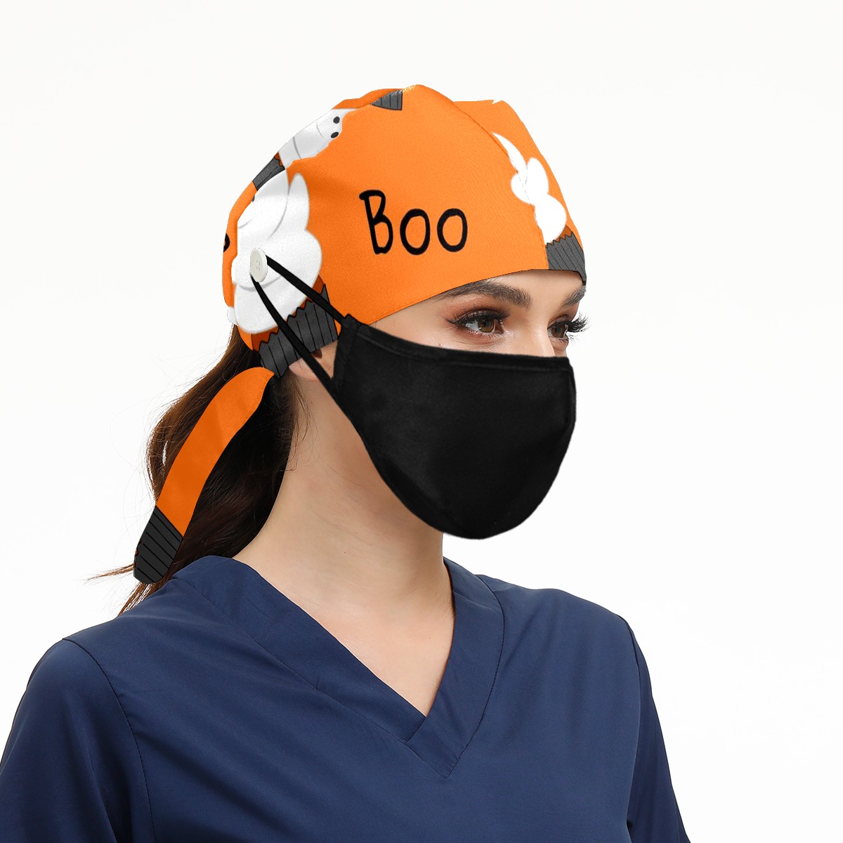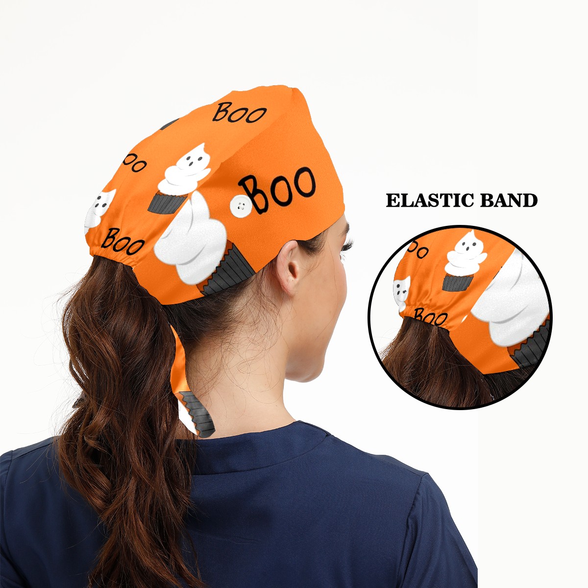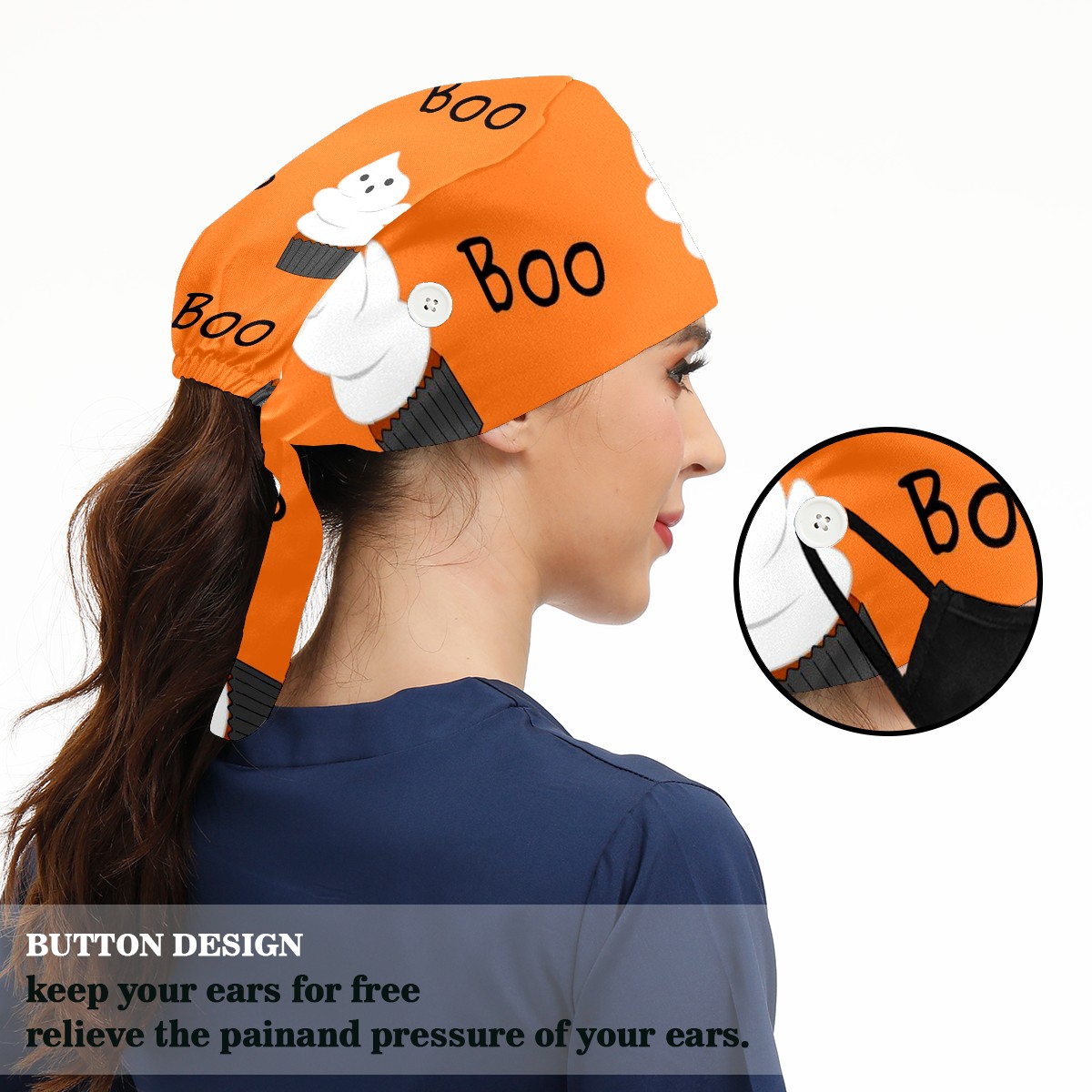 Working Caps with Button & Sweatband Satin Lined Cotton Adjustable Nurse Hats Elastic Band Scrub Cap Surgeon Hat Ice Cream