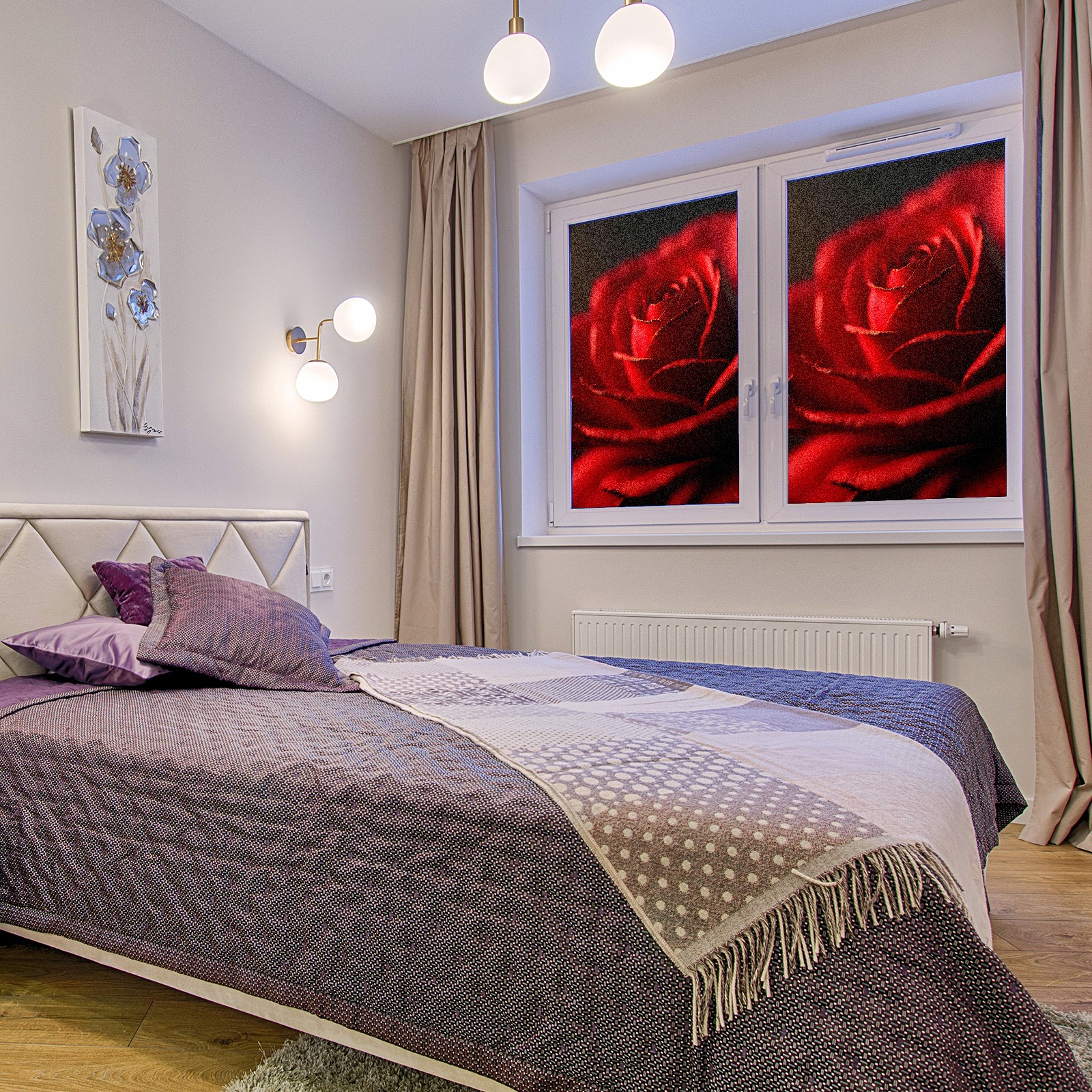 Static Cling Decorative Window Film Frosted Privacy Film Window Clings for Glass Windows No Glue Window Sticker for Bathroom Bedroom Office Rose