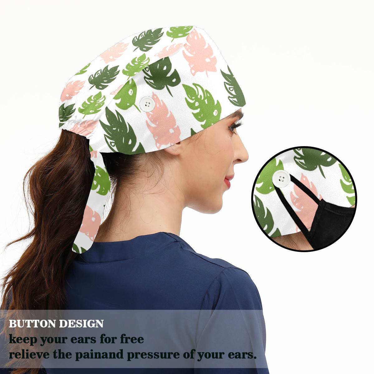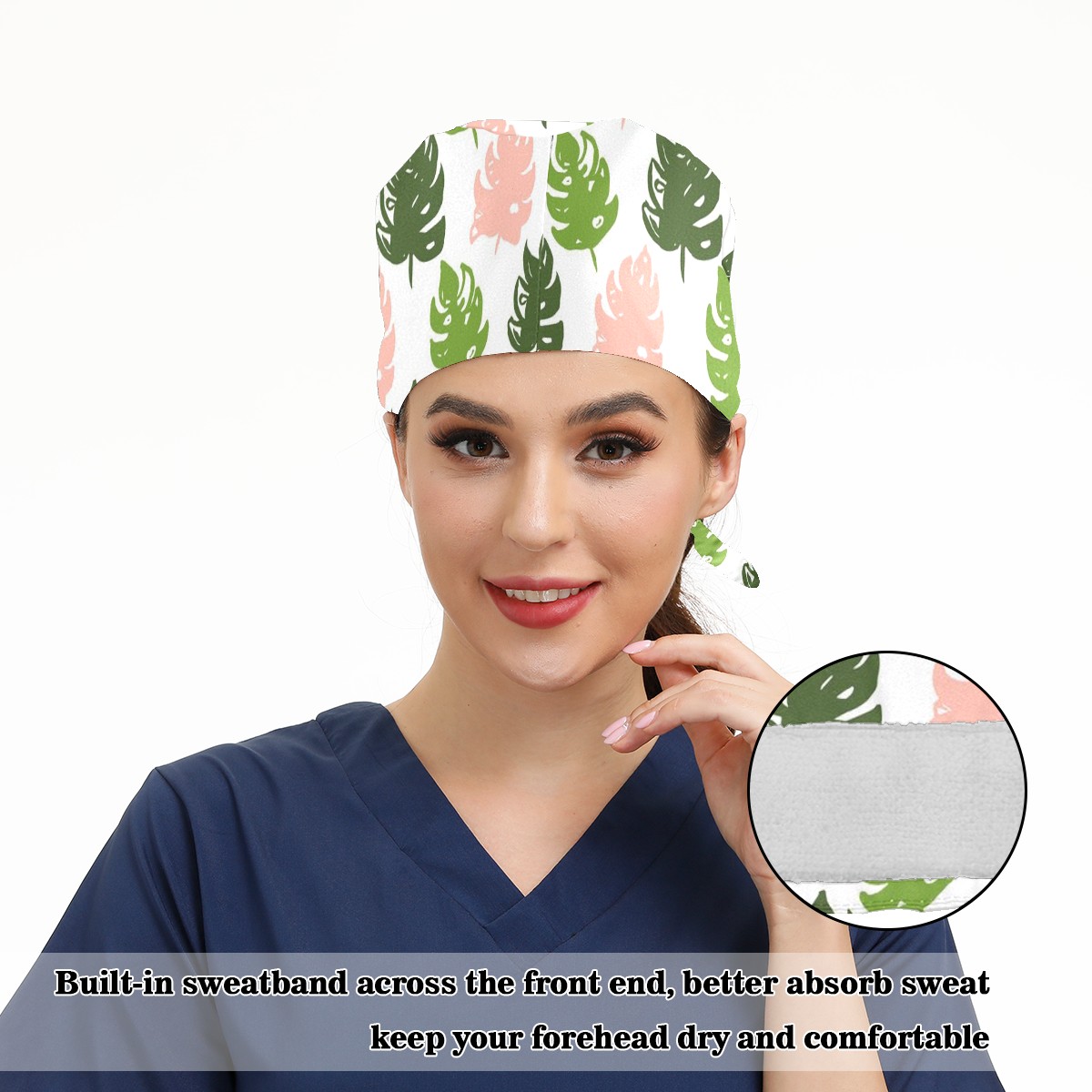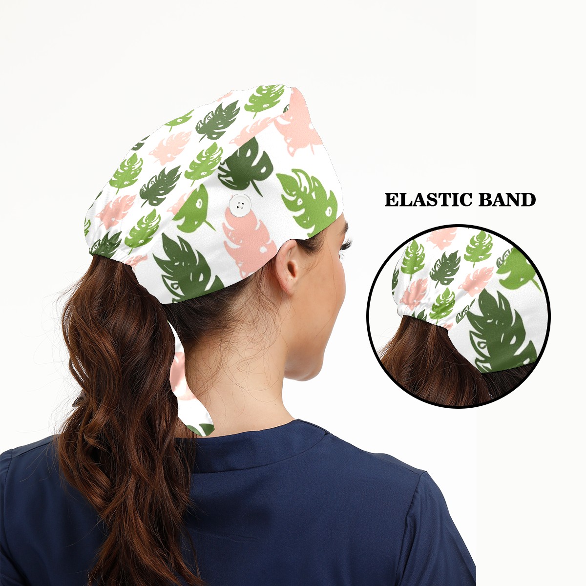 Working Caps with Button & Sweatband Satin Lined Cotton Adjustable Nurse Hats Elastic Band Scrub Cap Surgeon Hat Tree