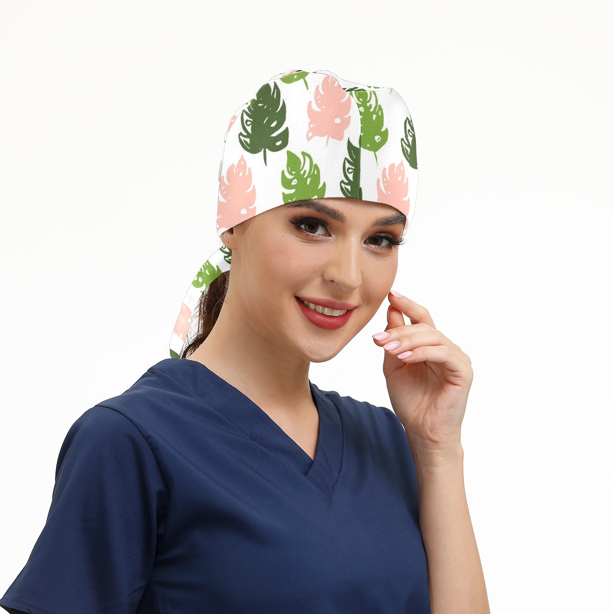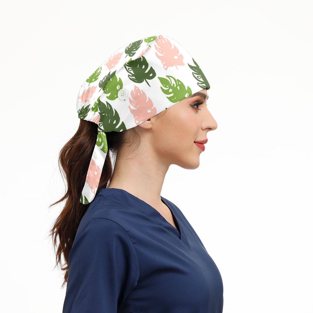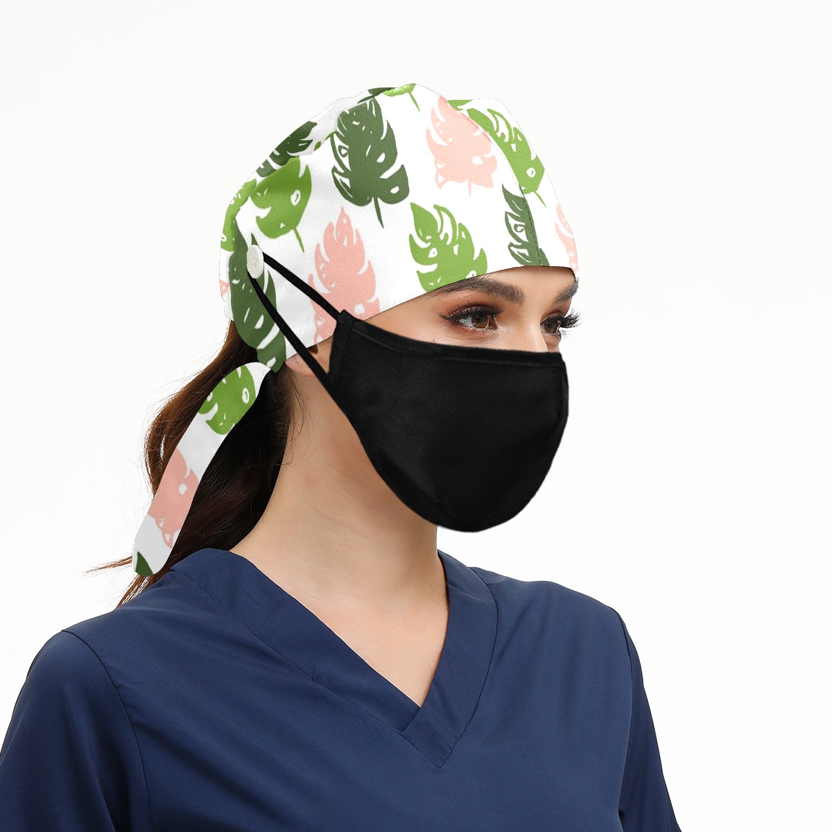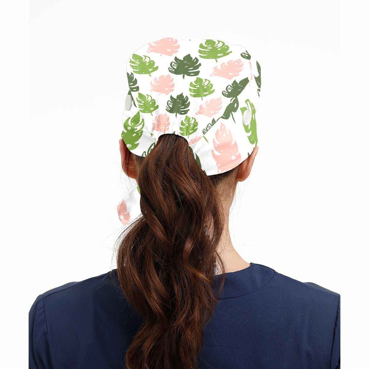 Working Caps with Button & Sweatband Satin Lined Cotton Adjustable Nurse Hats Elastic Band Scrub Cap Surgeon Hat Tree