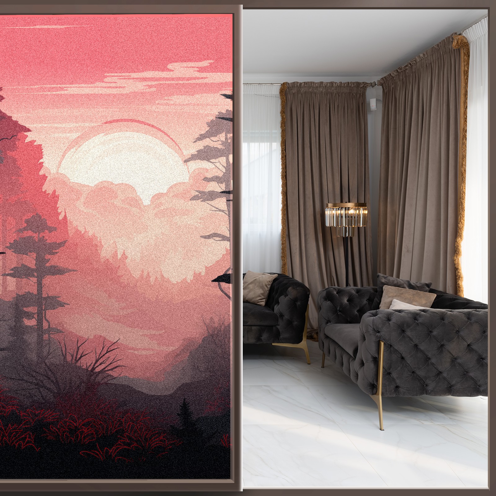 Transform Your House to Home with BRTURLAIR Frosted Glass Window Film!</b><br> ●BRTURLAIR Window Film with Graphic Printings, Bright and Vivid Color, Our Window Clings are Great Home Decoration.<br> ●This one-way window tint offers excellent sun blocking capabilities, effectively reducing heat and glare, while still allowing natural light into your space.<br> ●With its non-adhesive static cling technology, installation is a breeze.<br> ●Plus, it’s reusable, making it perfect for renters.<br> <br> Installation Tips:</b> Before installation, please make sure the window surface, edges and corners are clean enough without any dust; during installation, please spray a lot of water both on the window surface and window film back for effective attachment; after installation, please trim the margins and leave edge gaps to squeeze out air bubbles easily.