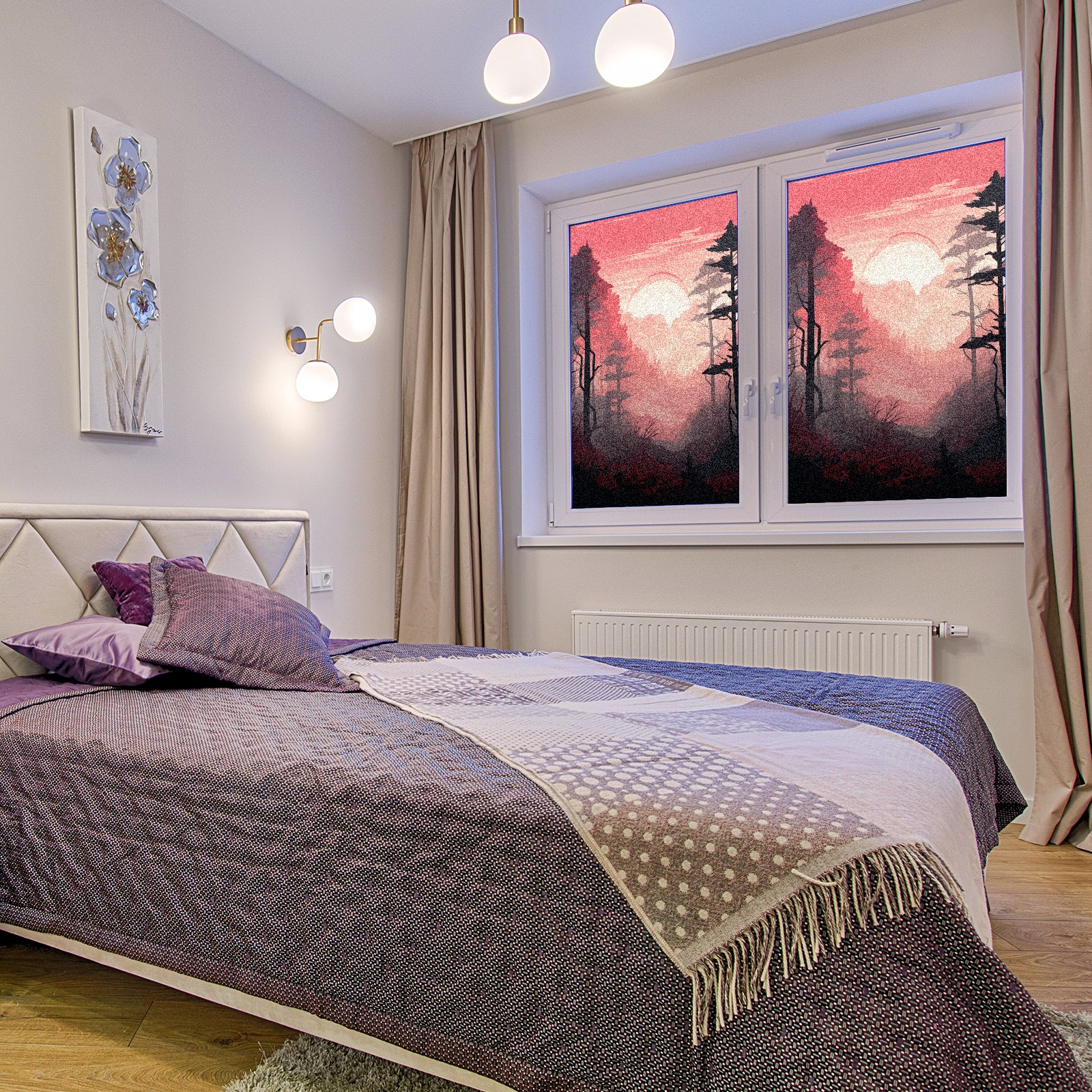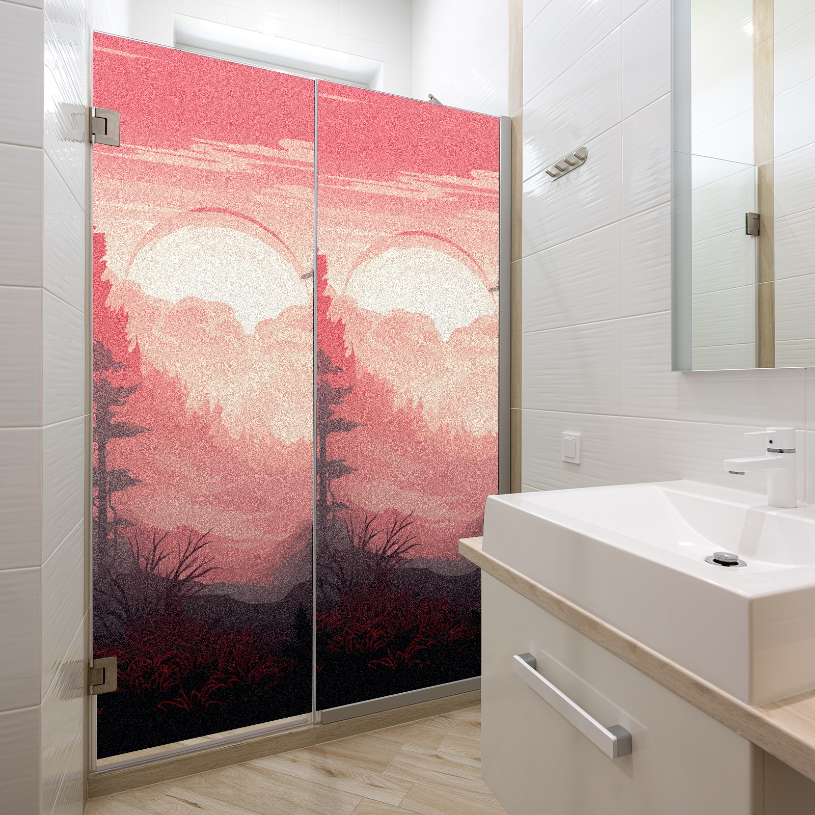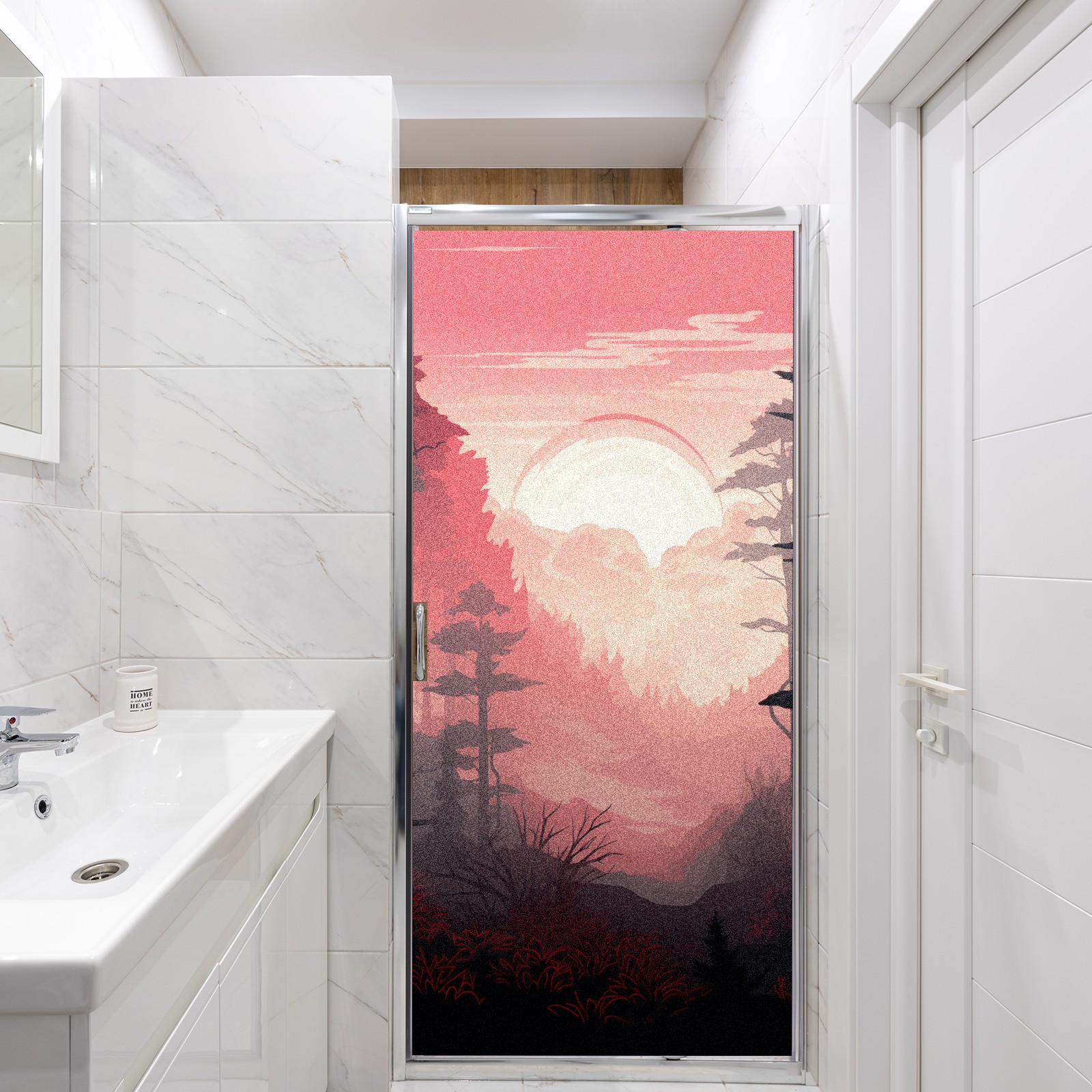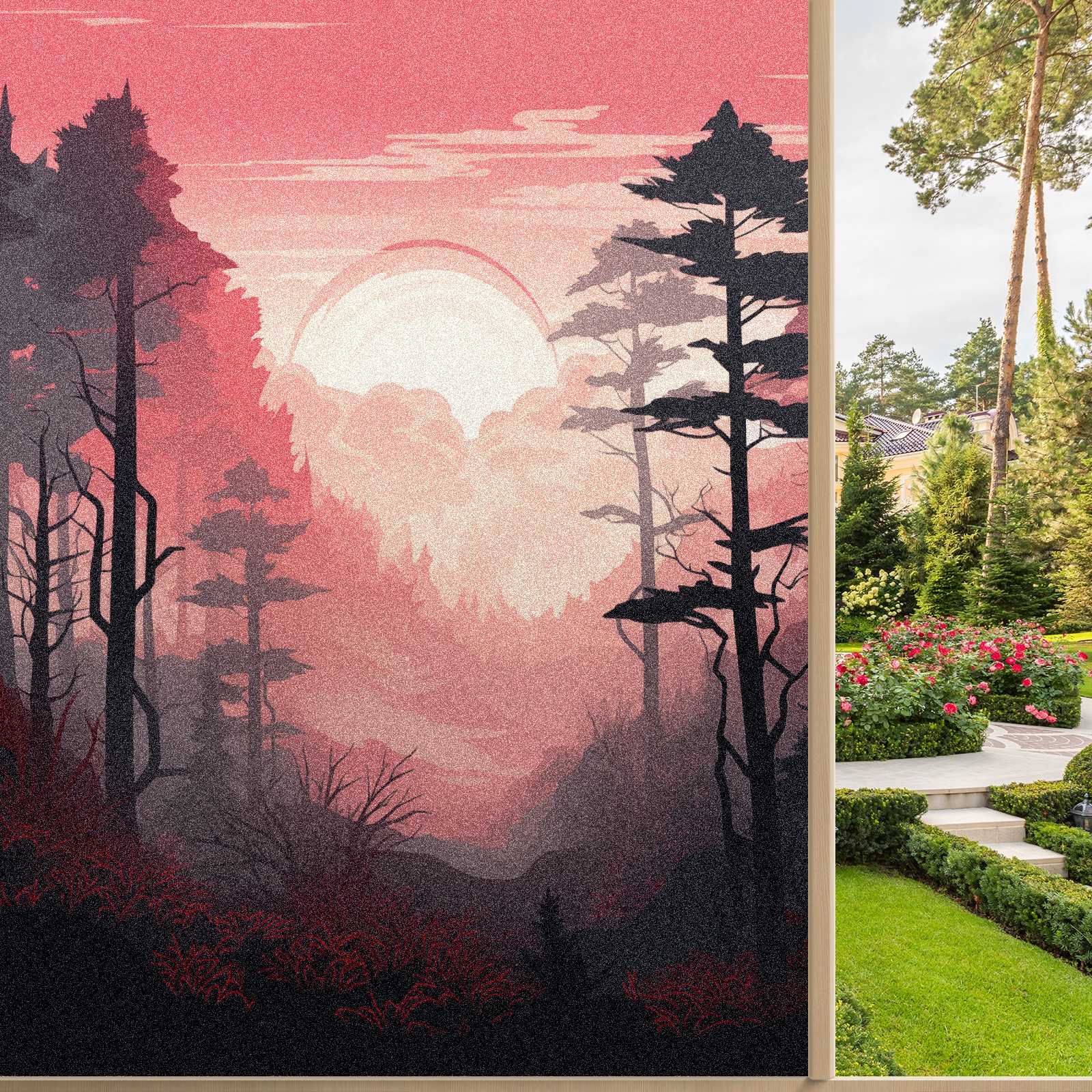 Static Cling Decorative Window Film Frosted Privacy Film Window Clings for Glass Windows No Glue Window Sticker for Bathroom Bedroom Office Pink Forest