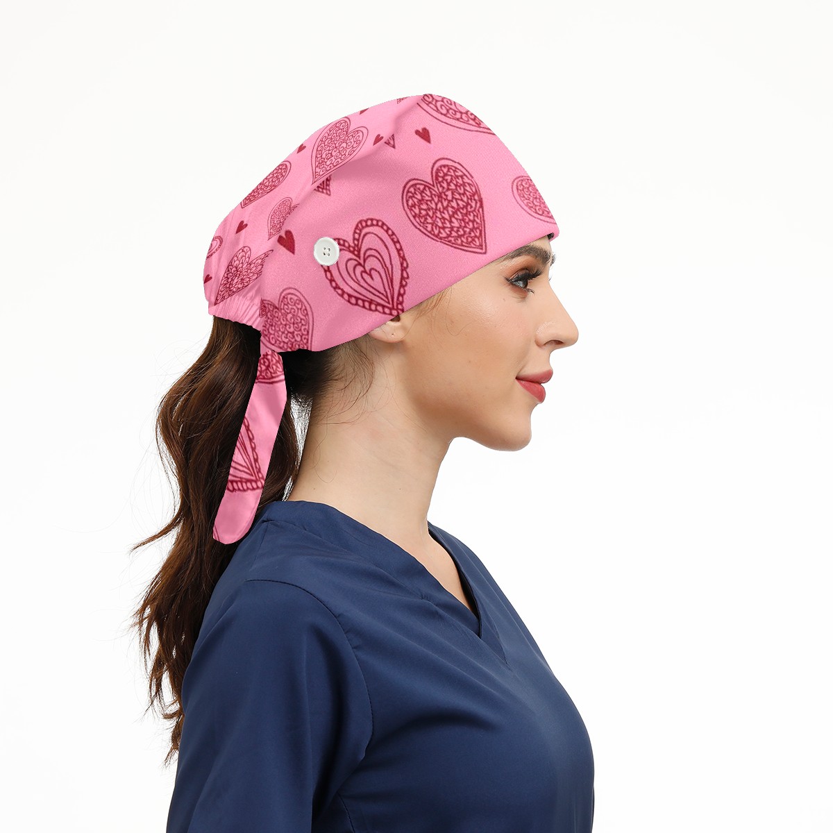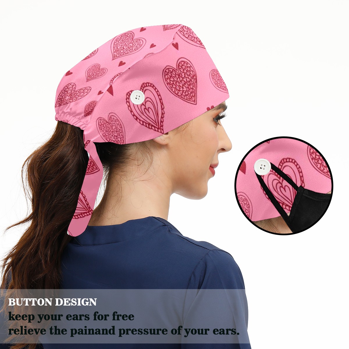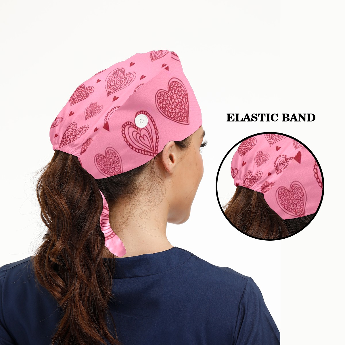 Working Caps with Button & Sweatband Satin Lined Cotton Adjustable Nurse Hats Elastic Band Scrub Cap Surgeon Hat Love