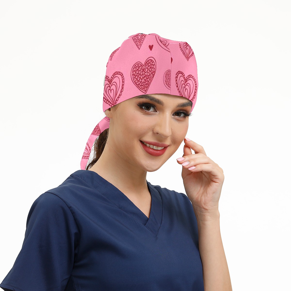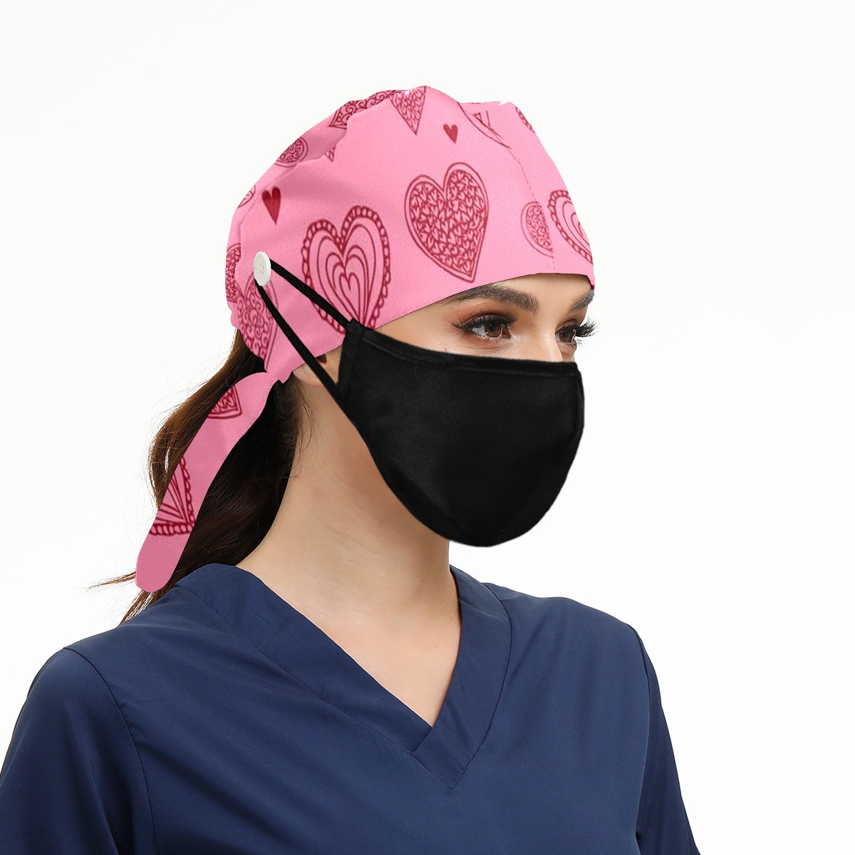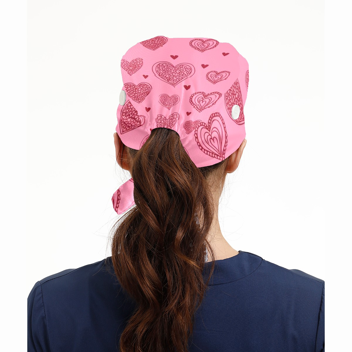 Working Caps with Button & Sweatband Satin Lined Cotton Adjustable Nurse Hats Elastic Band Scrub Cap Surgeon Hat Love