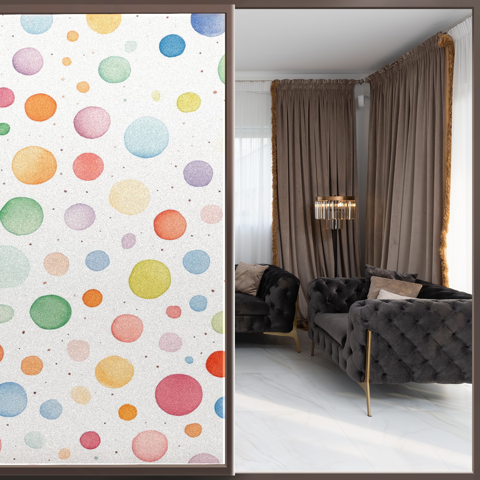 Transform Your House to Home with BRTURLAIR Frosted Glass Window Film!</b><br> ●BRTURLAIR Window Film with Graphic Printings, Bright and Vivid Color, Our Window Clings are Great Home Decoration.<br> ●This one-way window tint offers excellent sun blocking capabilities, effectively reducing heat and glare, while still allowing natural light into your space.<br> ●With its non-adhesive static cling technology, installation is a breeze.<br> ●Plus, it’s reusable, making it perfect for renters.<br> <br> Installation Tips:</b> Before installation, please make sure the window surface, edges and corners are clean enough without any dust; during installation, please spray a lot of water both on the window surface and window film back for effective attachment; after installation, please trim the margins and leave edge gaps to squeeze out air bubbles easily.