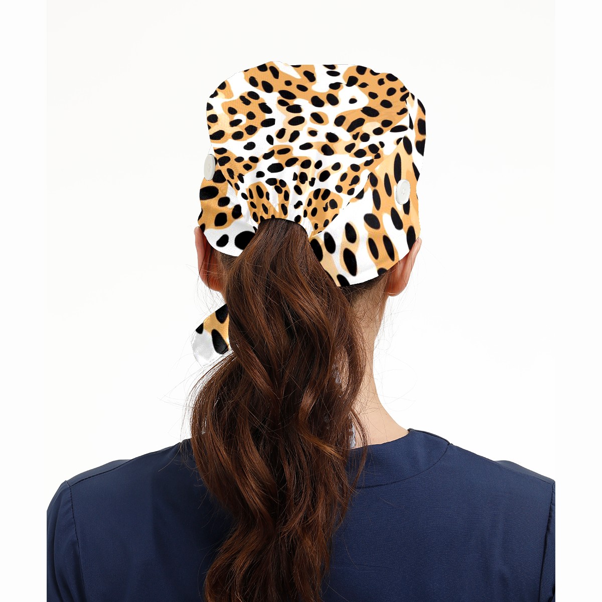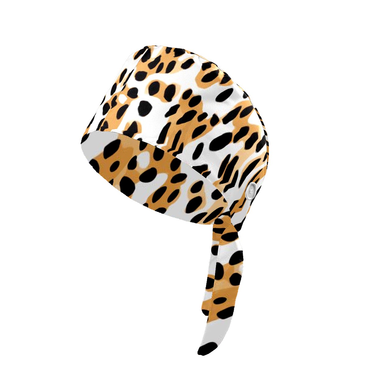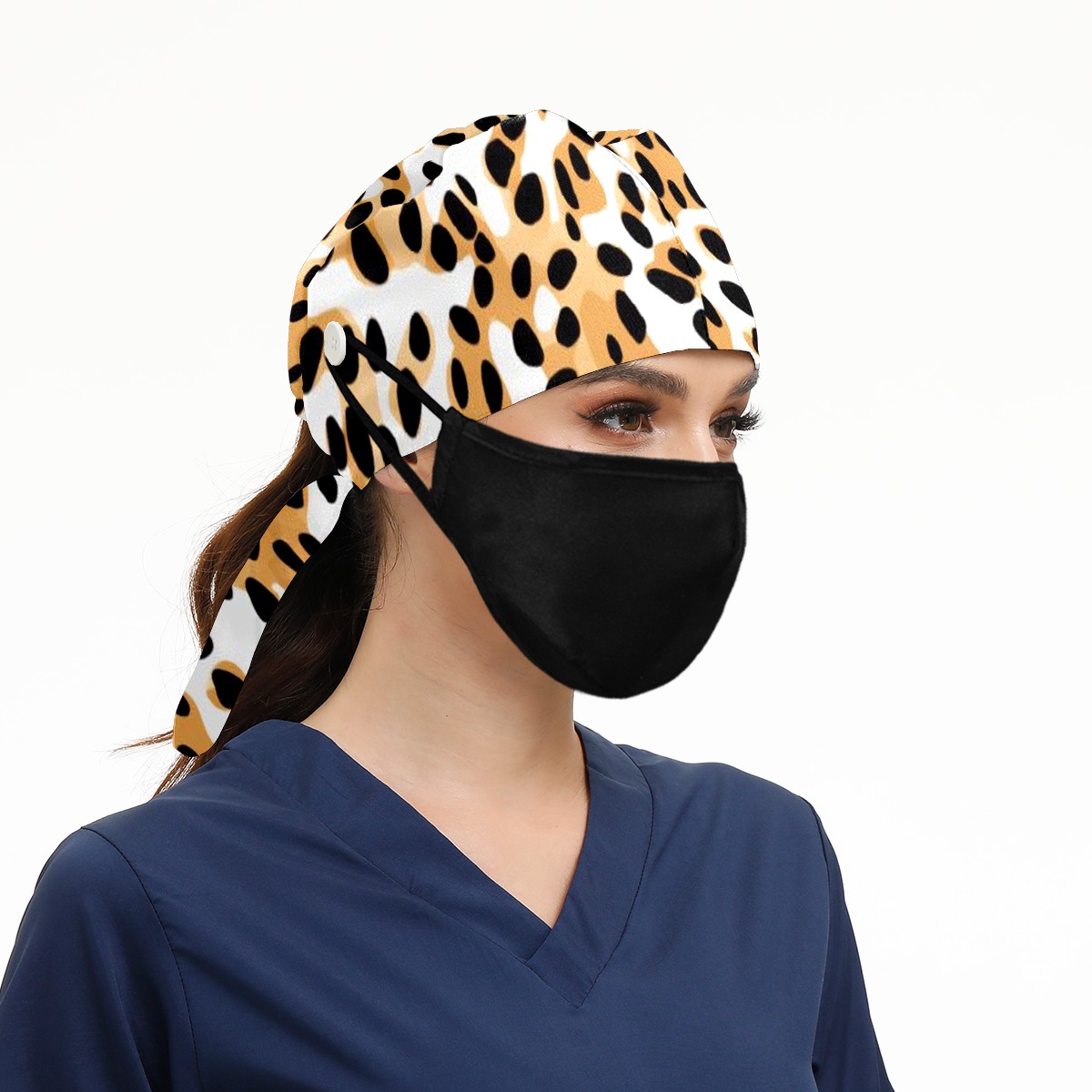 Working Caps with Button & Sweatband Satin Lined Cotton Adjustable Nurse Hats Elastic Band Scrub Cap Surgeon Hat Leopard