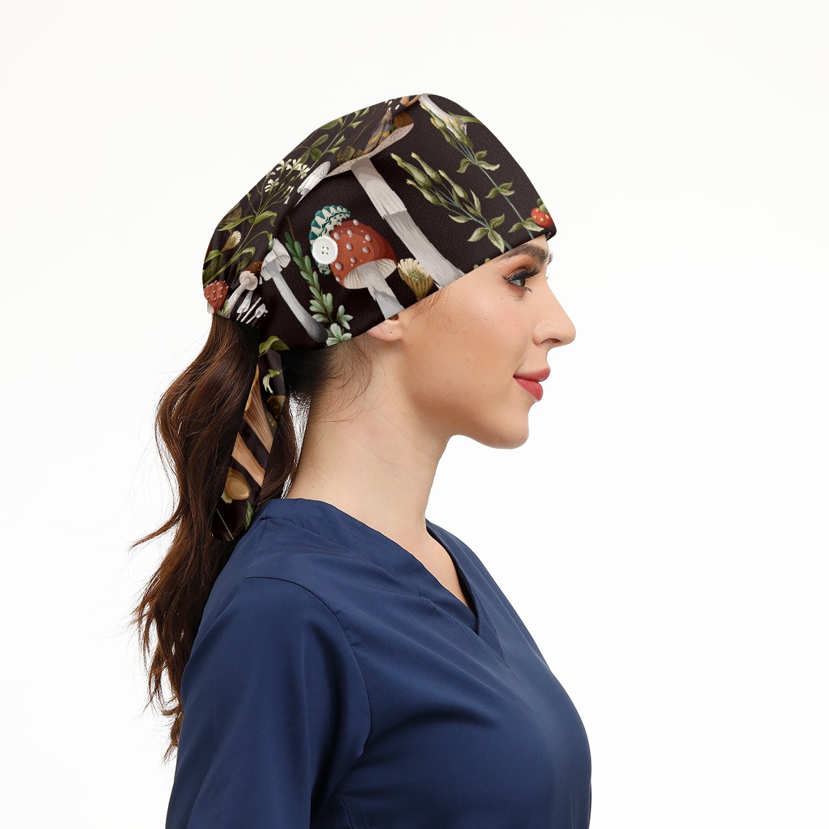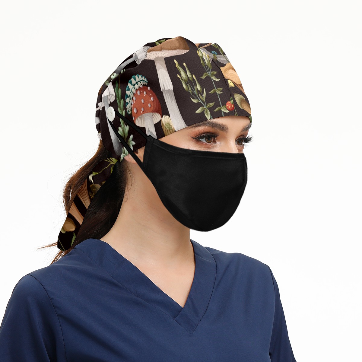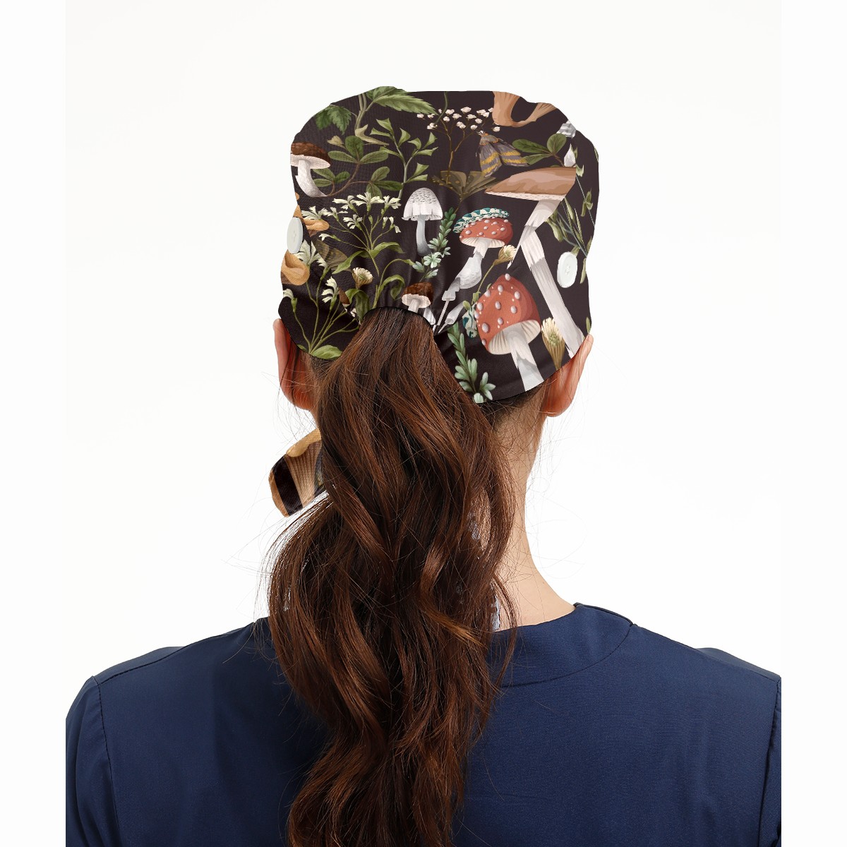 Working Caps with Button & Sweatband Satin Lined Cotton Adjustable Nurse Hats Elastic Band Scrub Cap Surgeon Hat Autumn Mushroom Berry Bug