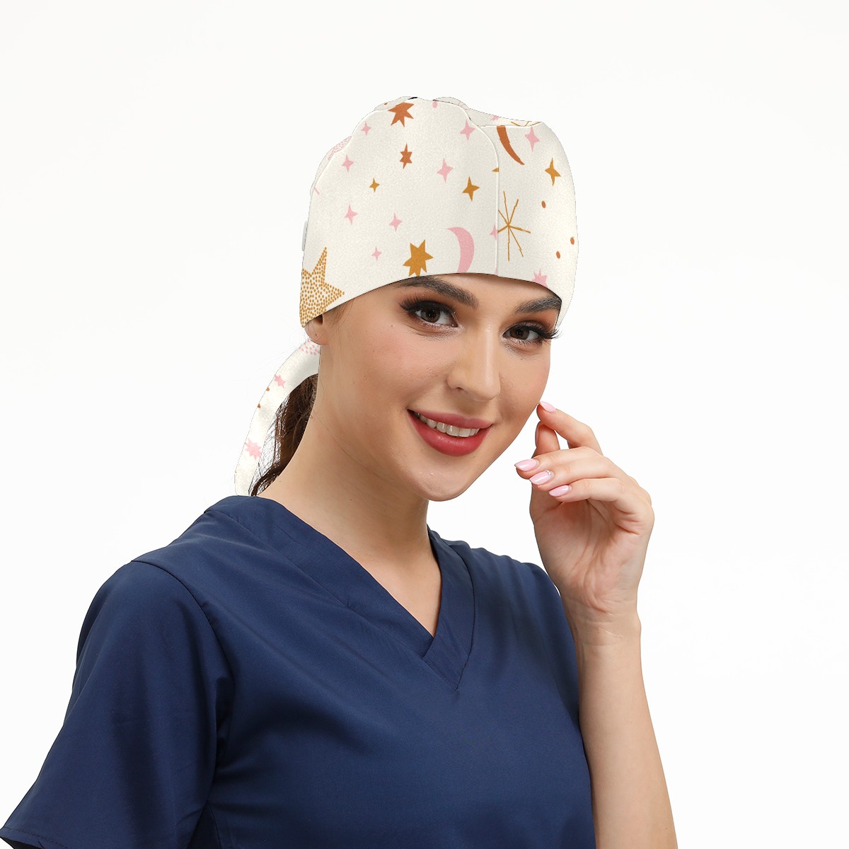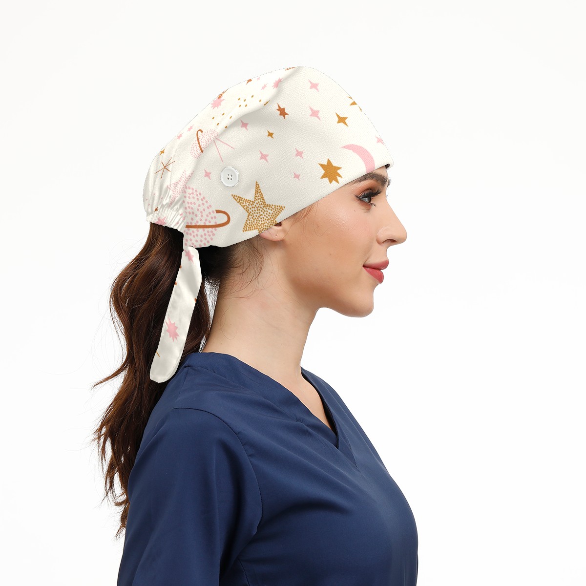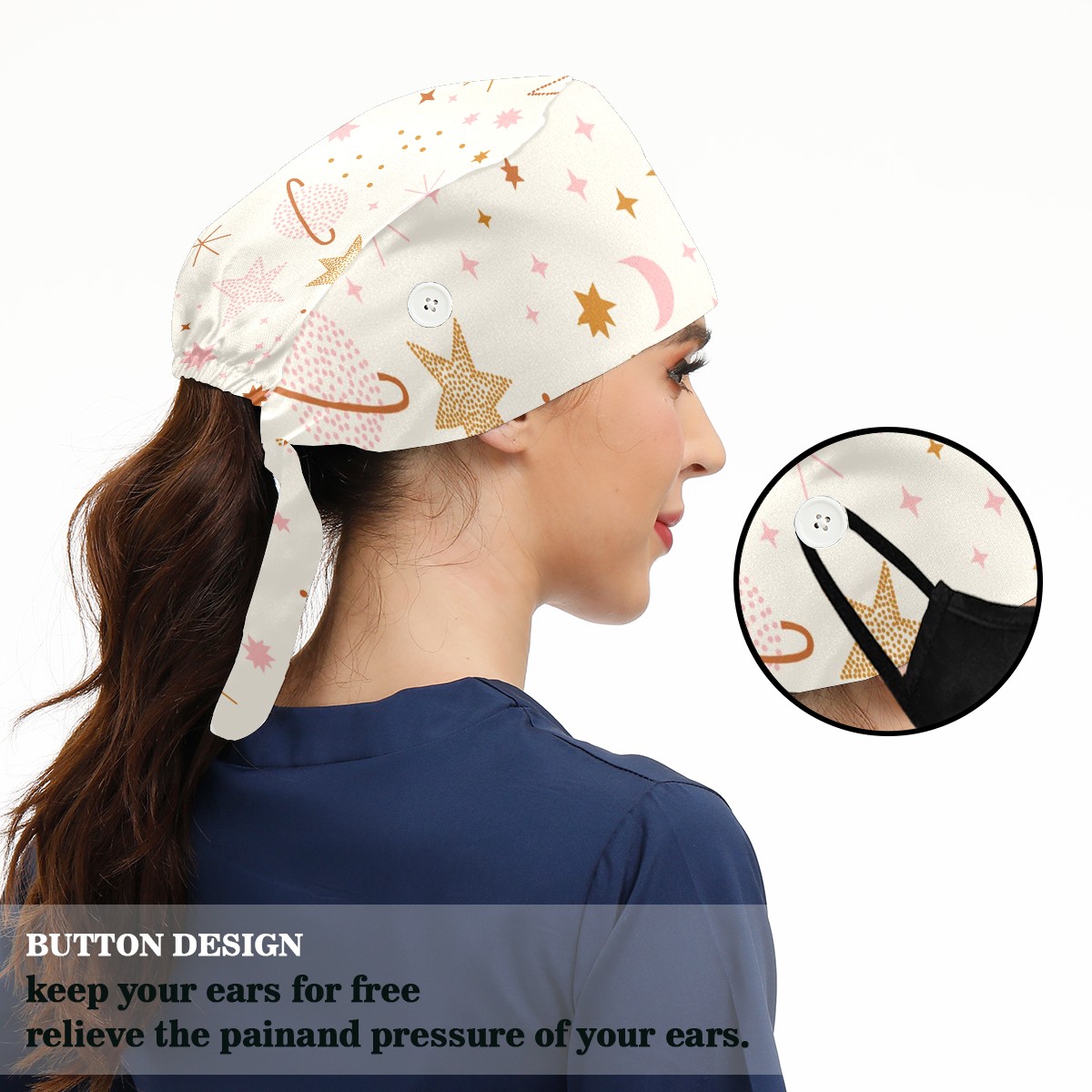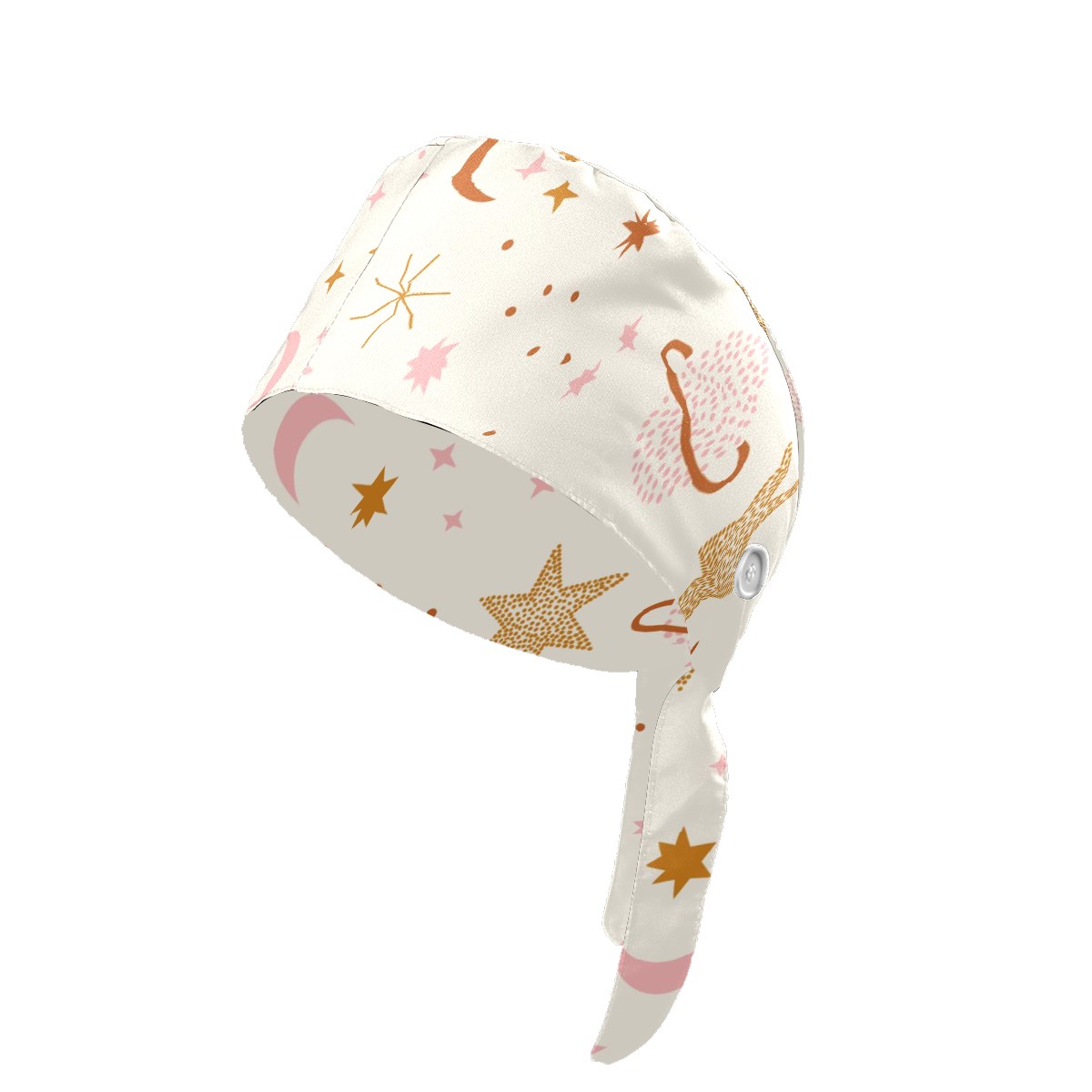 Working Caps with Button & Sweatband Satin Lined Cotton Adjustable Nurse Hats Elastic Band Scrub Cap Surgeon Hat Boho Universe Stars Moon