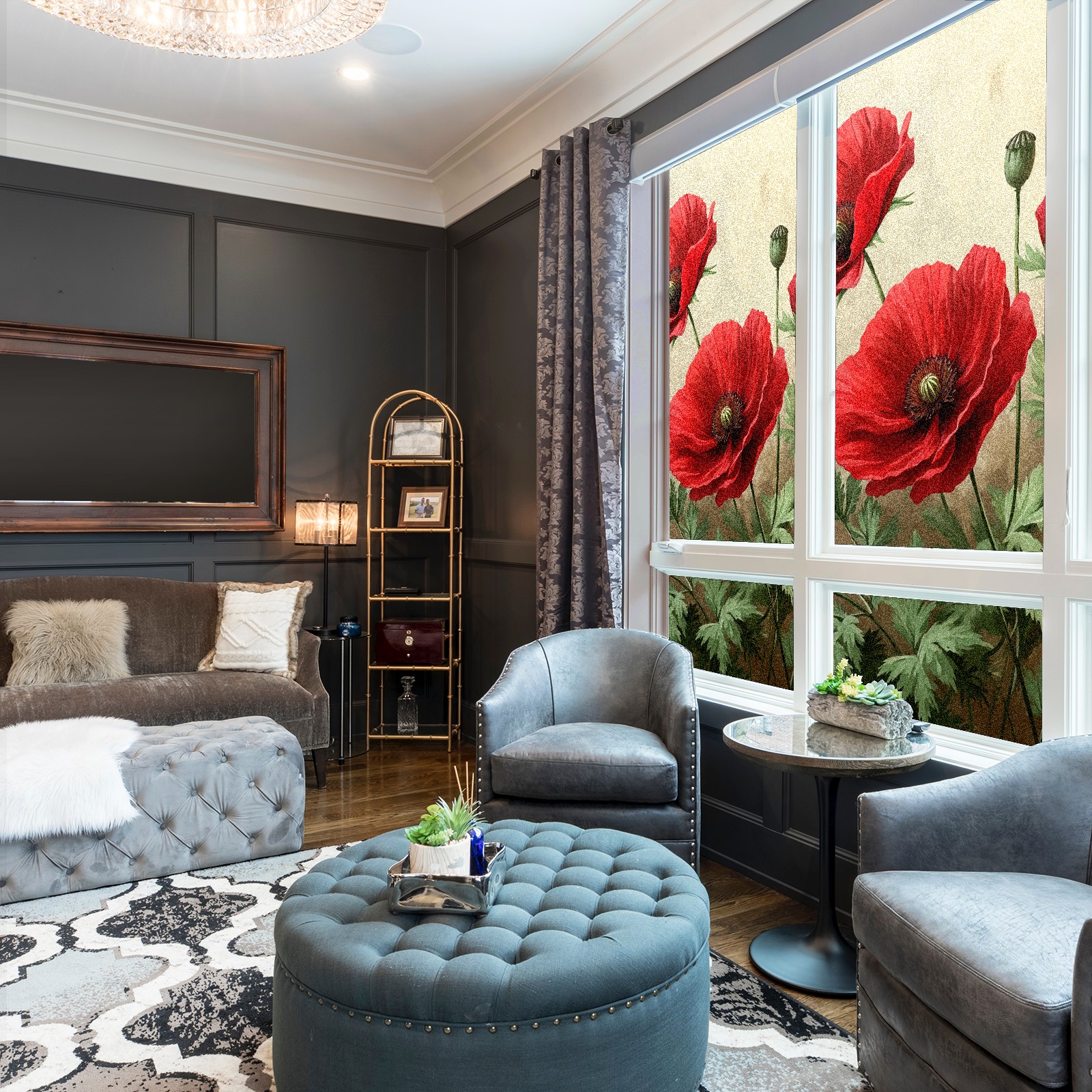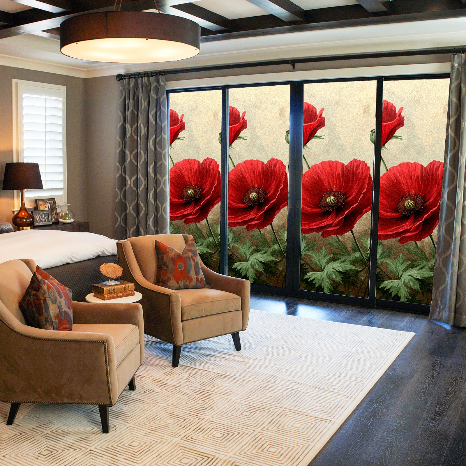 Static Cling Decorative Window Film Frosted Privacy Film Window Clings for Glass Windows No Glue Window Sticker for Bathroom Bedroom Office Bouquets D