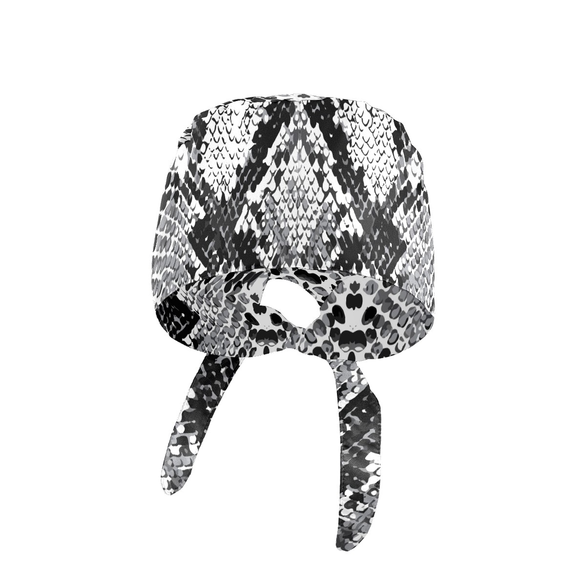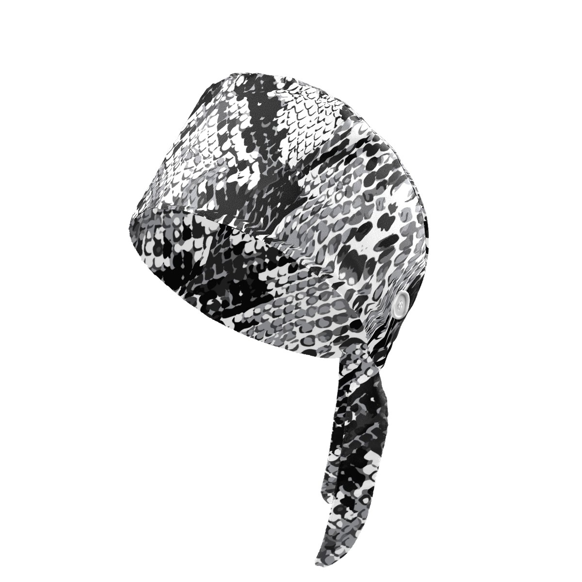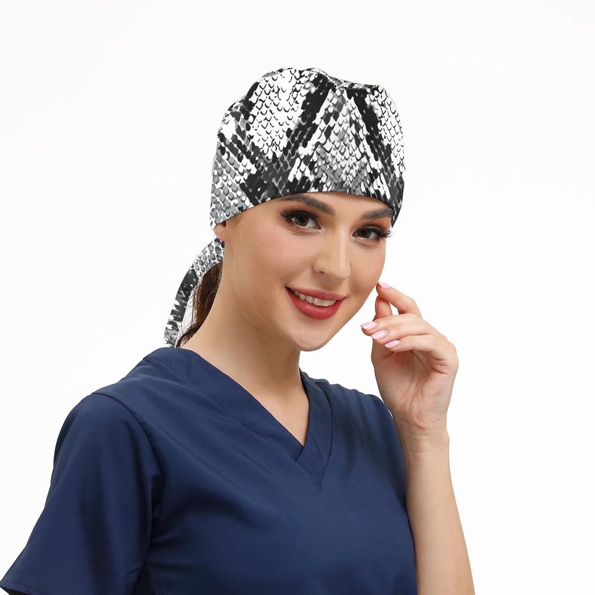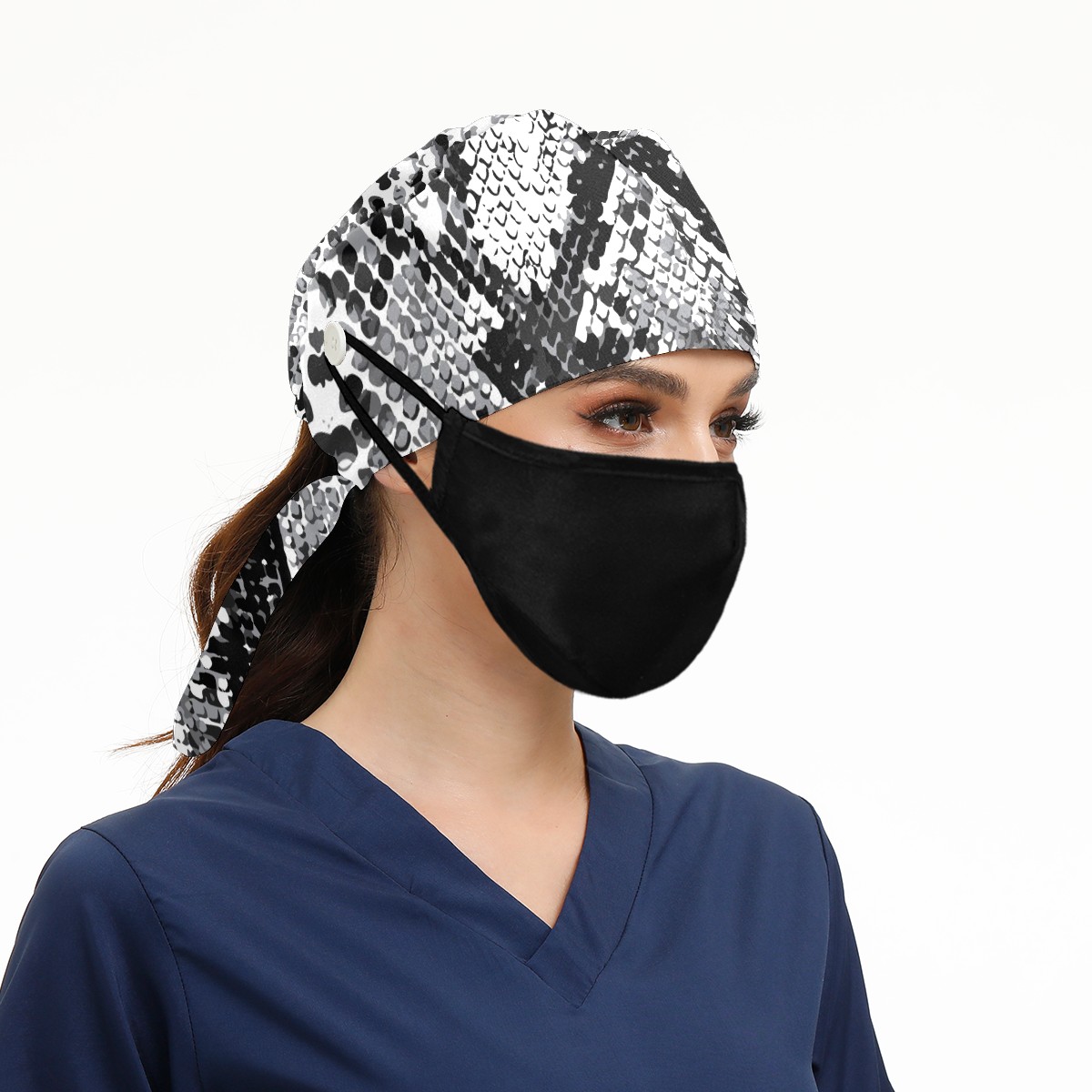 Working Caps with Button & Sweatband Satin Lined Cotton Adjustable Nurse Hats Elastic Band Scrub Cap Surgeon Hat White Snake Skin
