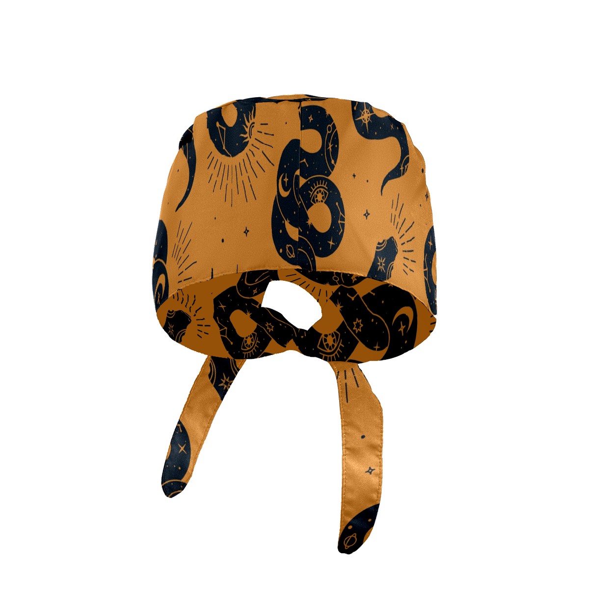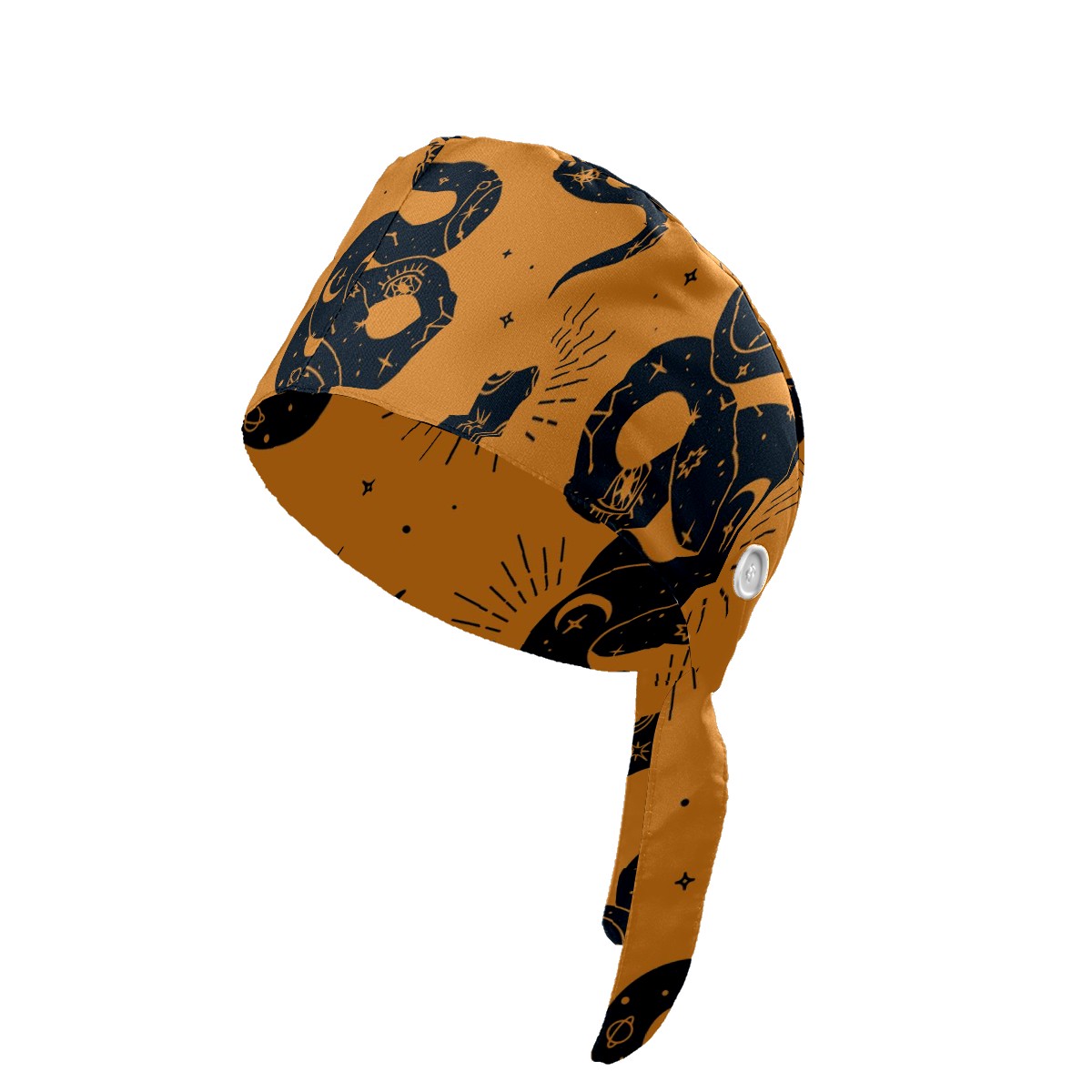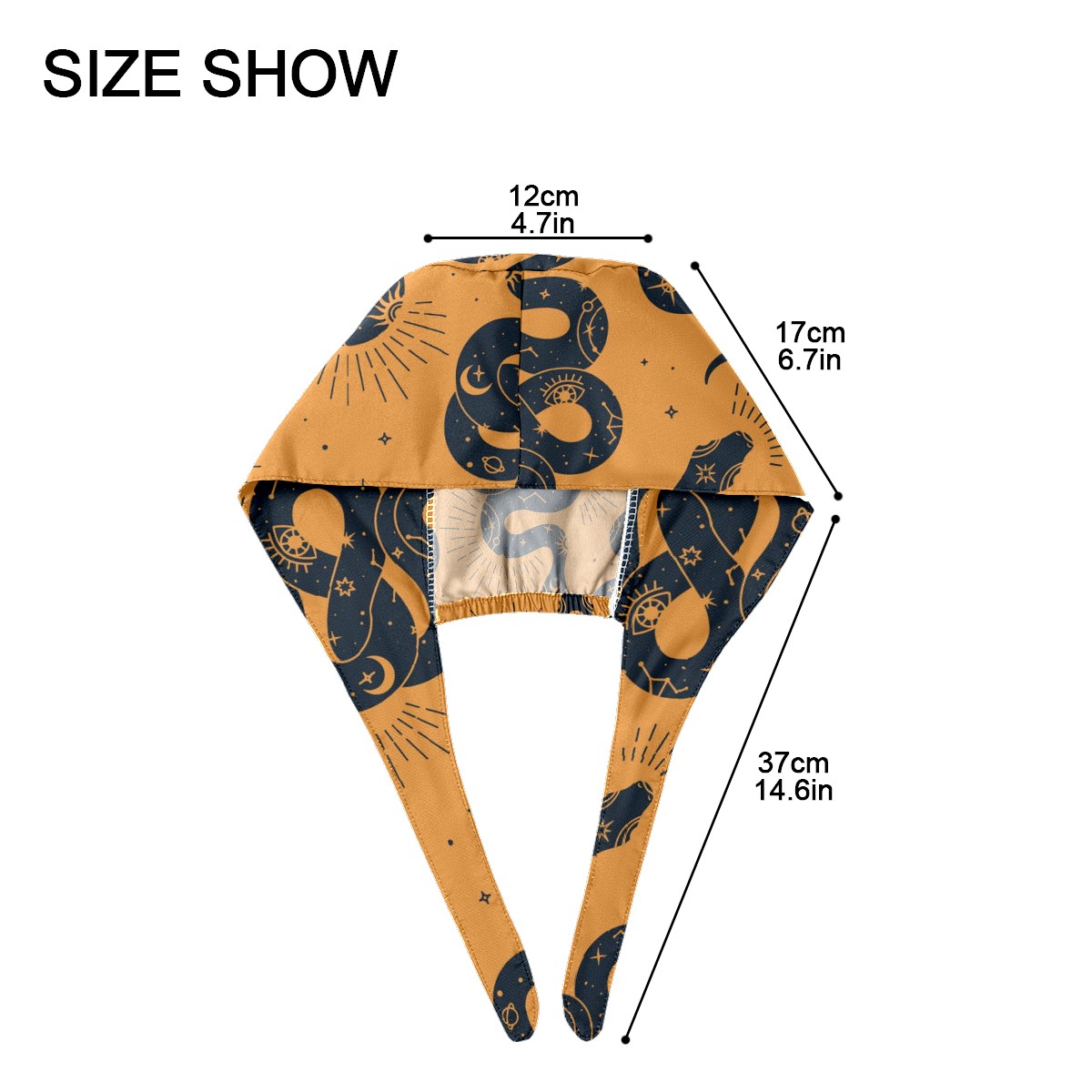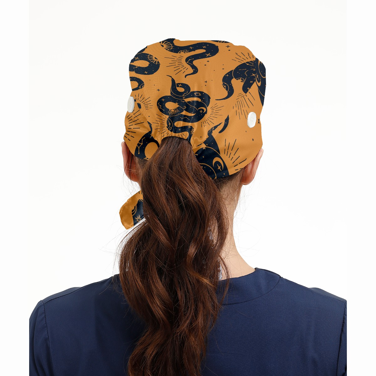 Working Caps with Button & Sweatband Satin Lined Cotton Adjustable Nurse Hats Elastic Band Scrub Cap Surgeon Hat Magic Astrology Snake Sun Moon Eyes