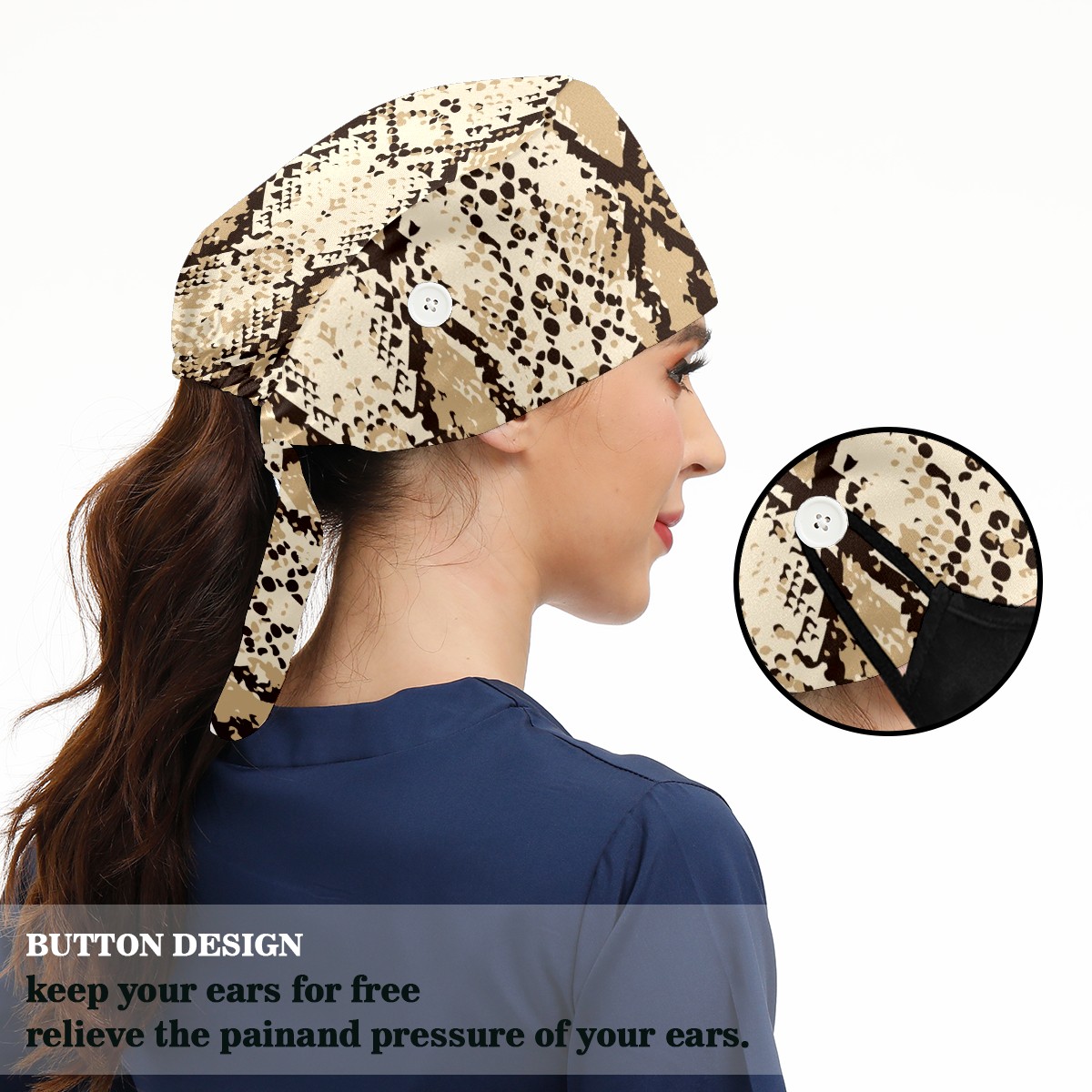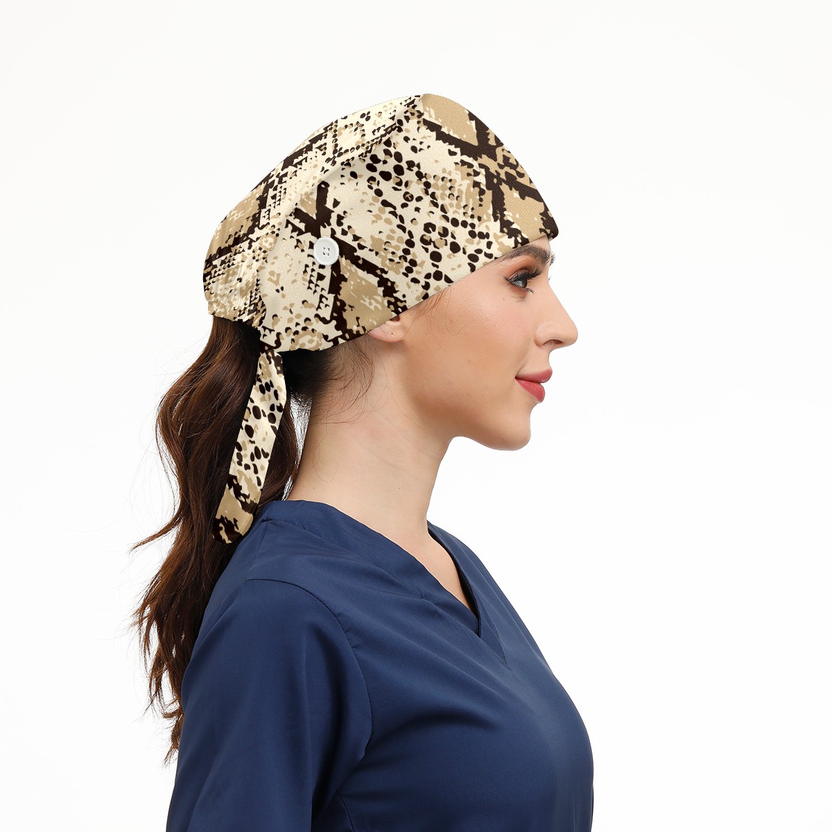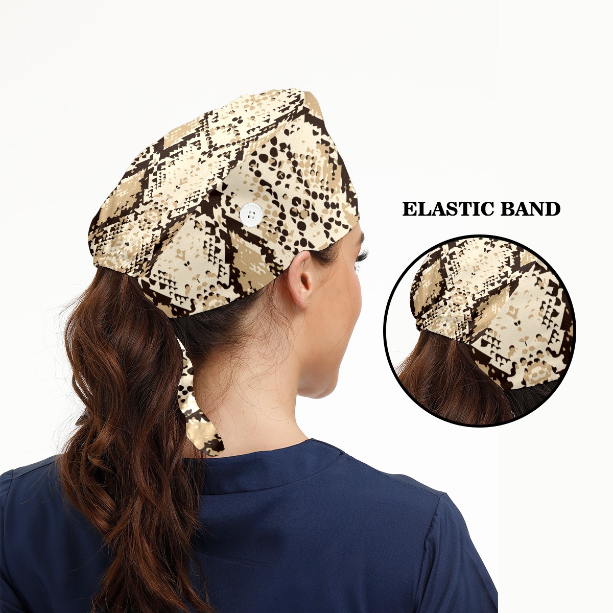 Working Caps with Button & Sweatband Satin Lined Cotton Adjustable Nurse Hats Elastic Band Scrub Cap Surgeon Hat Fashion Snake Skin Print