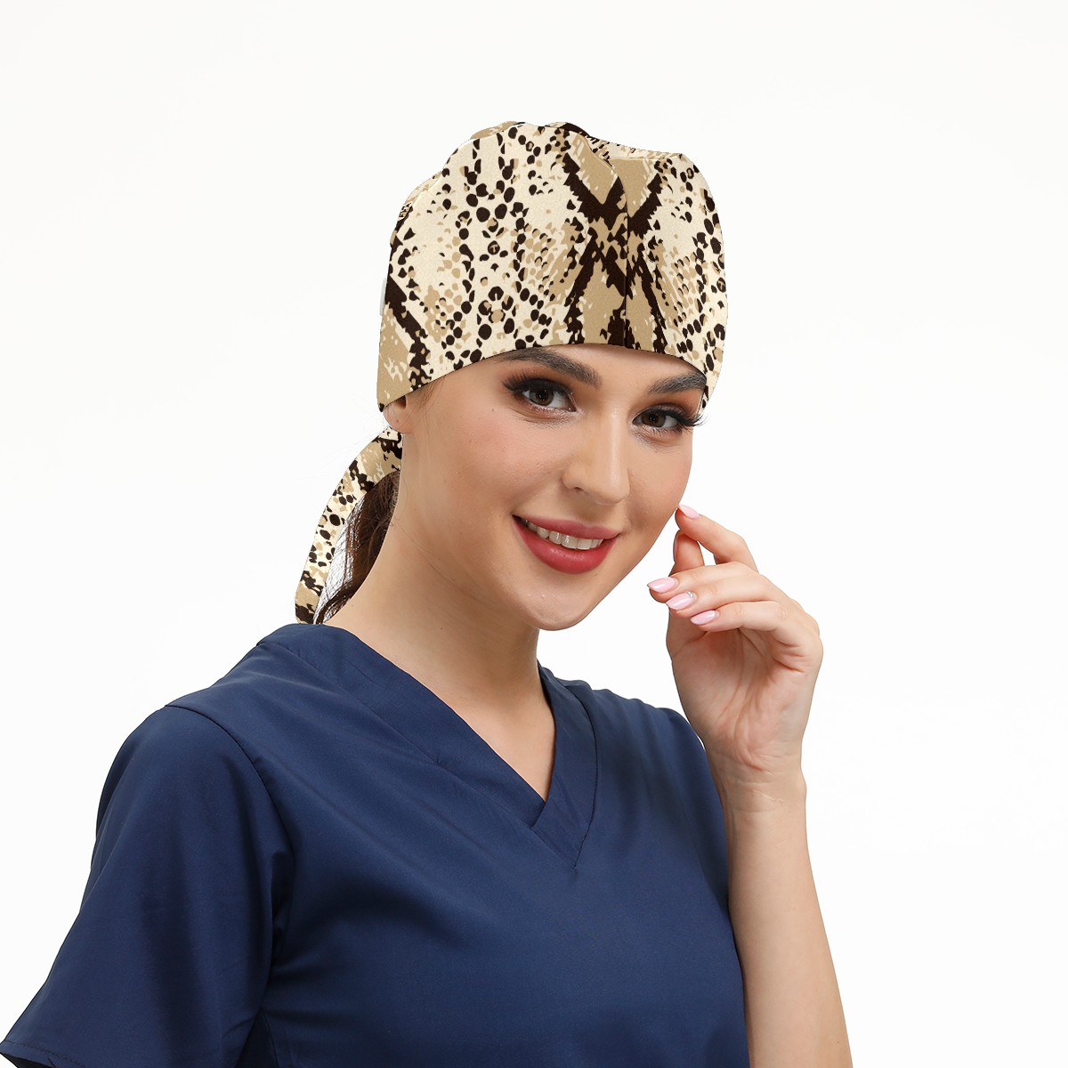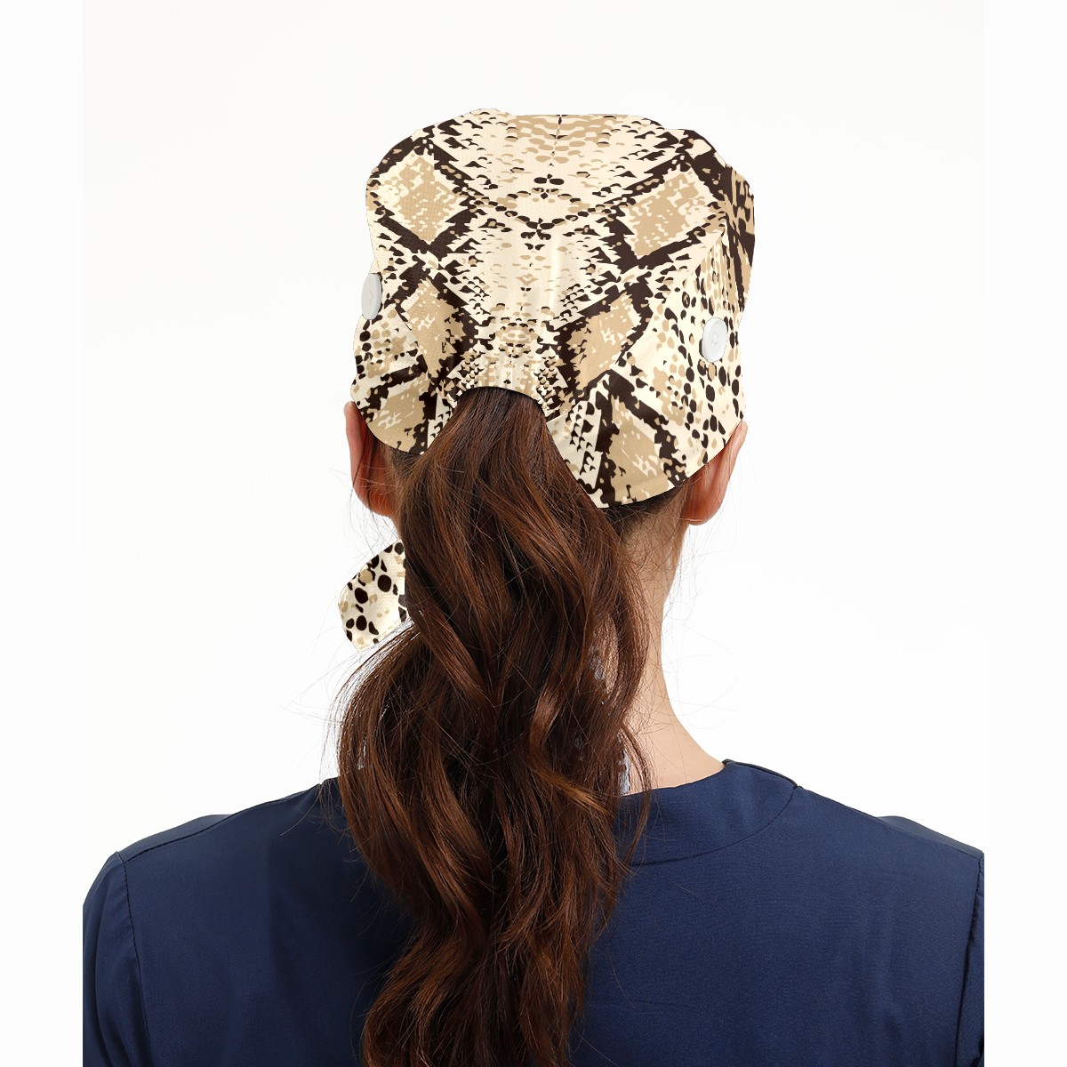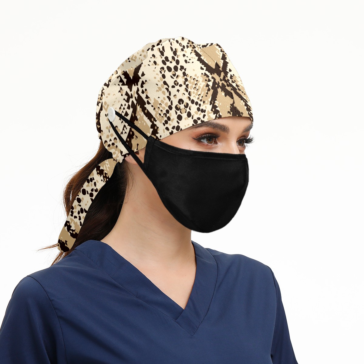 Working Caps with Button & Sweatband Satin Lined Cotton Adjustable Nurse Hats Elastic Band Scrub Cap Surgeon Hat Fashion Snake Skin Print