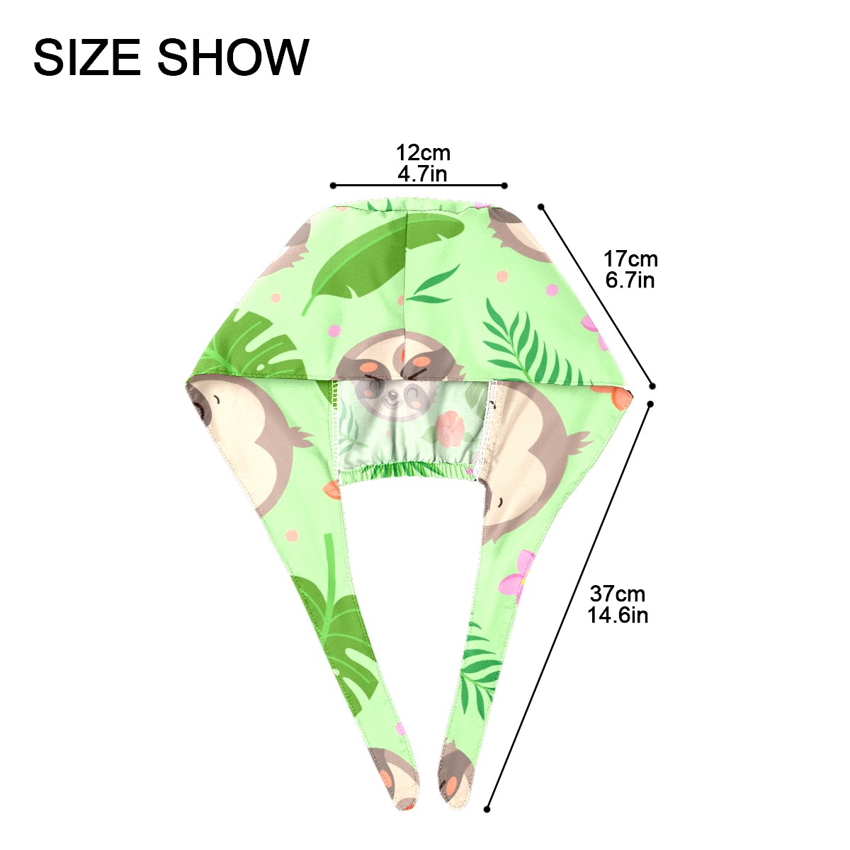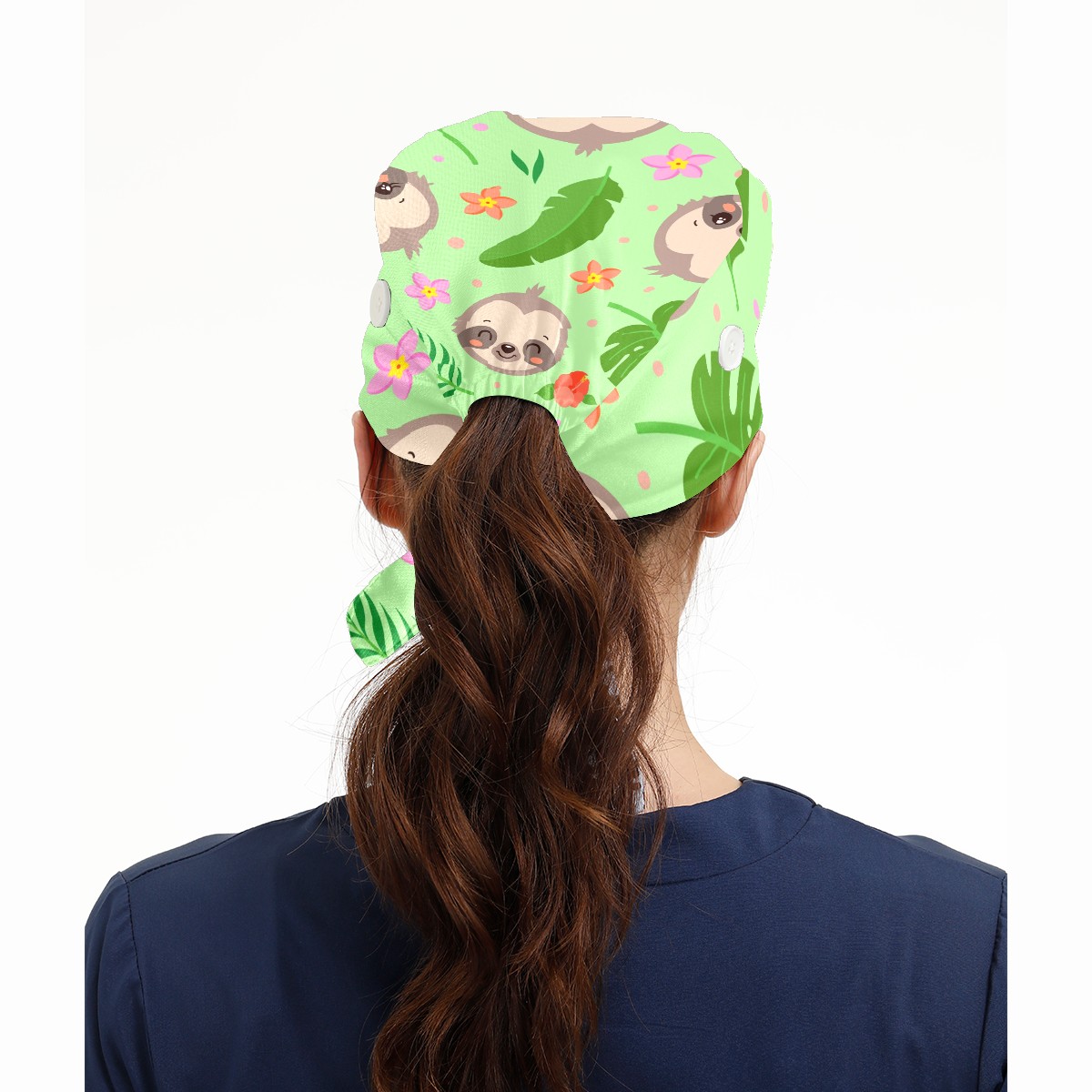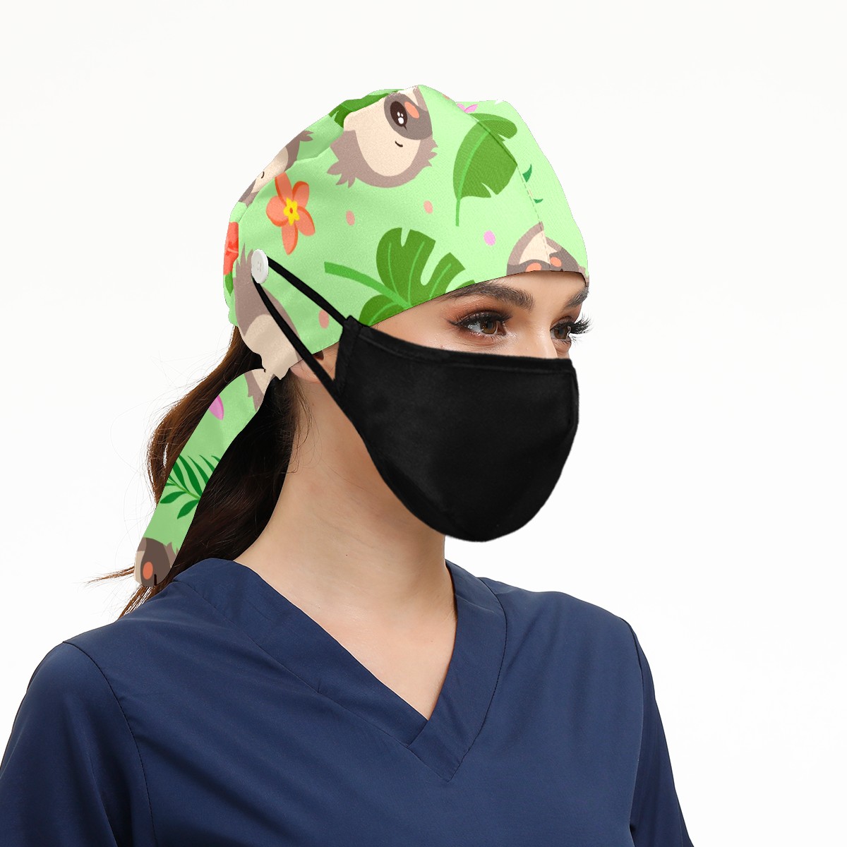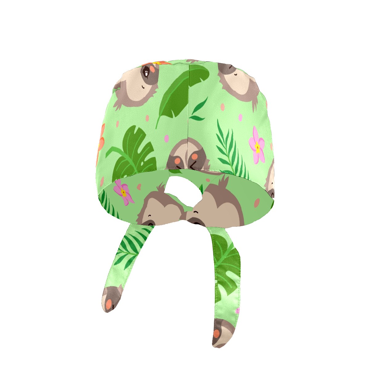 Working Caps with Button & Sweatband Satin Lined Cotton Adjustable Nurse Hats Elastic Band Scrub Cap Surgeon Hat Cute Sloth Tropical Palm Leaves