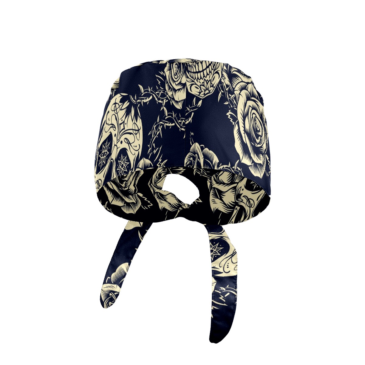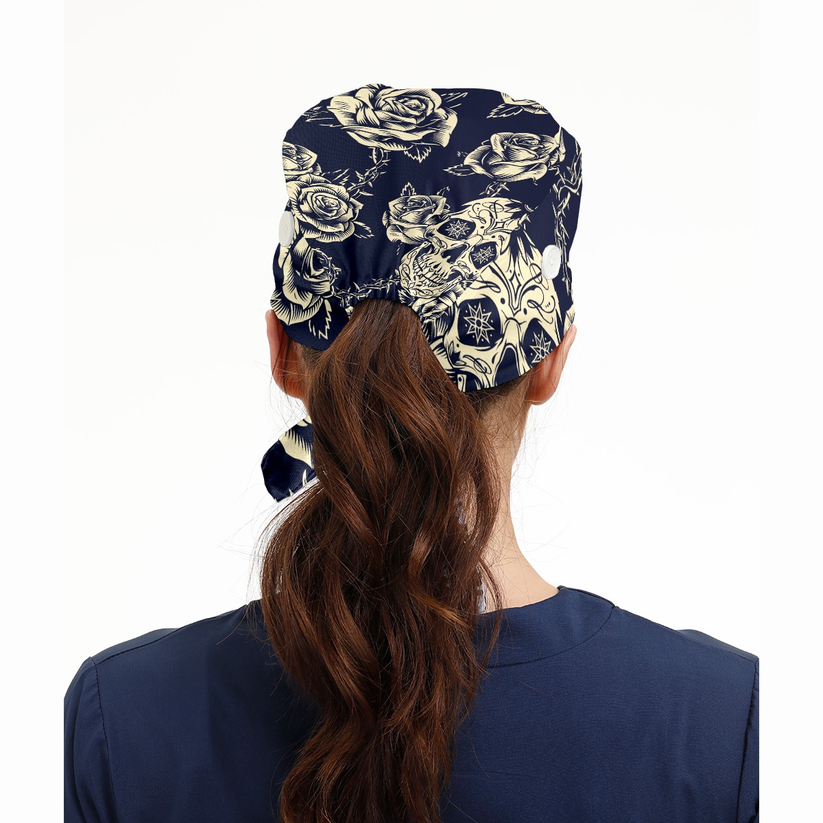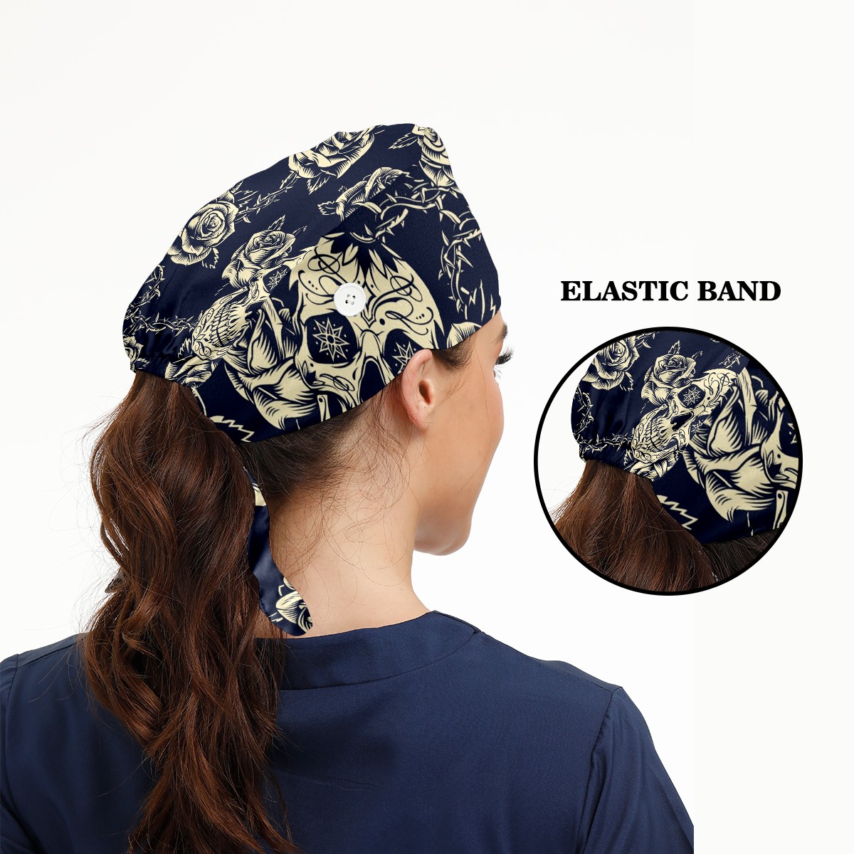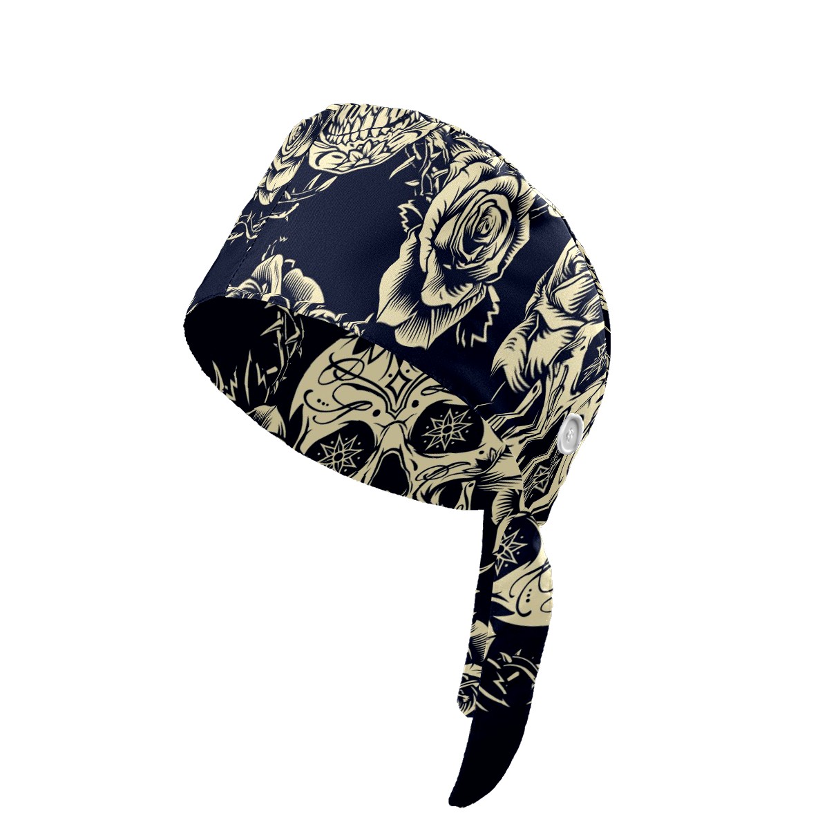 Working Caps with Button & Sweatband Satin Lined Cotton Adjustable Nurse Hats Elastic Band Scrub Cap Surgeon Hat Vintage Skulls Roses