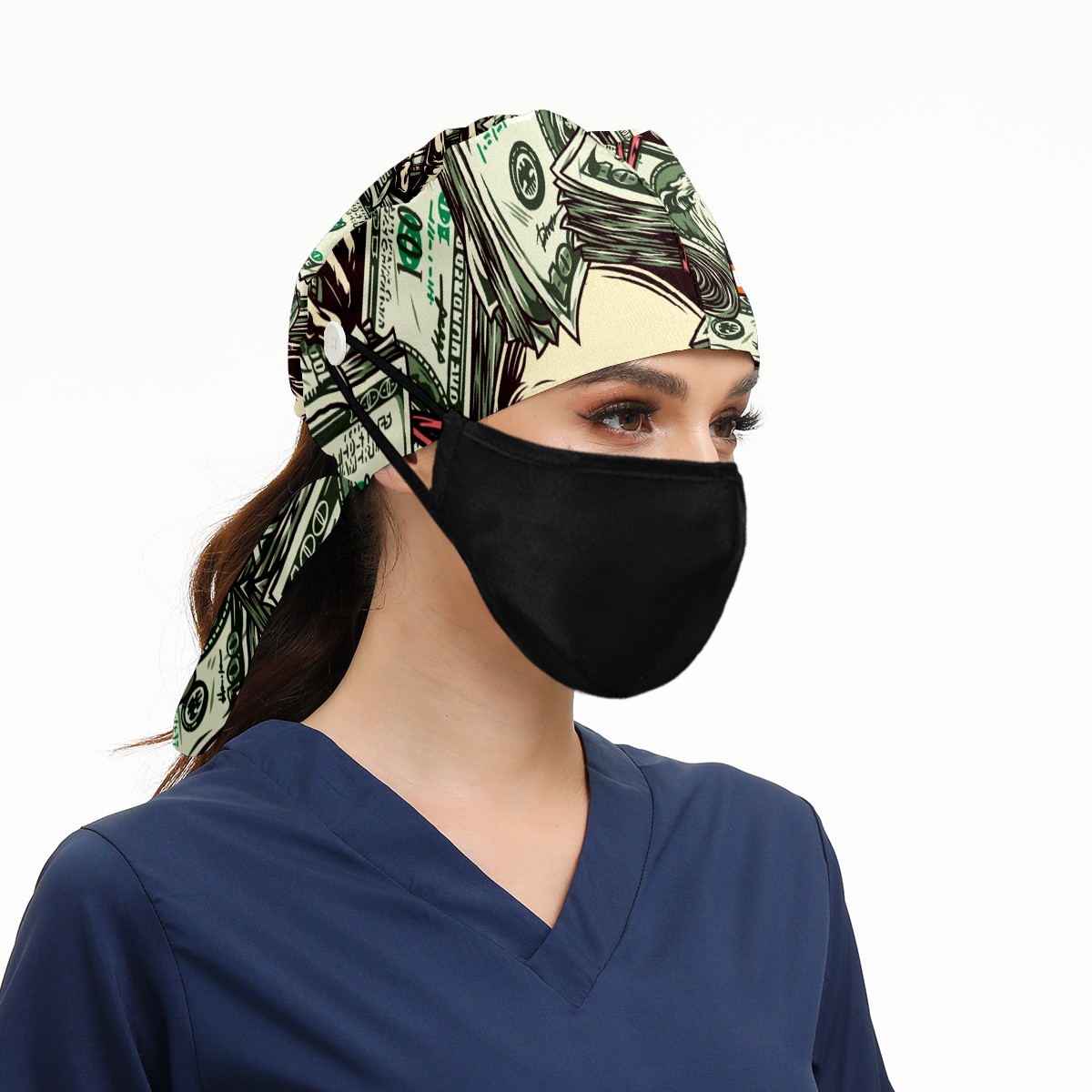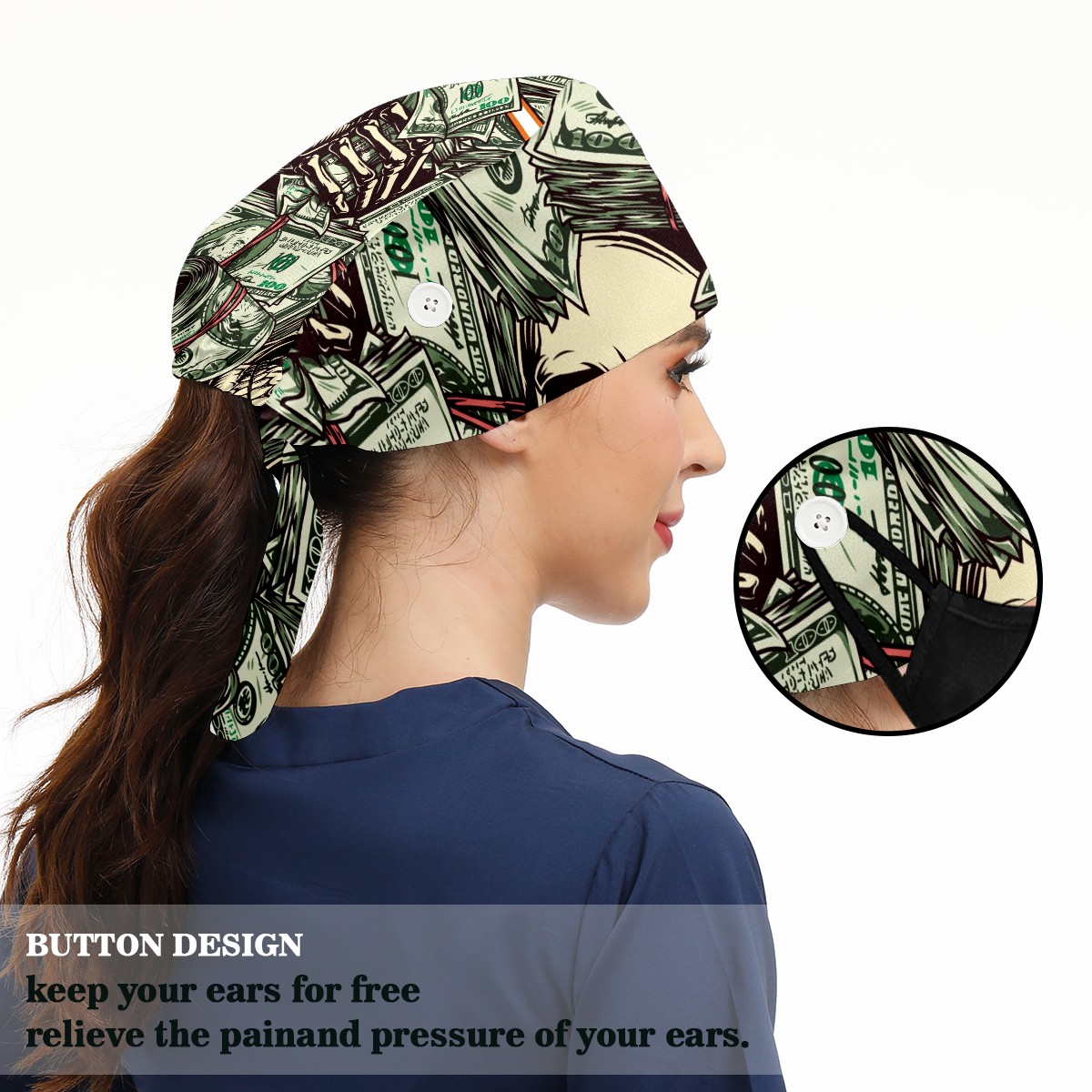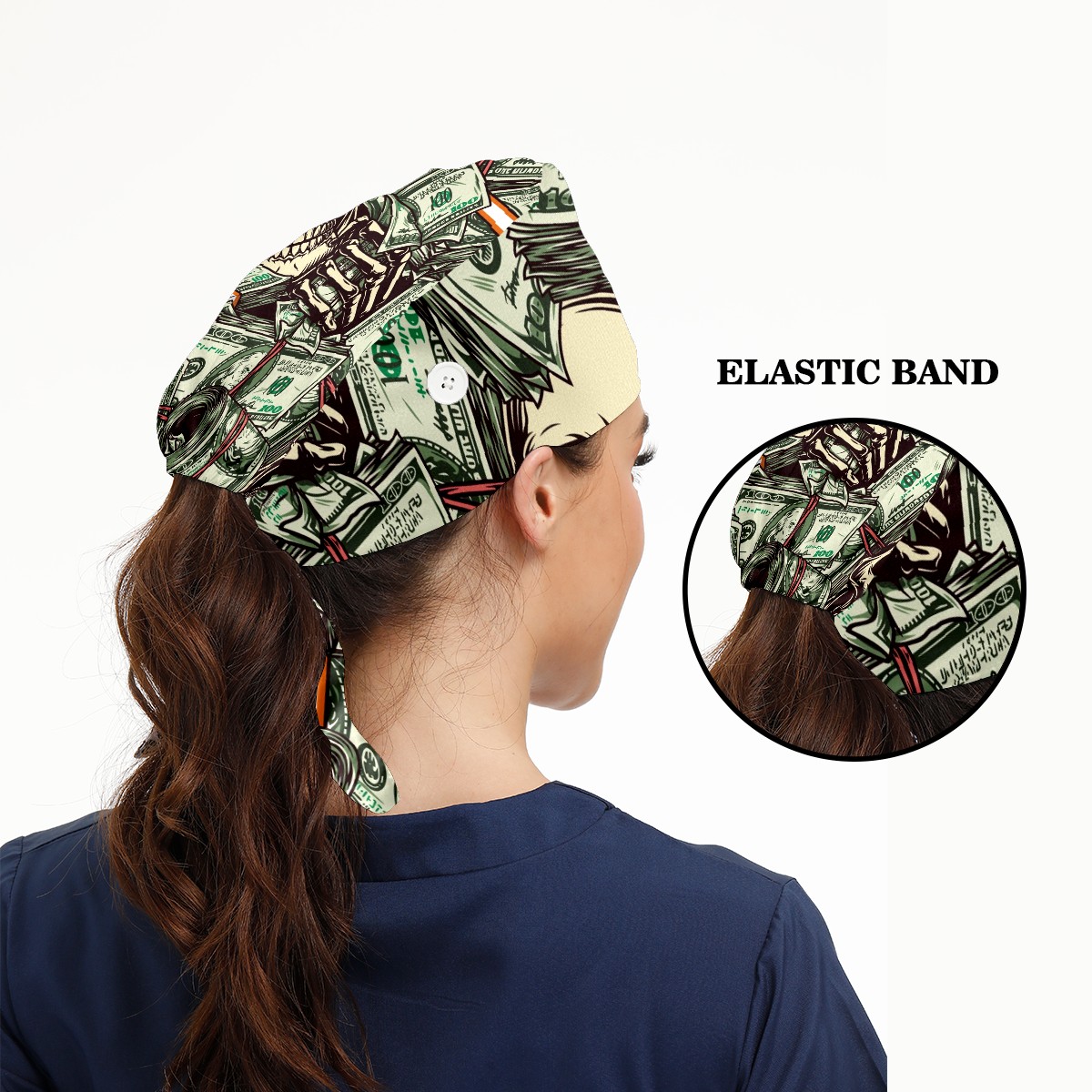 Working Caps with Button & Sweatband Satin Lined Cotton Adjustable Nurse Hats Elastic Band Scrub Cap Surgeon Hat Vintage Money Skull Skeleton