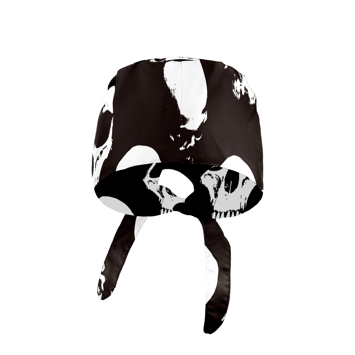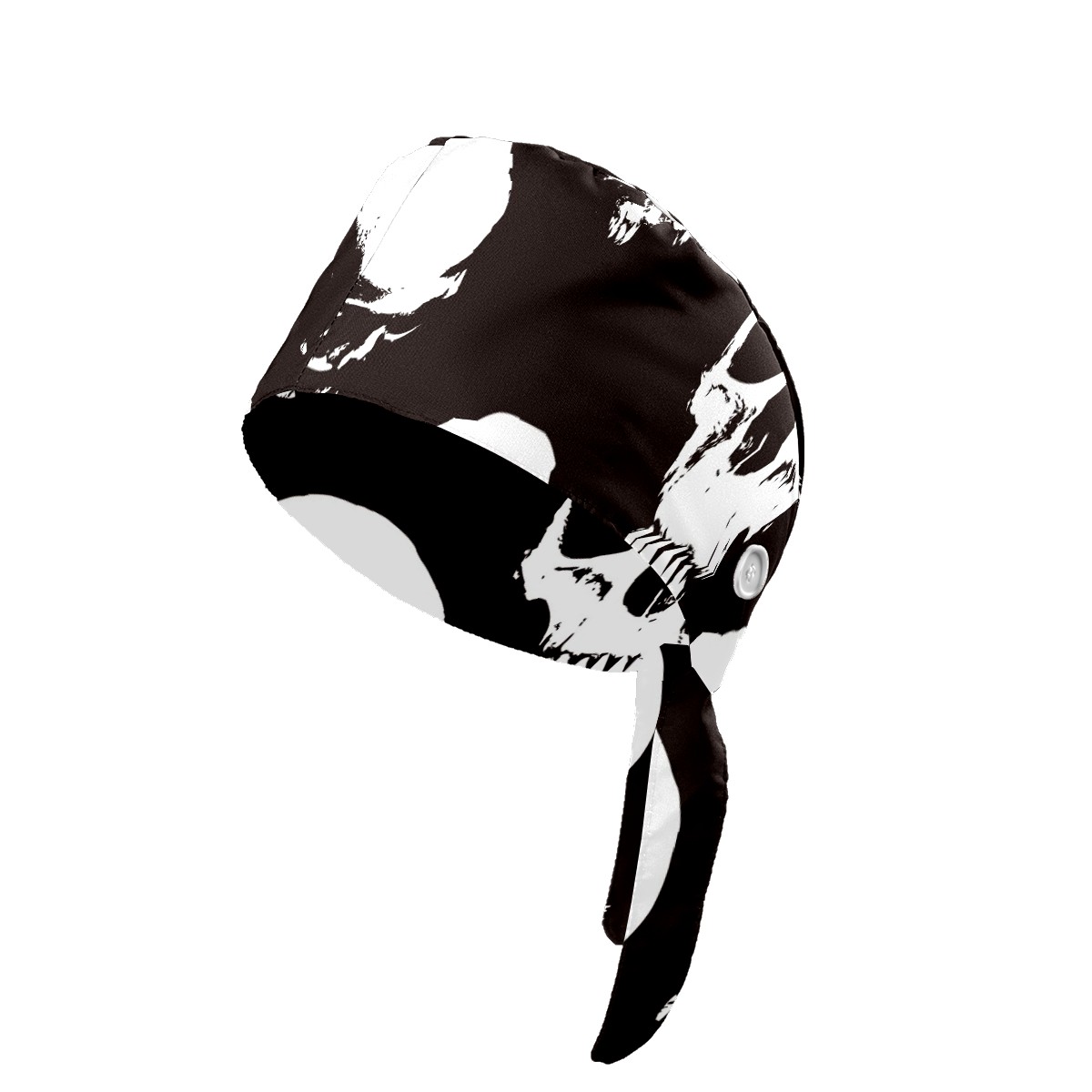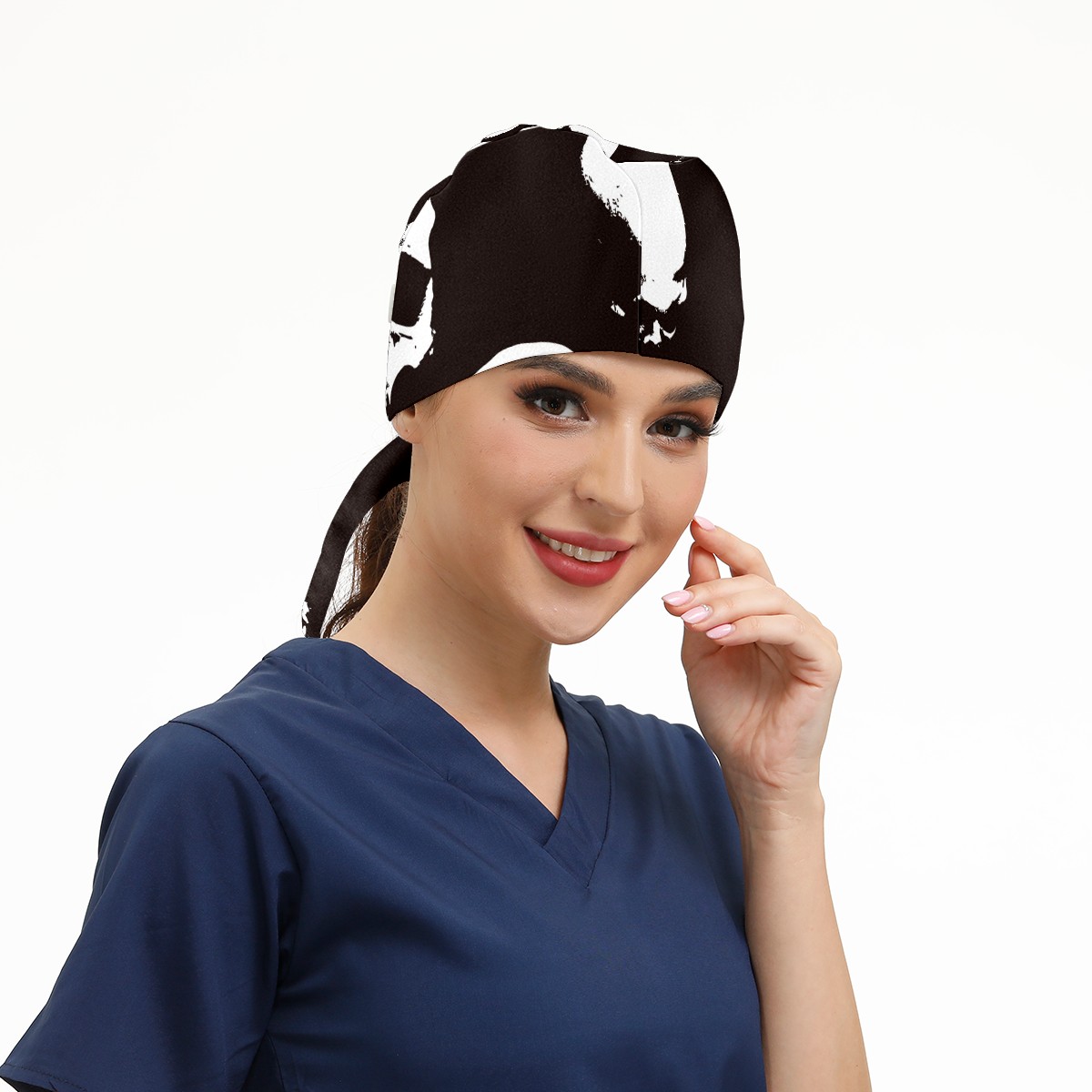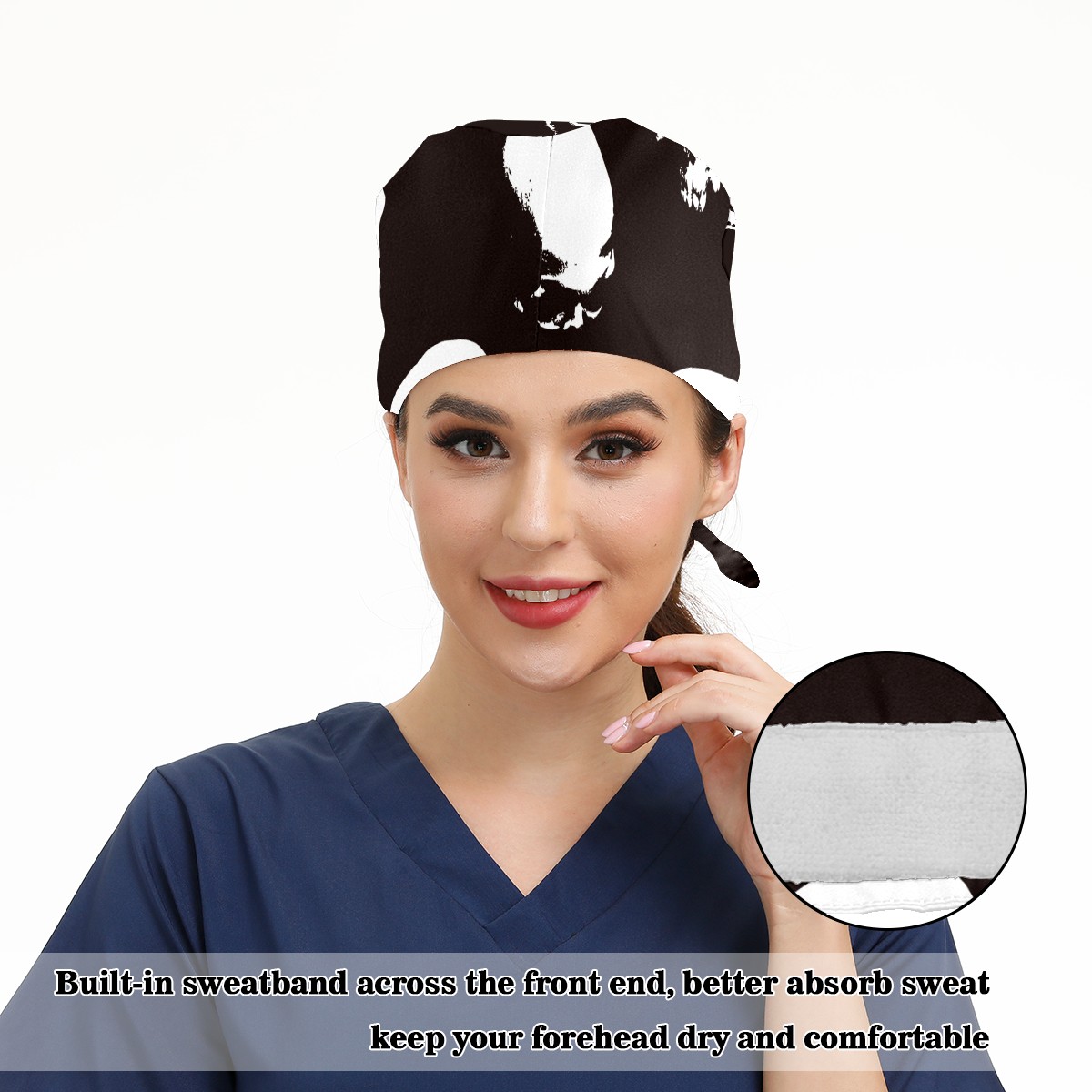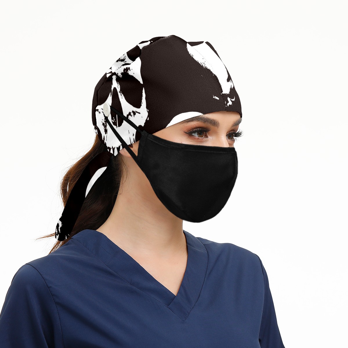Working Caps with Button & Sweatband Satin Lined Cotton Adjustable Nurse Hats Elastic Band Scrub Cap Surgeon Hat Smiling Skulls In Retro Style