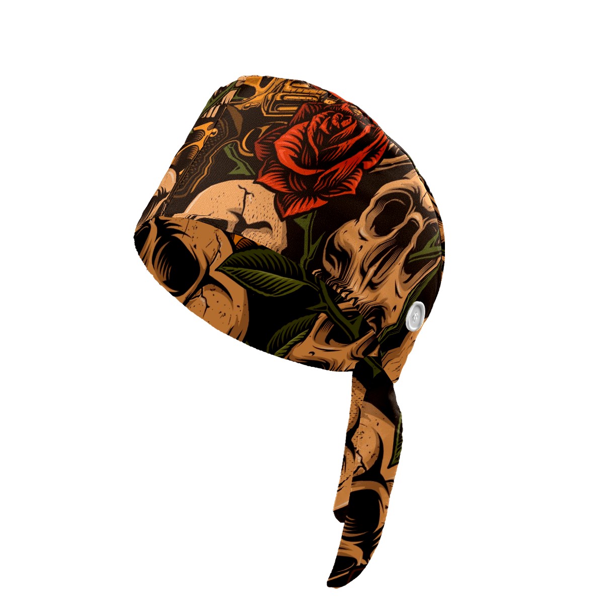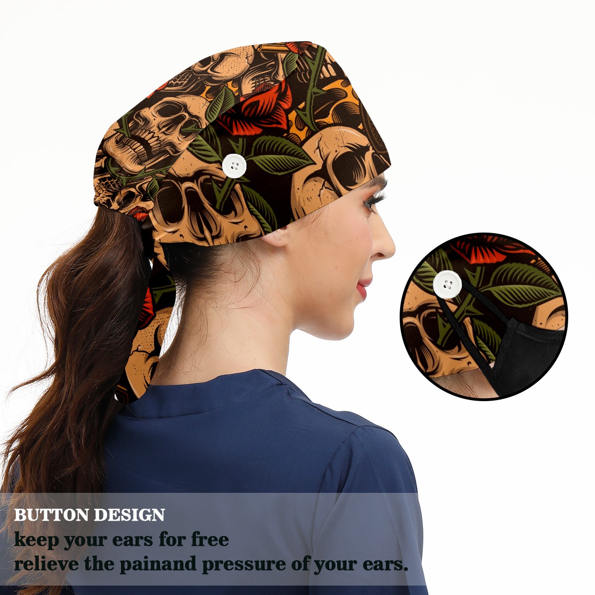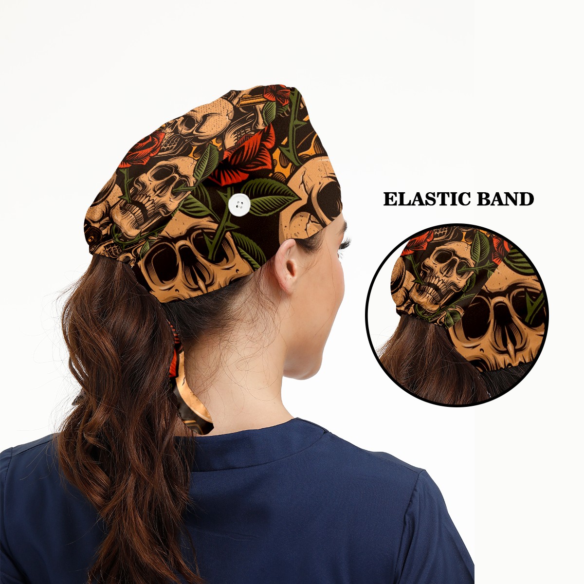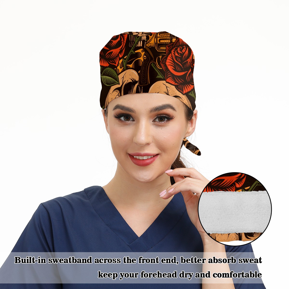 Working Caps with Button & Sweatband Satin Lined Cotton Adjustable Nurse Hats Elastic Band Scrub Cap Surgeon Hat Skulls With Guns And Roses