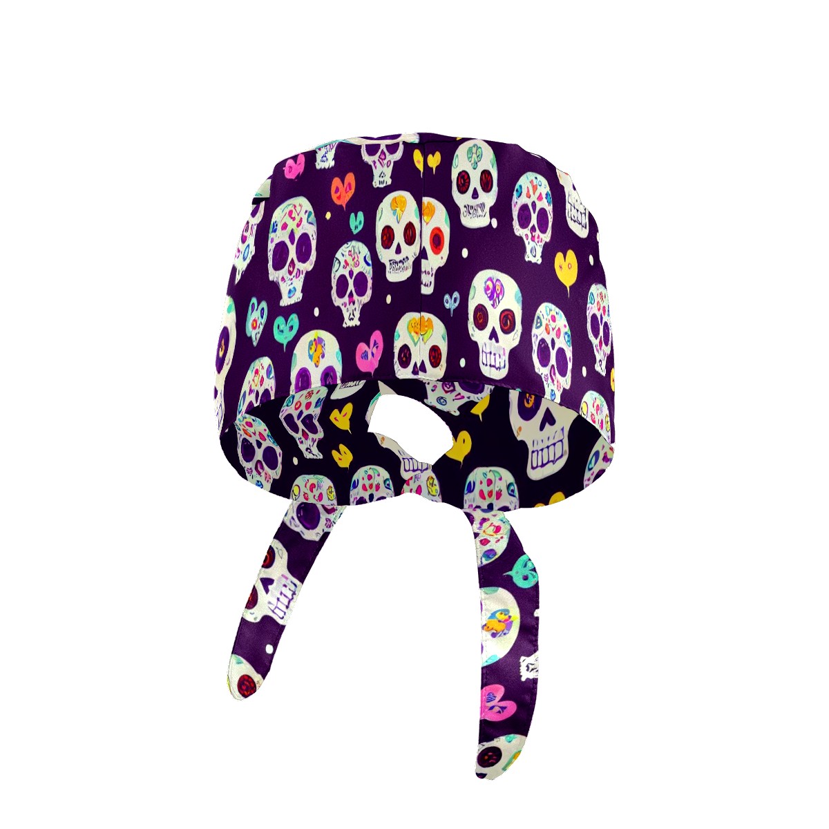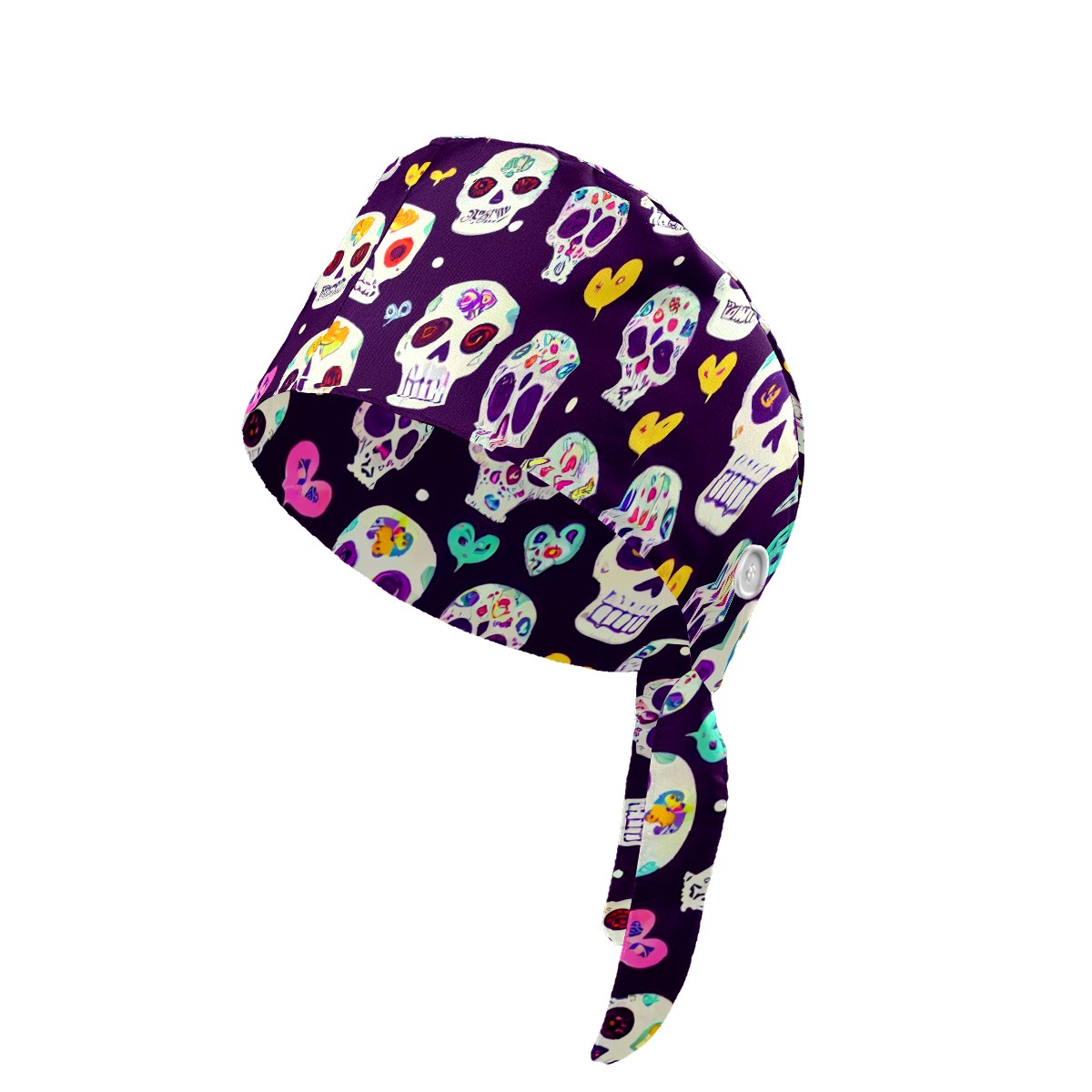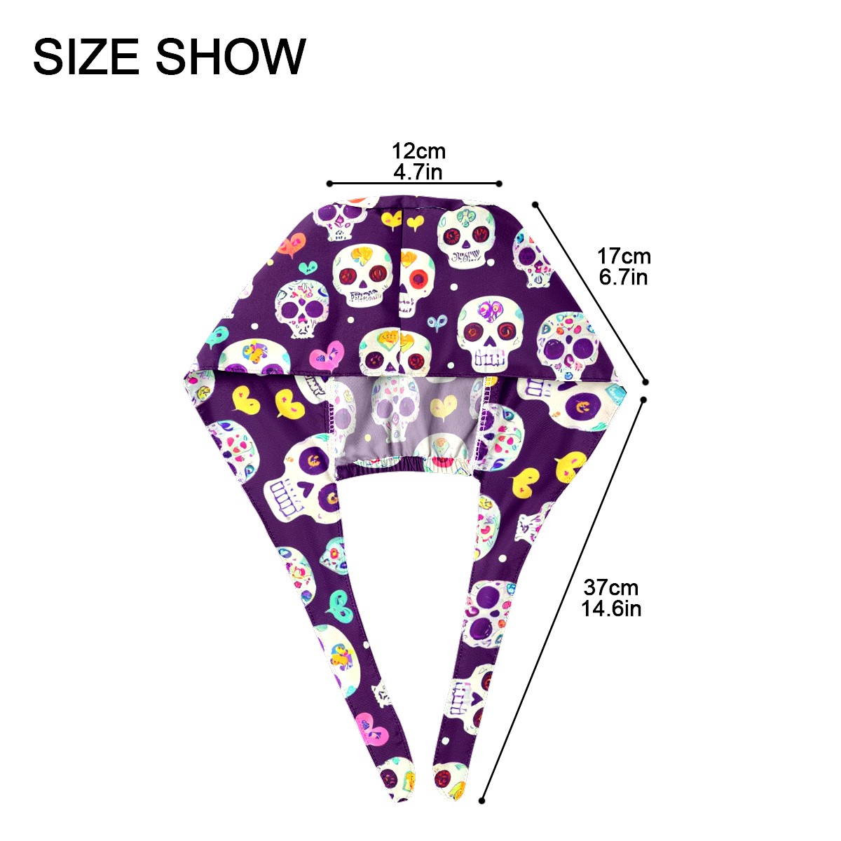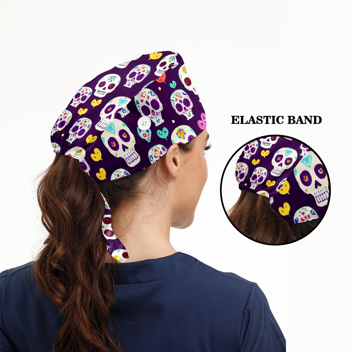 Working Caps with Button & Sweatband Satin Lined Cotton Adjustable Nurse Hats Elastic Band Scrub Cap Surgeon Hat Skull And Flowers Graffiti