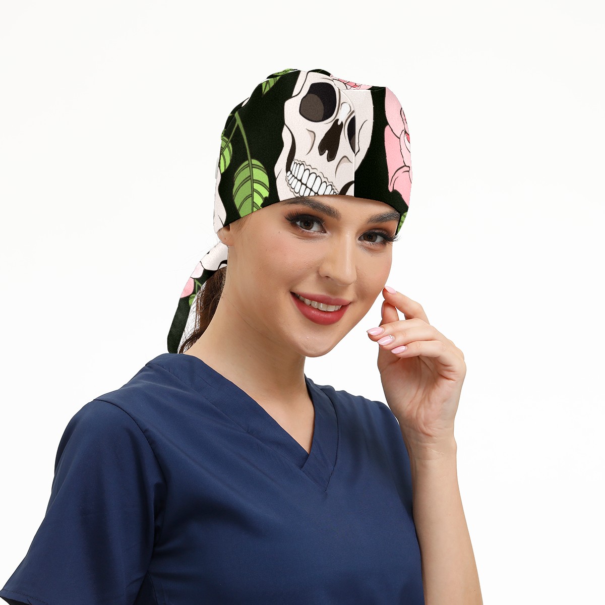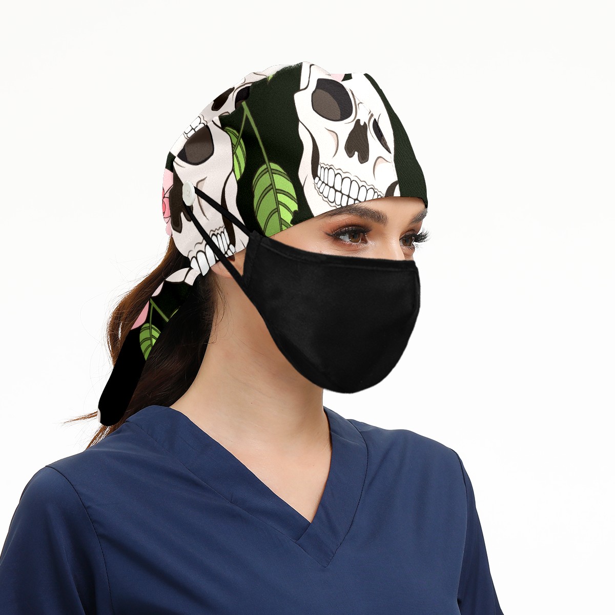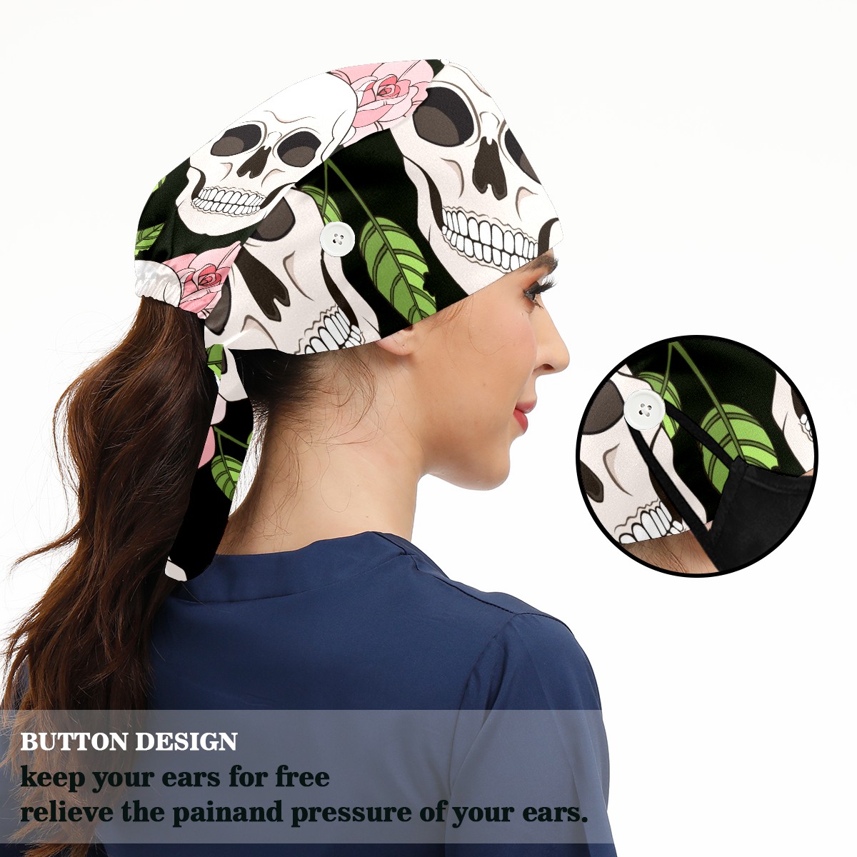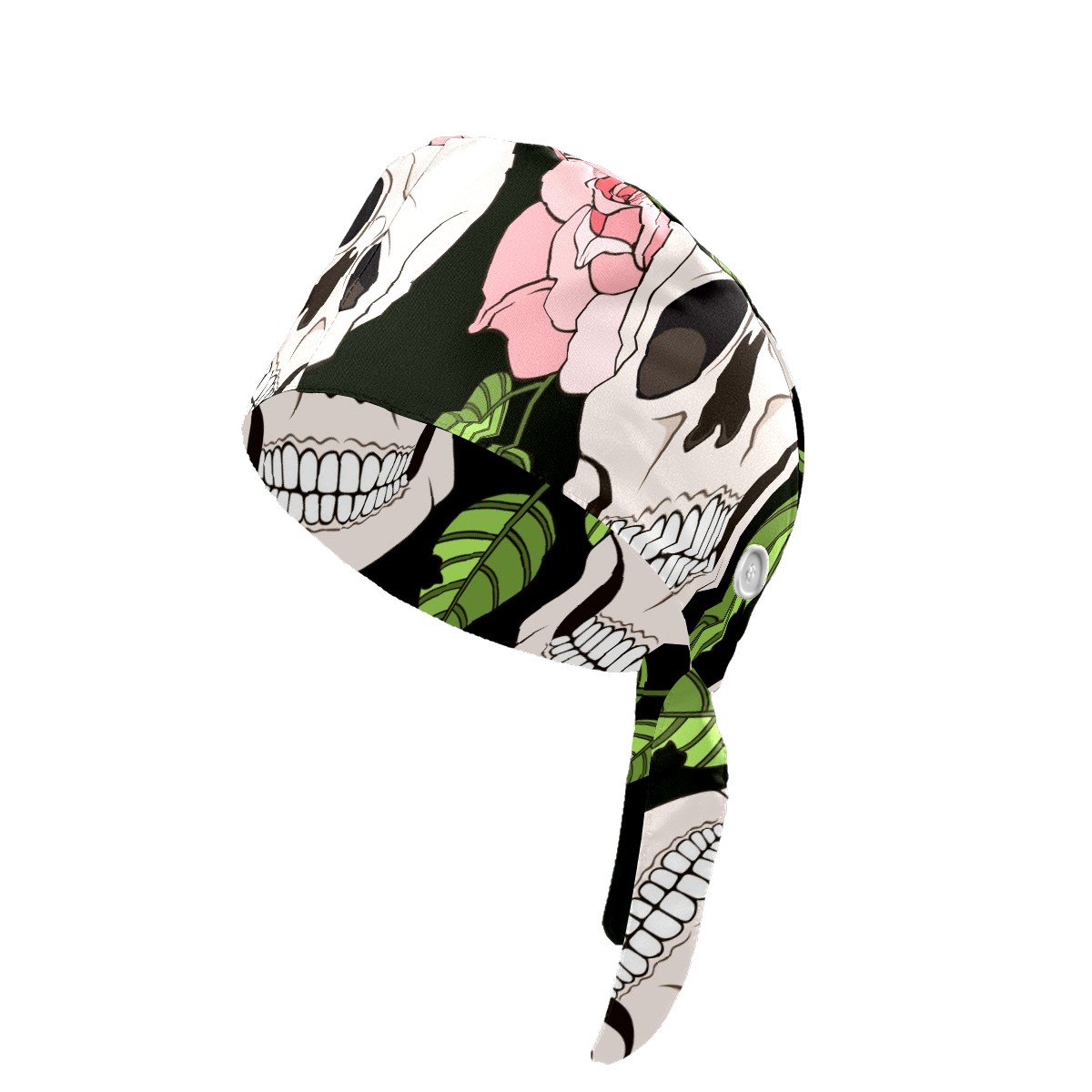 Working Caps with Button & Sweatband Satin Lined Cotton Adjustable Nurse Hats Elastic Band Scrub Cap Surgeon Hat Gothic Roses And Skulls