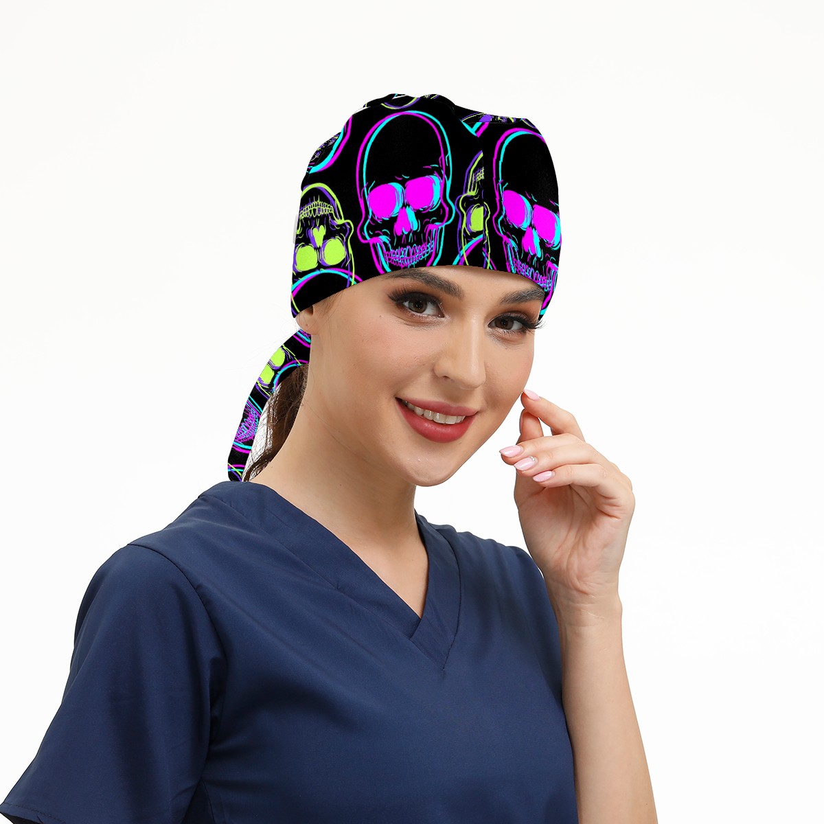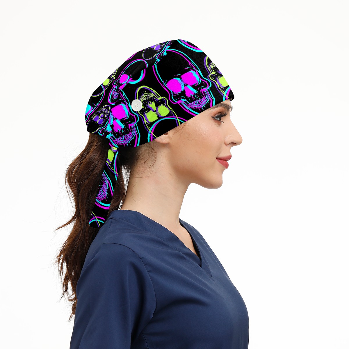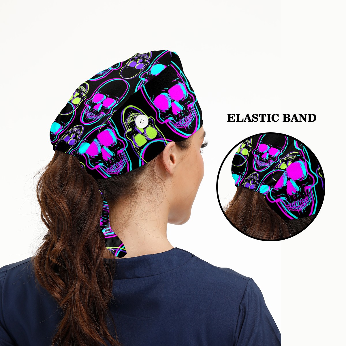 Working Caps with Button & Sweatband Satin Lined Cotton Adjustable Nurse Hats Elastic Band Scrub Cap Surgeon Hat Abstract Human Skull On Black Background