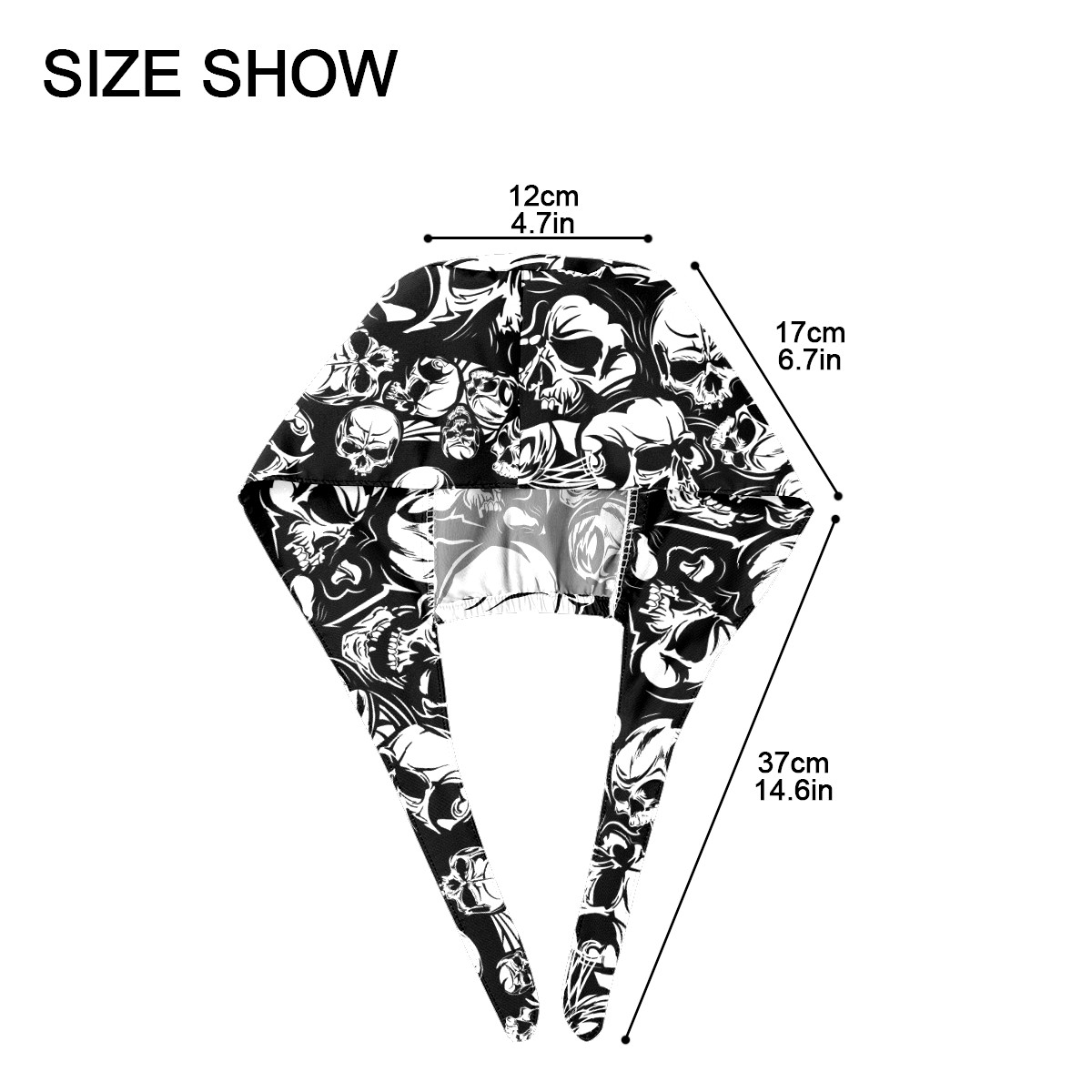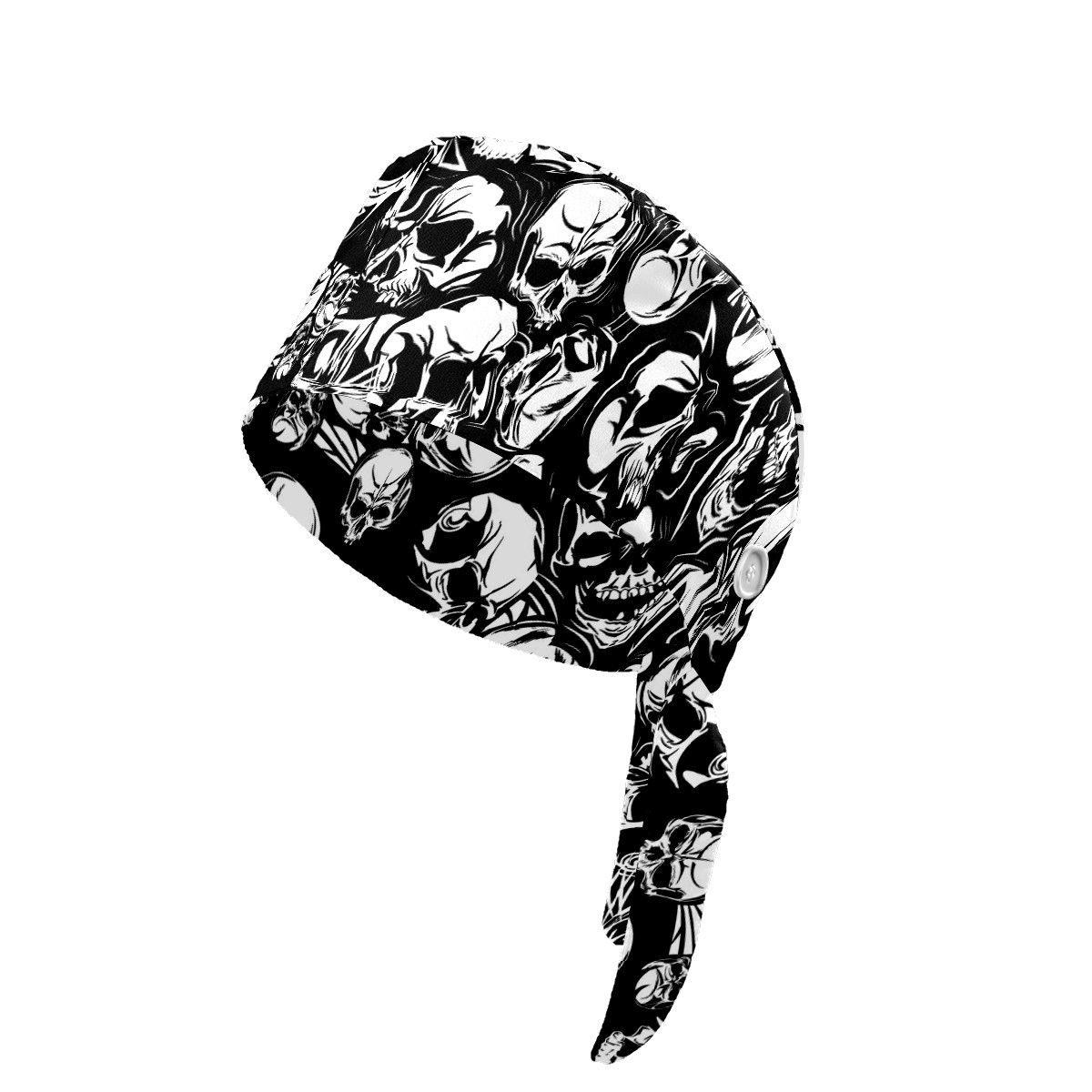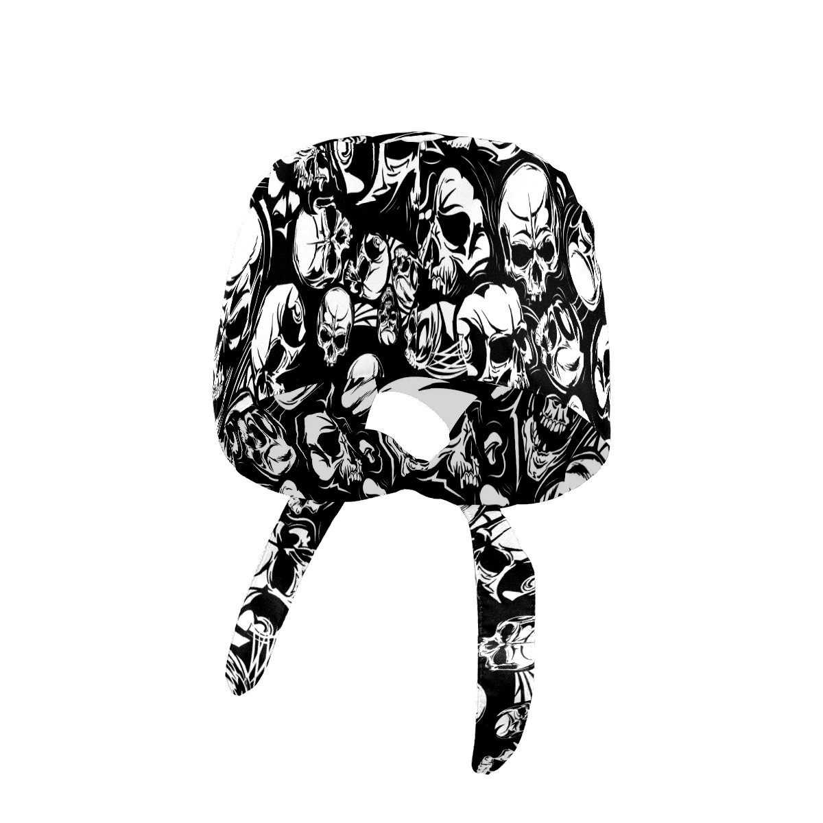 Working Caps with Button & Sweatband Satin Lined Cotton Adjustable Nurse Hats Elastic Band Scrub Cap Surgeon Hat Black And White Skull