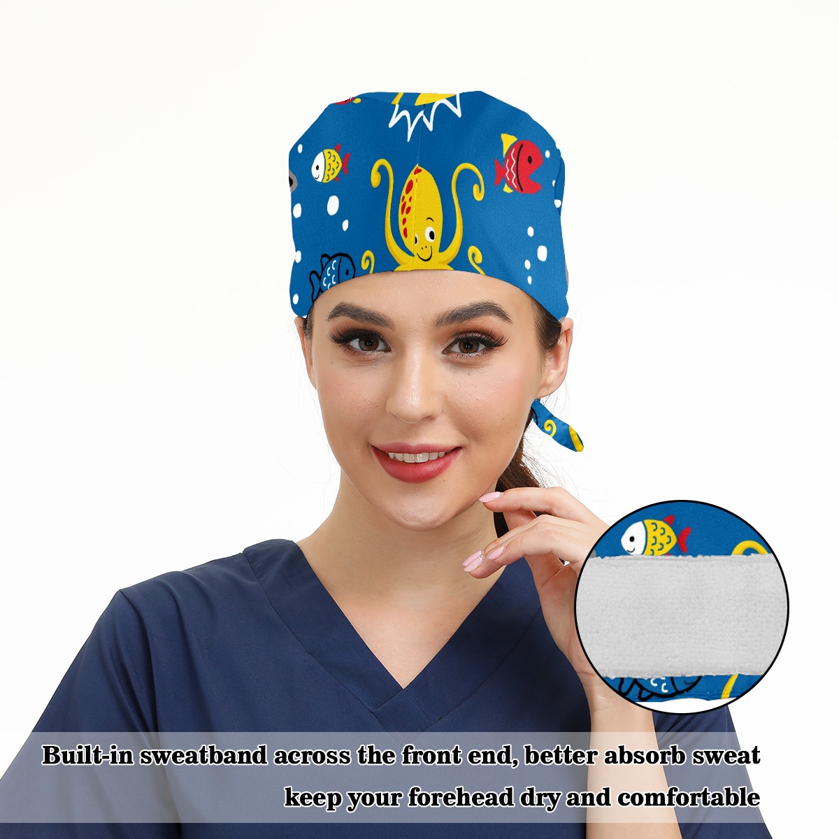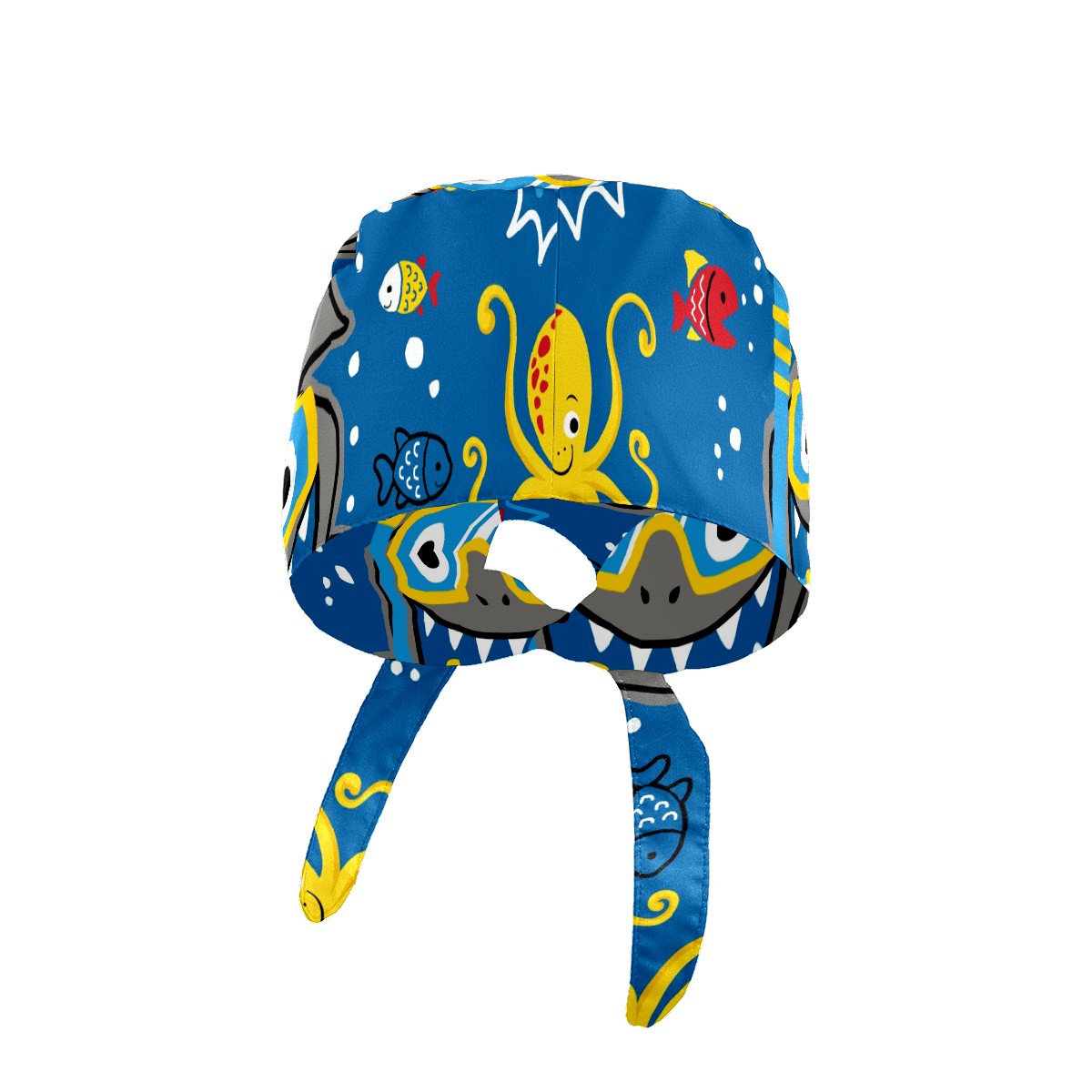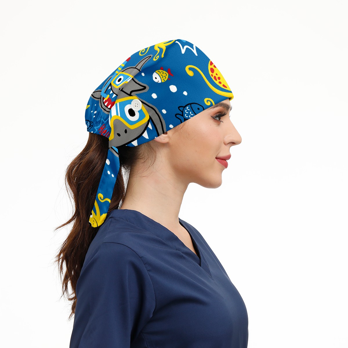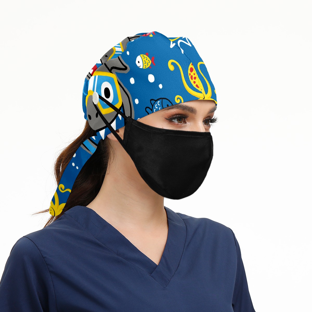 Working Caps with Button & Sweatband Satin Lined Cotton Adjustable Nurse Hats Elastic Band Scrub Cap Surgeon Hat Shark Wearing Diving Goggles