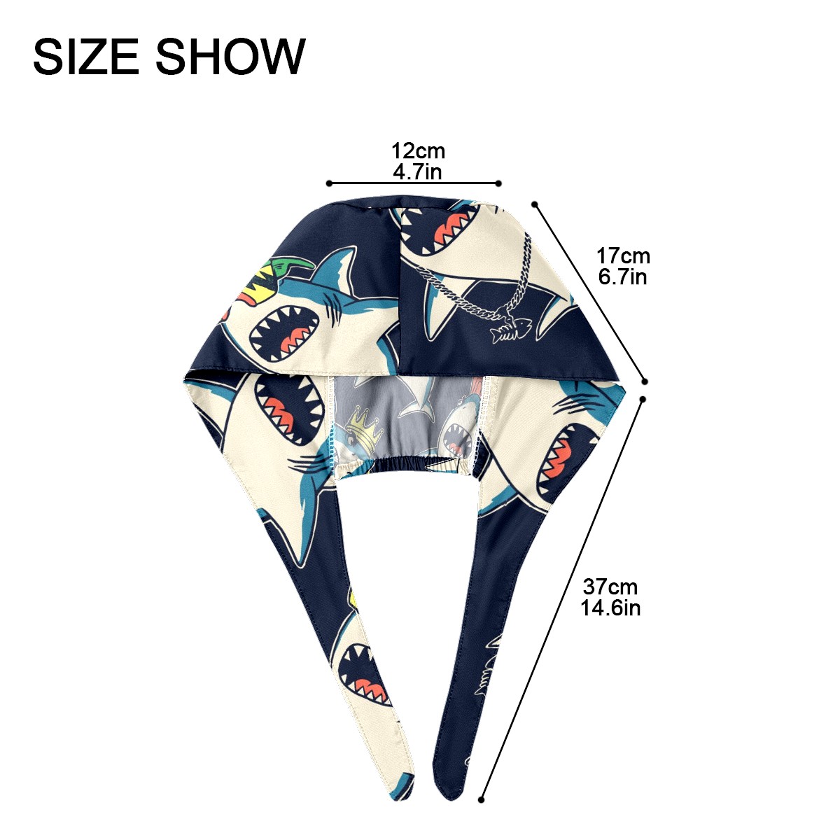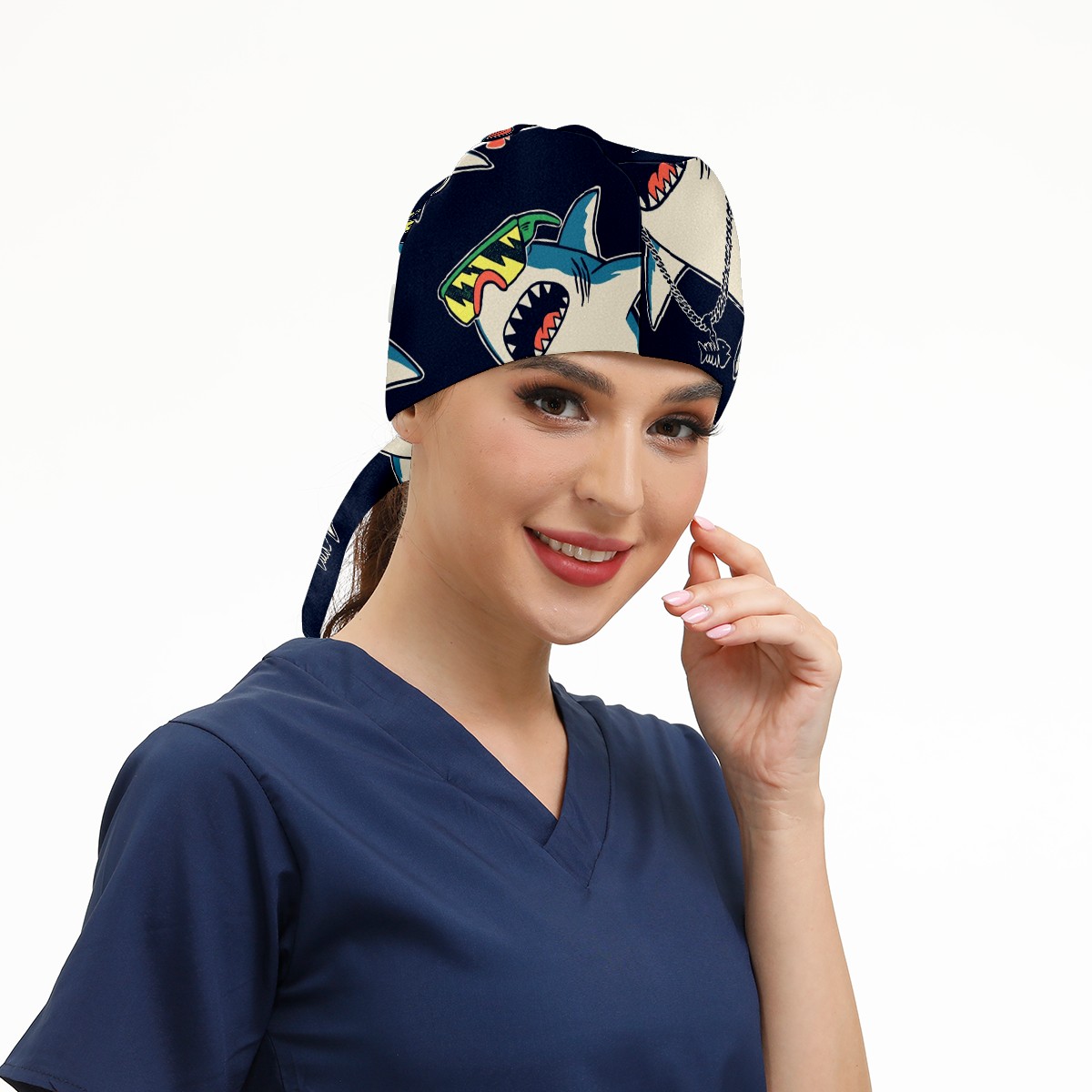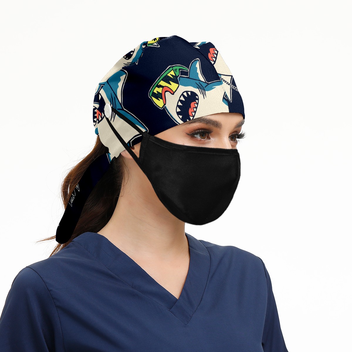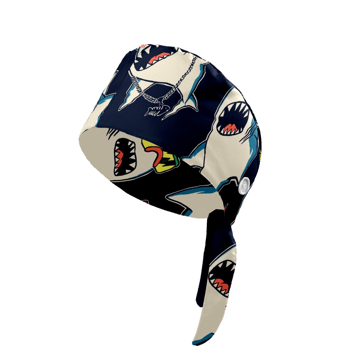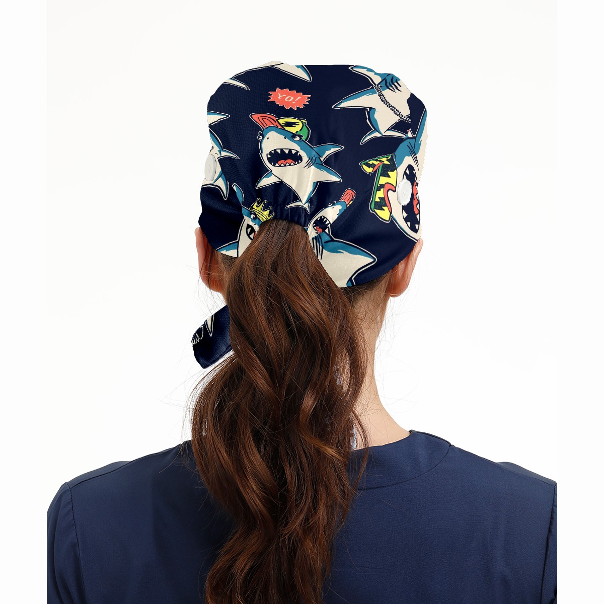 Working Caps with Button & Sweatband Satin Lined Cotton Adjustable Nurse Hats Elastic Band Scrub Cap Surgeon Hat Cute Shark Prince