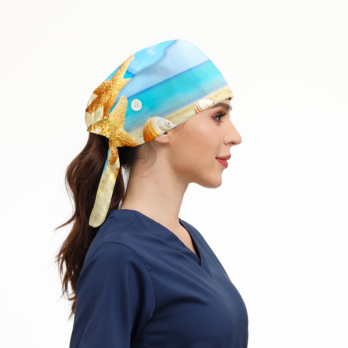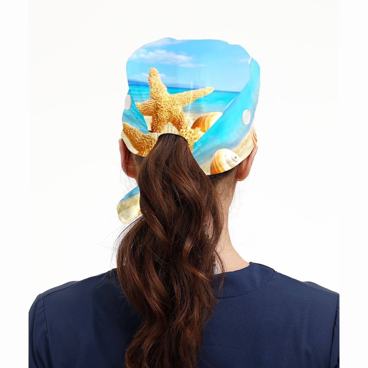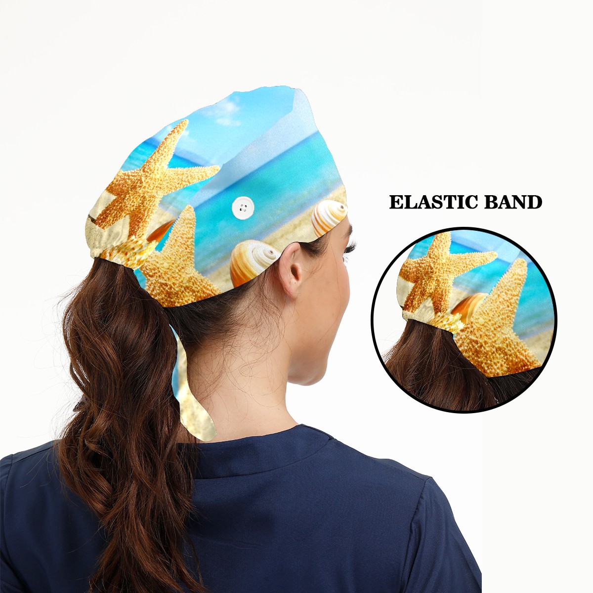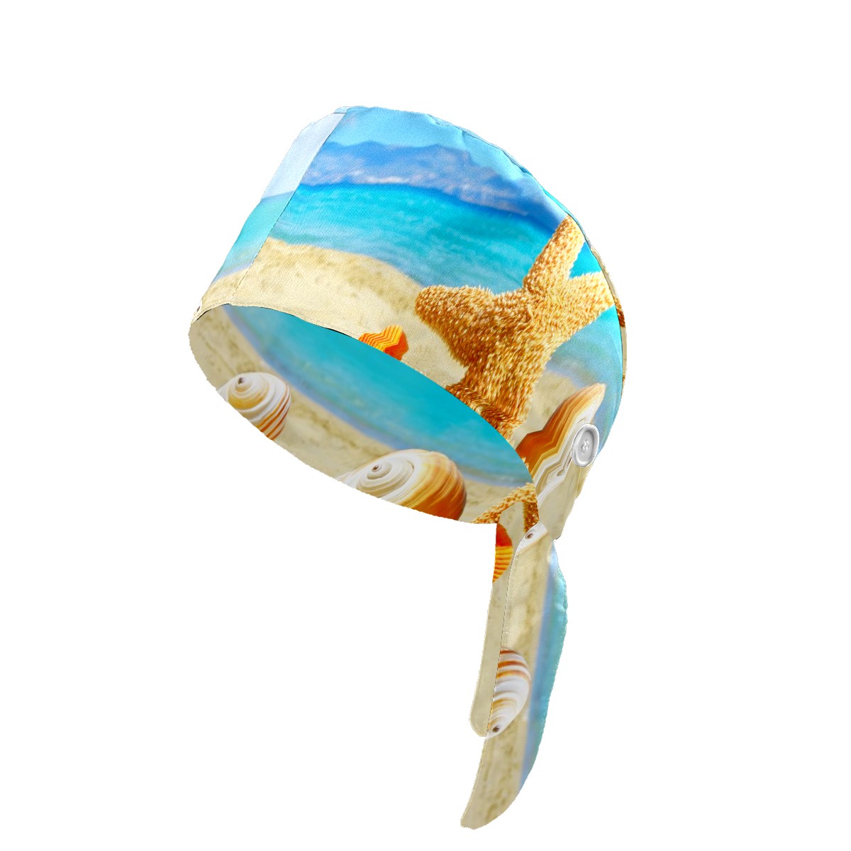 Working Caps with Button & Sweatband Satin Lined Cotton Adjustable Nurse Hats Elastic Band Scrub Cap Surgeon Hat Summer Sea Beach With Starfish And Shells