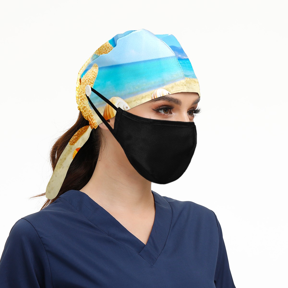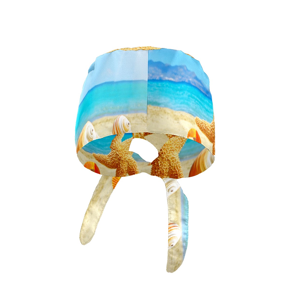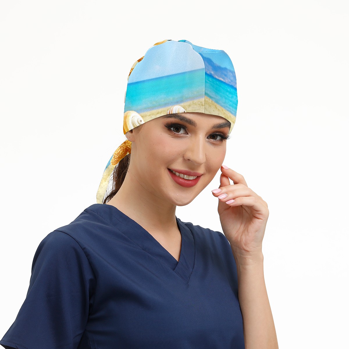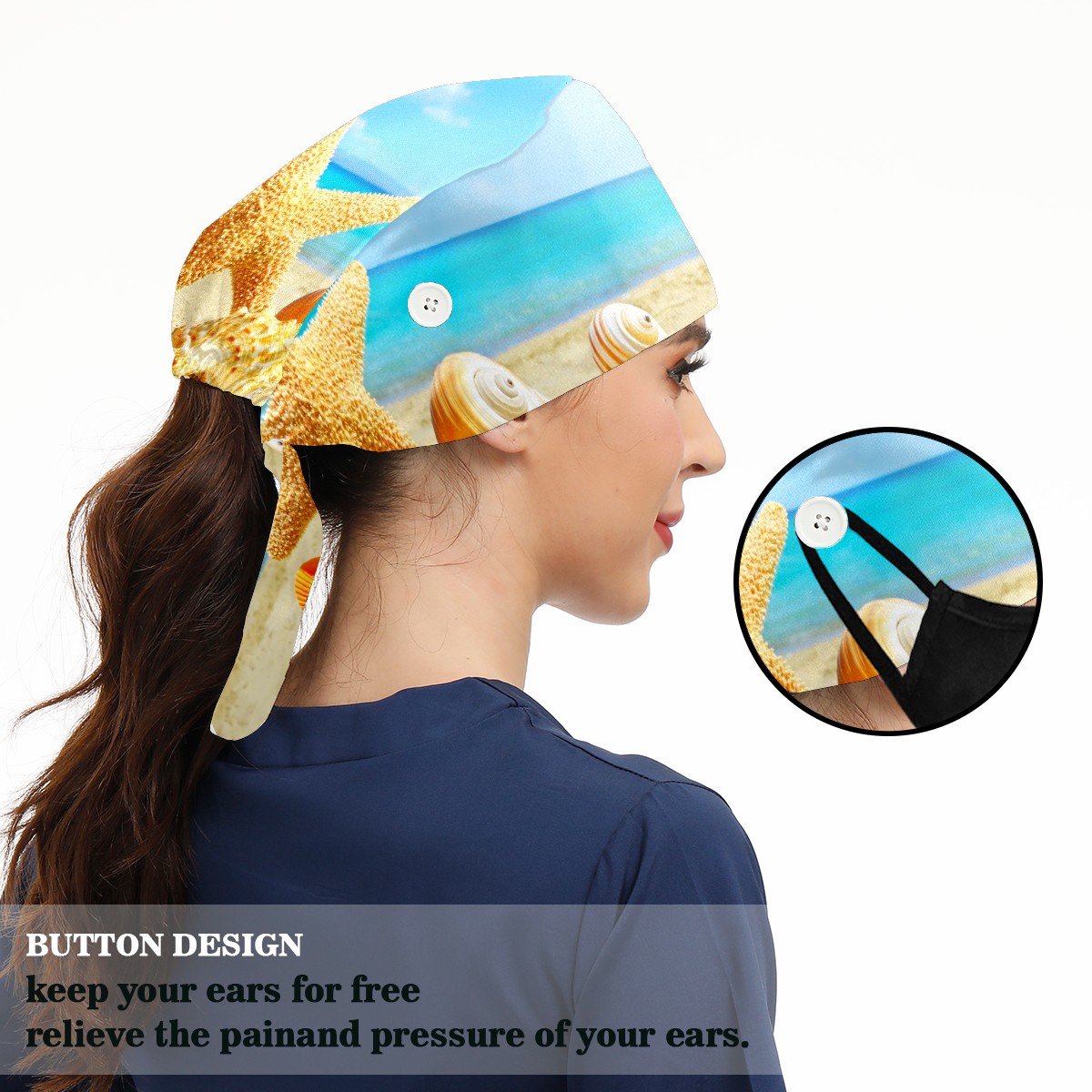 Working Caps with Button & Sweatband Satin Lined Cotton Adjustable Nurse Hats Elastic Band Scrub Cap Surgeon Hat Summer Sea Beach With Starfish And Shells
