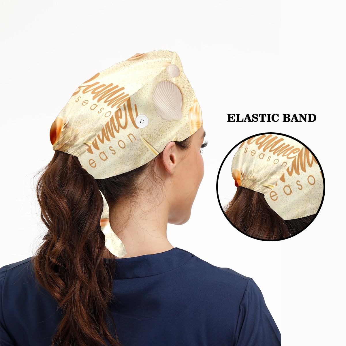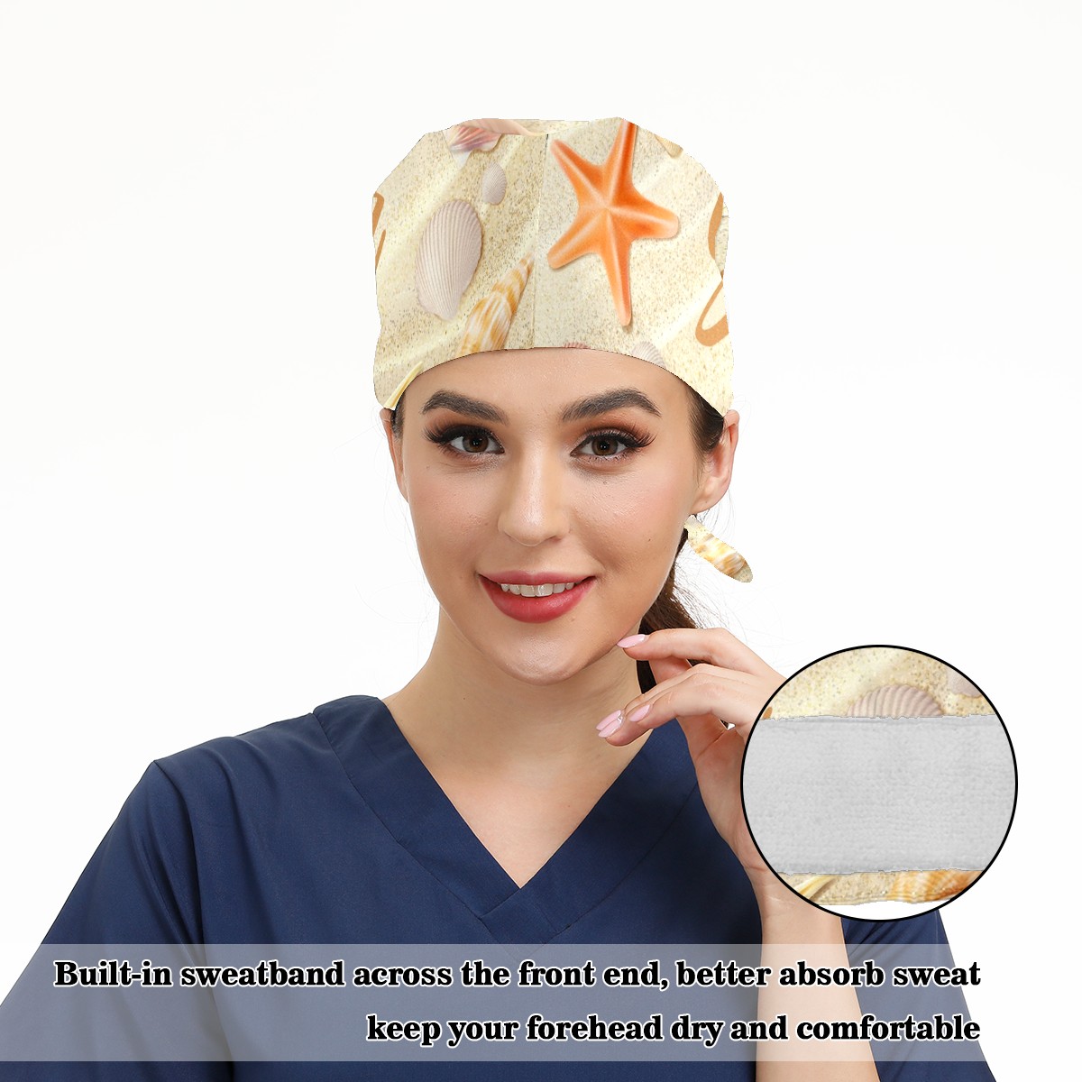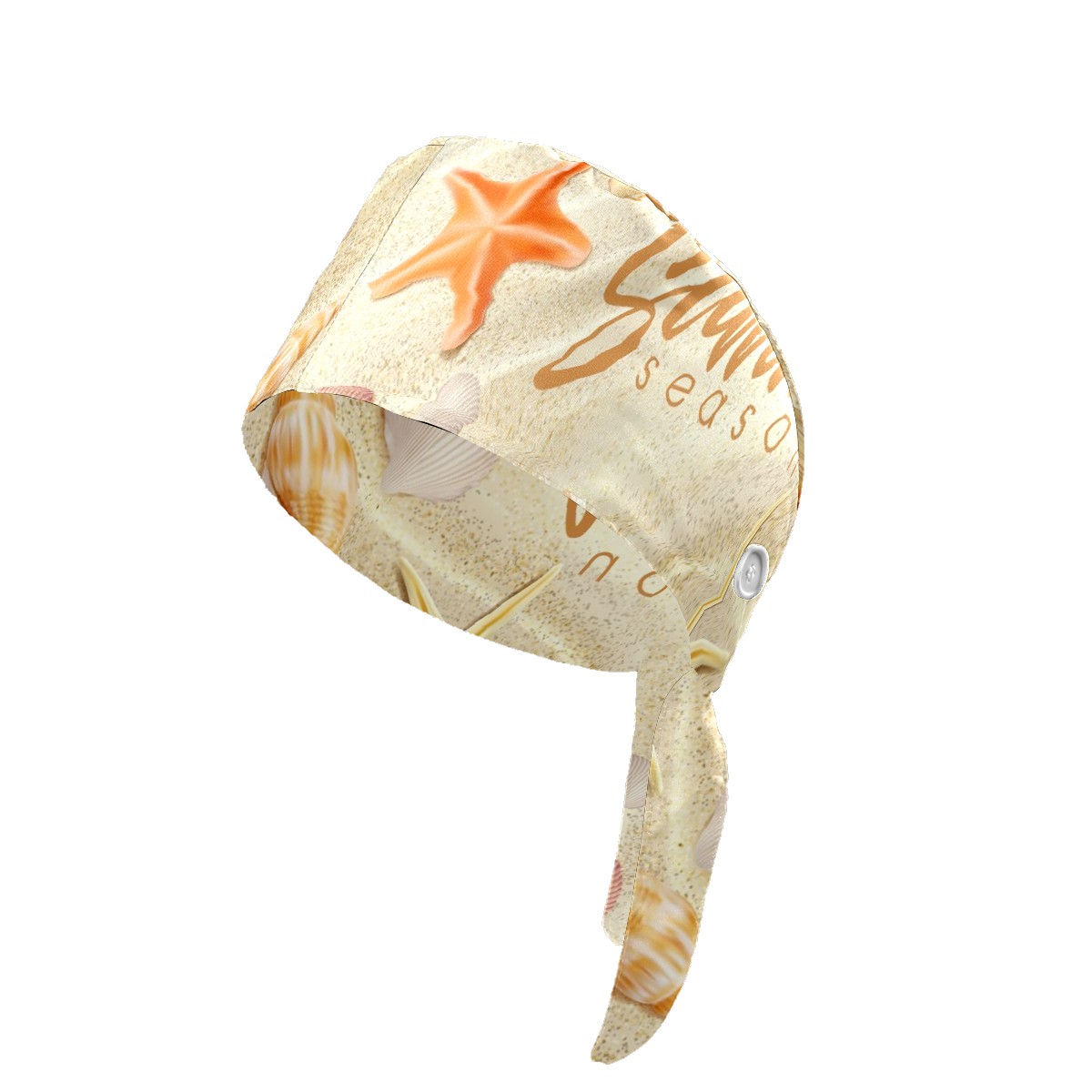 Working Caps with Button & Sweatband Satin Lined Cotton Adjustable Nurse Hats Elastic Band Scrub Cap Surgeon Hat Summer Beach Seashell Starfish
