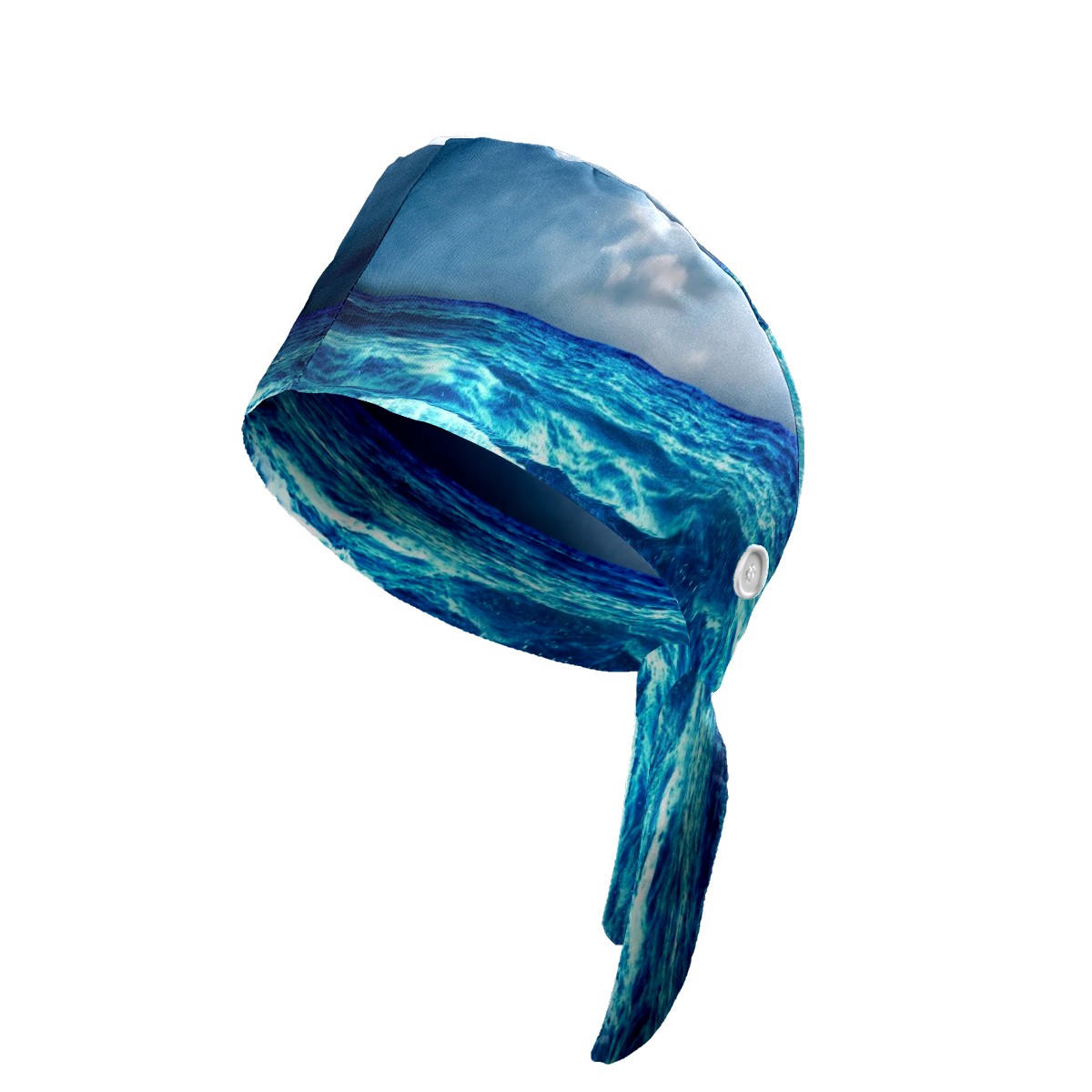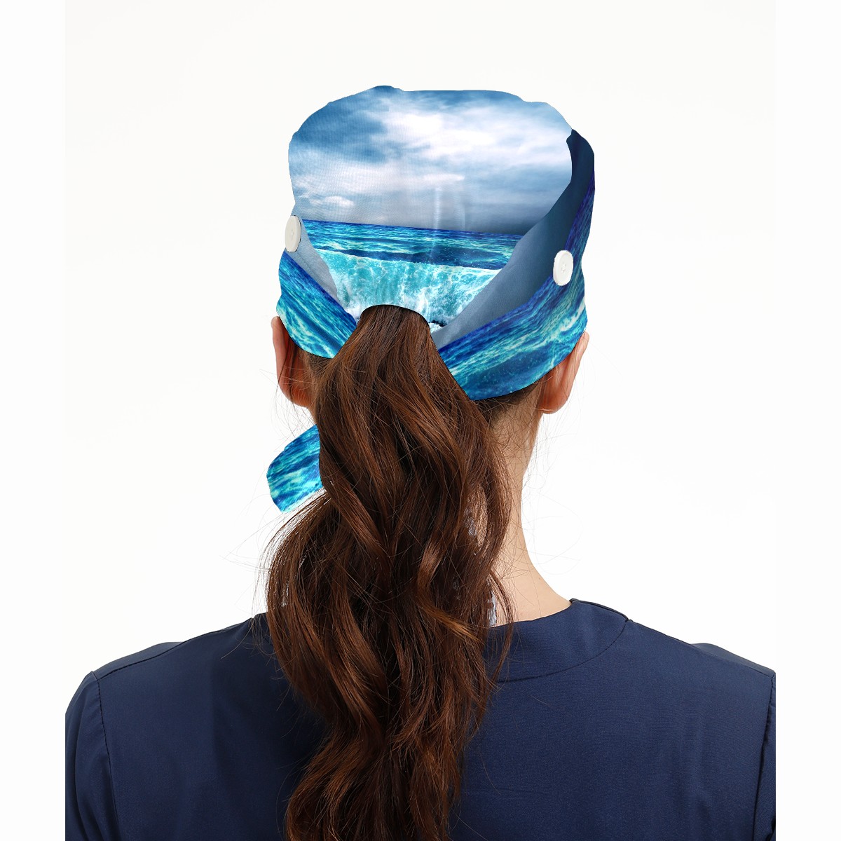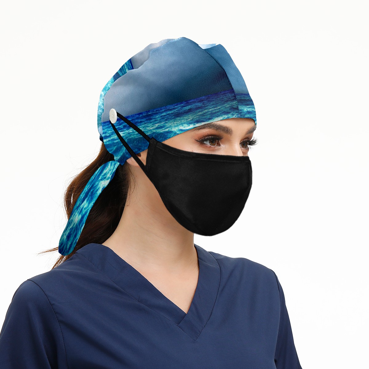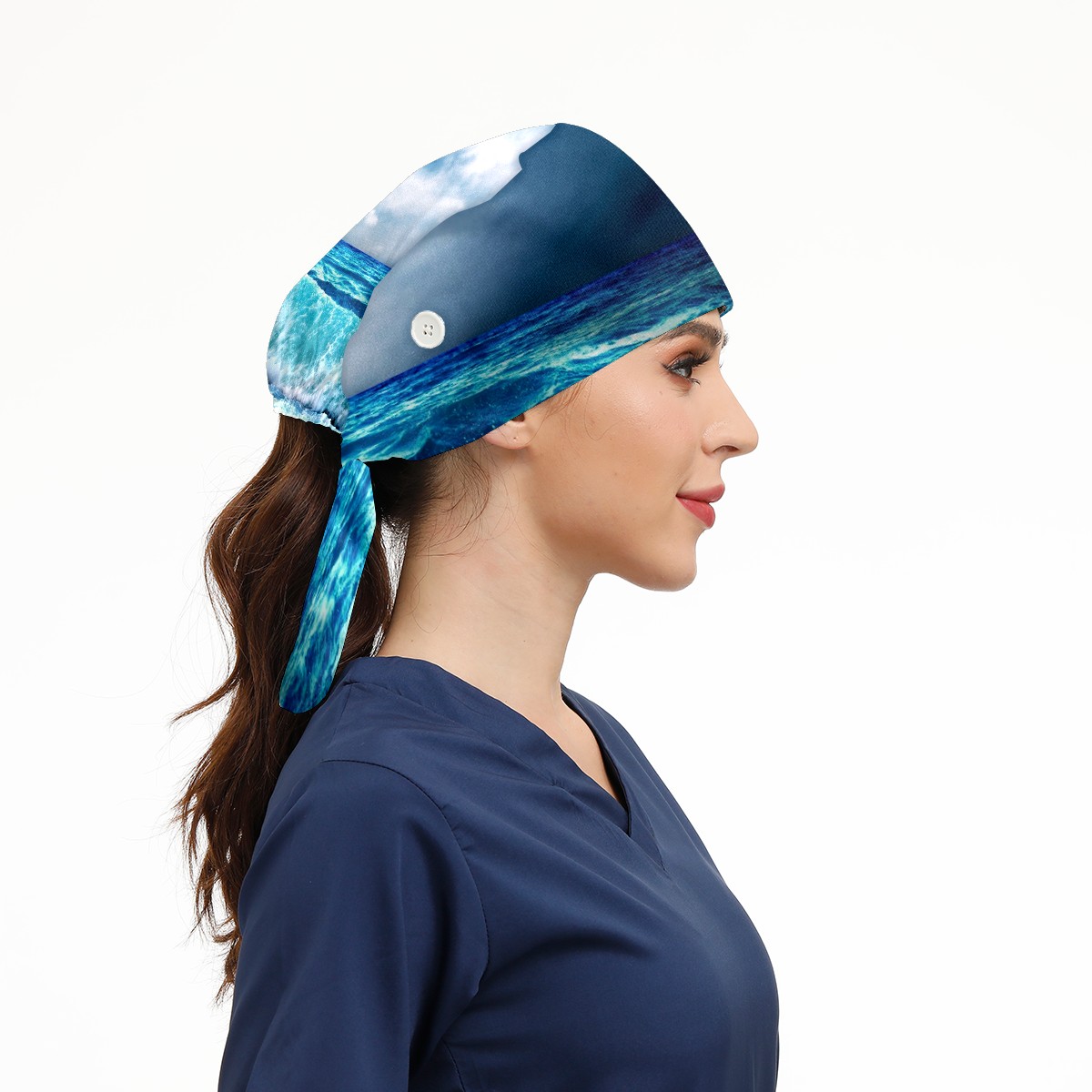 Working Caps with Button & Sweatband Satin Lined Cotton Adjustable Nurse Hats Elastic Band Scrub Cap Surgeon Hat Sea Landscape